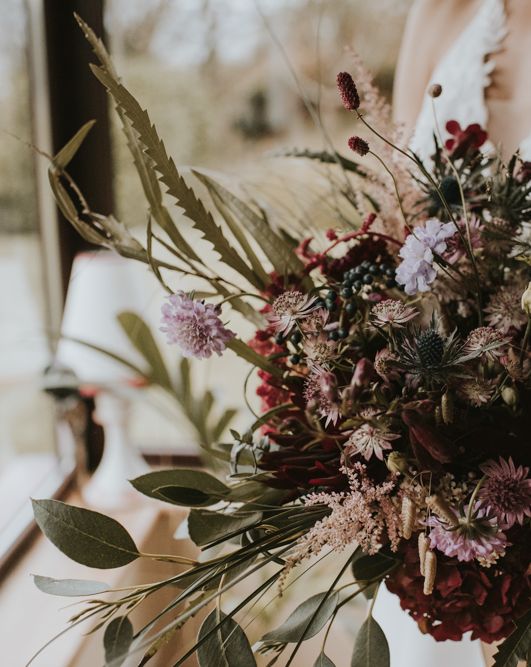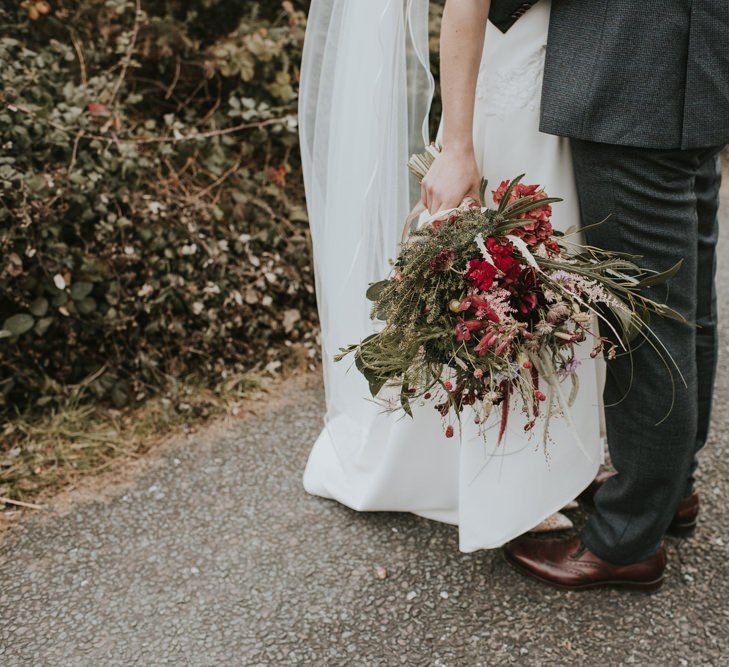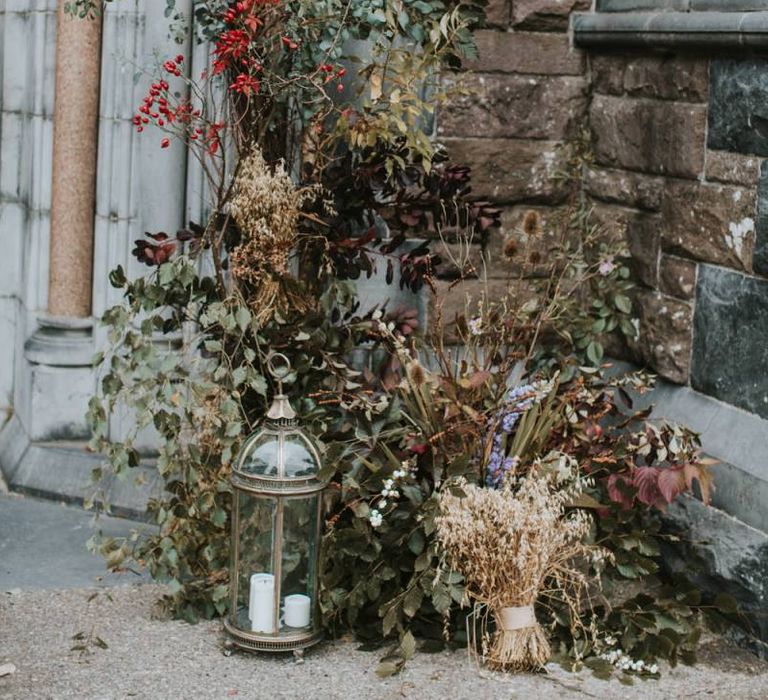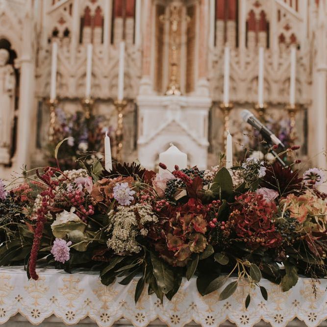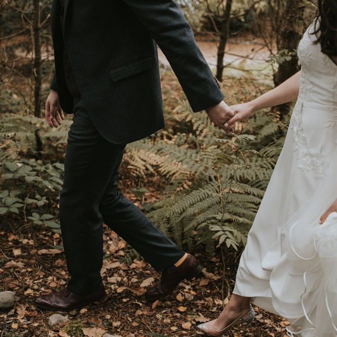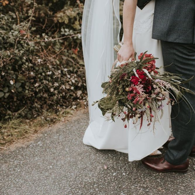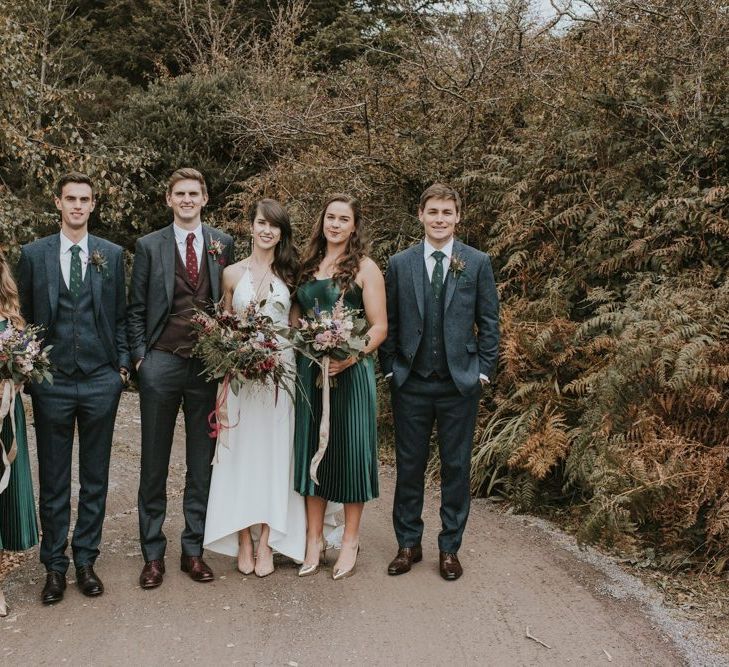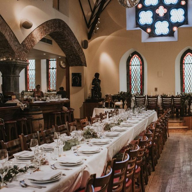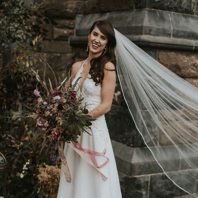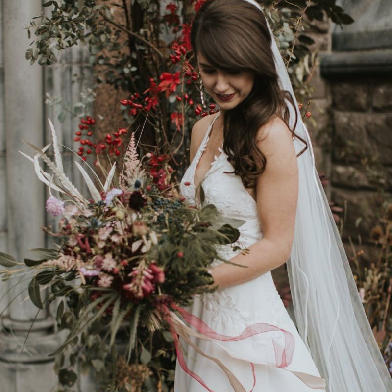 Relaxed & fun (tapas for dinner followed by a singing waiter & then a swing band). The wedding was in October in far south-west Ireland so we embraced that vibe: loads of foliage (photos in my family home's wild garden), & twinkling lights. We went for rich colours: flowers, bridal party outfits, make-up & decor (no pastels); deep greens, browns, gold and berries (the florist was AMAZING and got the vibe 100%). We didn't want things too perfect or "matchy" (bridal party chose their own shoes/accessories/makeup; loose wild look to the flowers & decor).