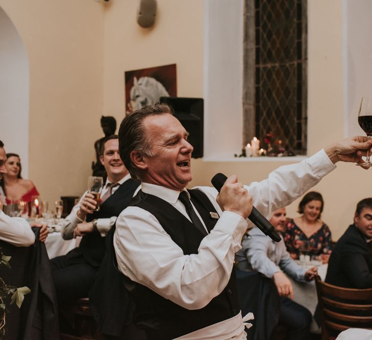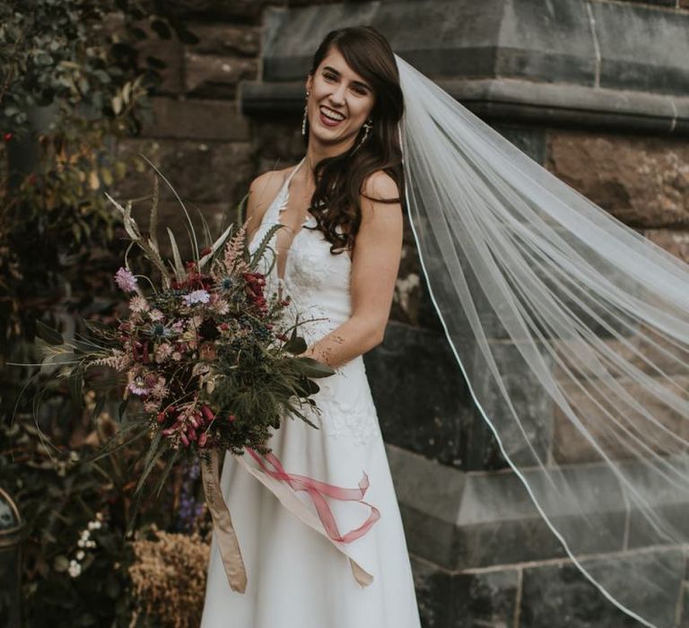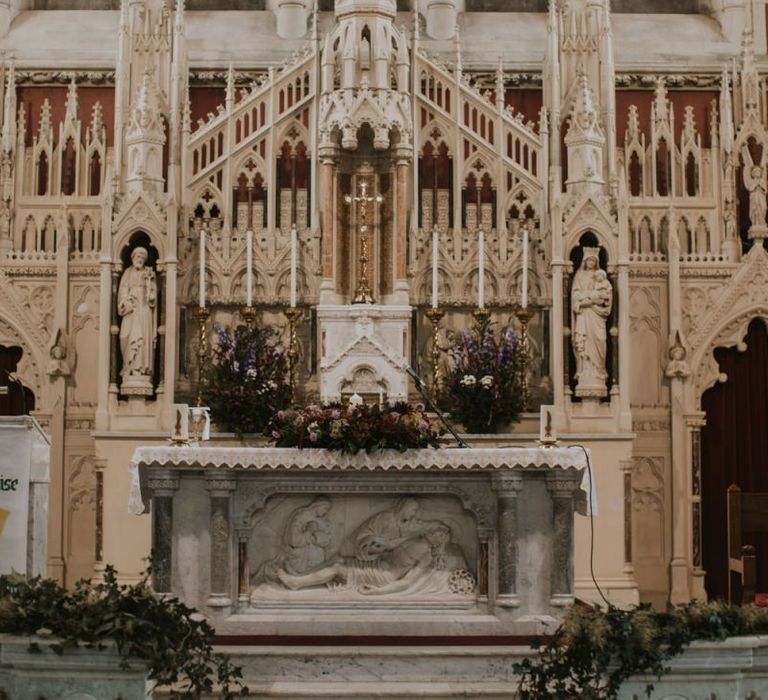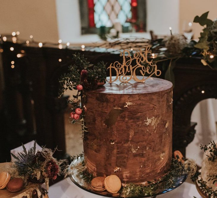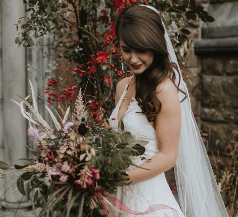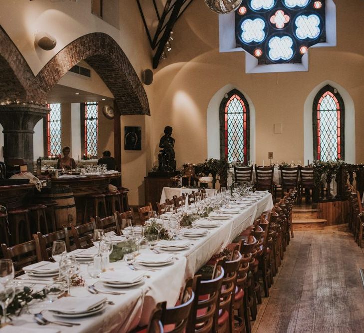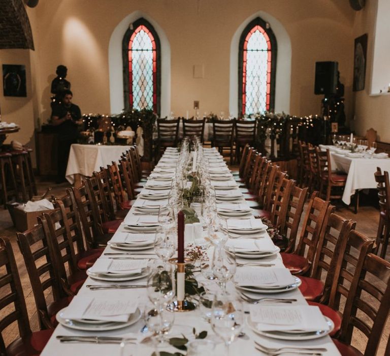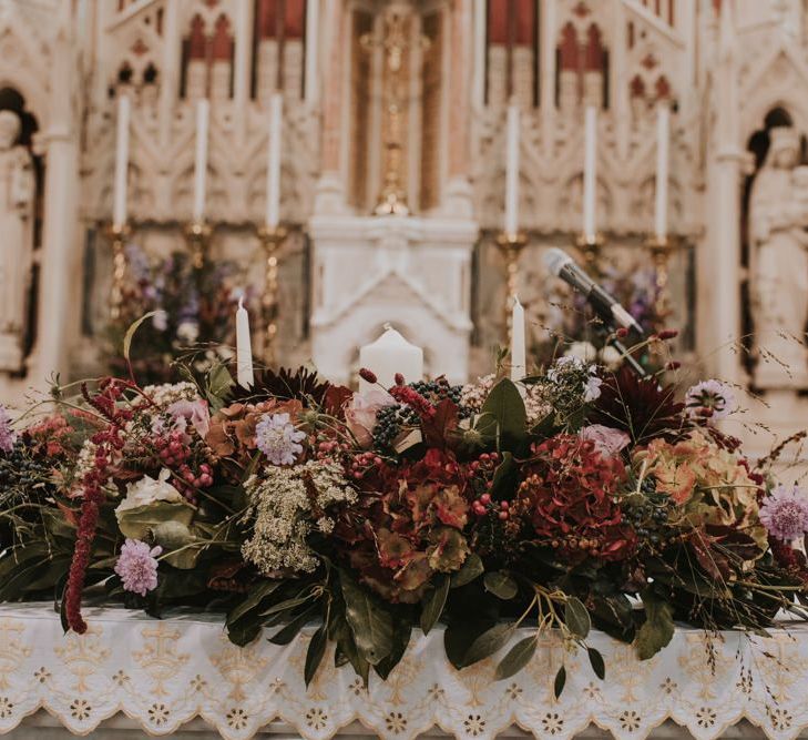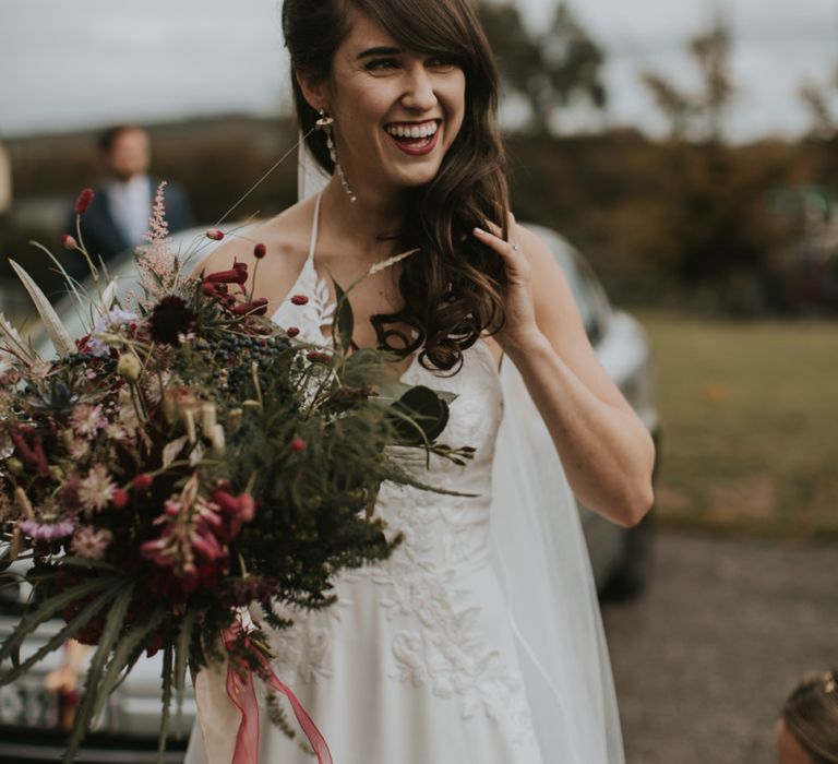 Relaxed & fun (tapas for dinner followed by a singing waiter & then a swing band). The wedding was in October in far south-west Ireland so we embraced that vibe: loads of foliage (photos in my family home's wild garden), & twinkling lights. We went for rich colours: flowers, bridal party outfits, make-up & decor (no pastels); deep greens, browns, gold and berries (the florist was AMAZING and got the vibe 100%). We didn't want things too perfect or "matchy" (bridal party chose their own shoes/accessories/makeup; loose wild look to the flowers & decor).