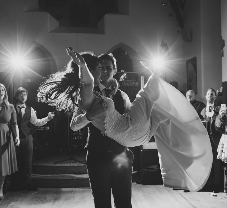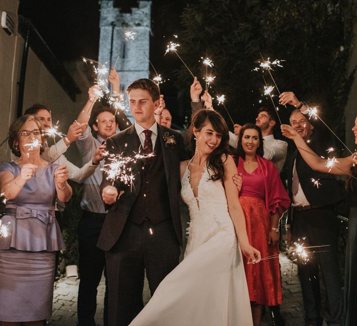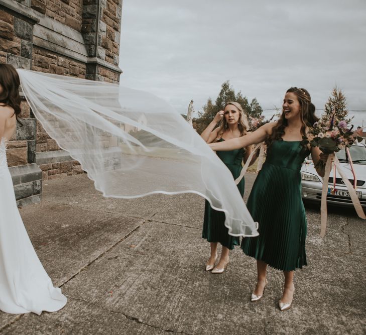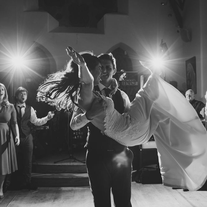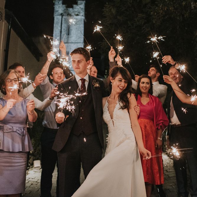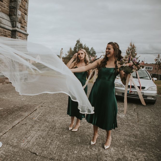 "Involvement of family & friends: bride's sister did loads of DIY decor, brothers drove the bridal party in their Opels, post-ceremony photos at bride's home, ceremony singing by friends & family, mothers baked cakes, foliage from bride's home used, wedding rings made from mom's old gold necklace, groom & friends did spin class taught by bride's cousin morning of wedding, people travelled from afar (Australia, USA, Dubai, Germany, Peru) Kept things local: ceremony, reception, accommodation, afters all within 5min walk in Killorglin town. Guests parked cars Thursday night & didn't use them again until Sunday morning. Local suppliers as able." - Eimear & Eddie