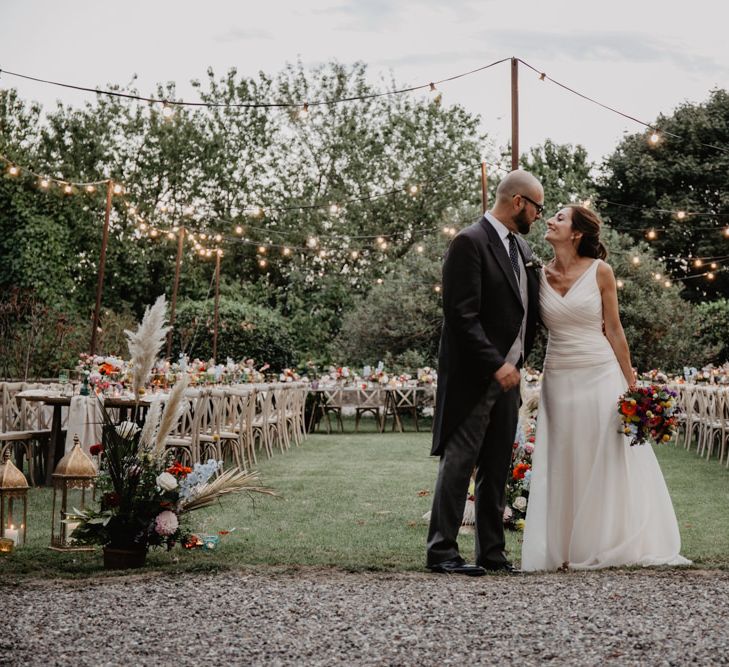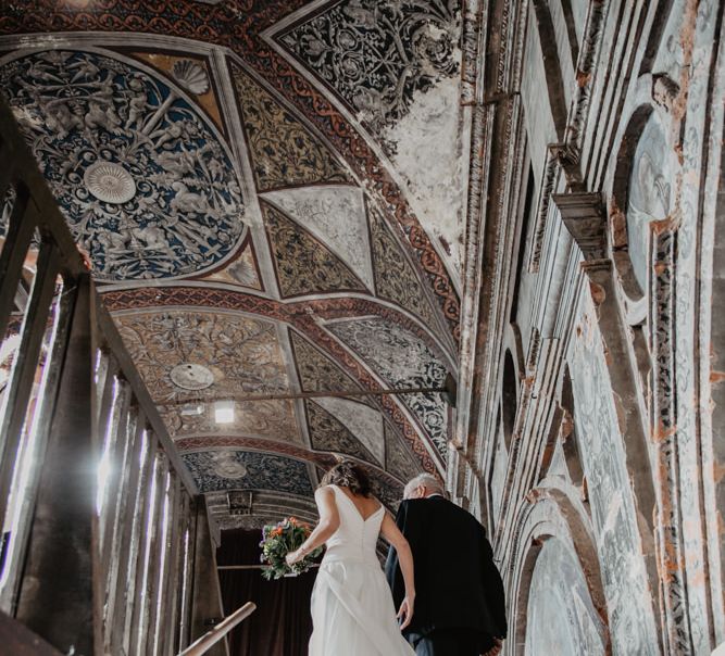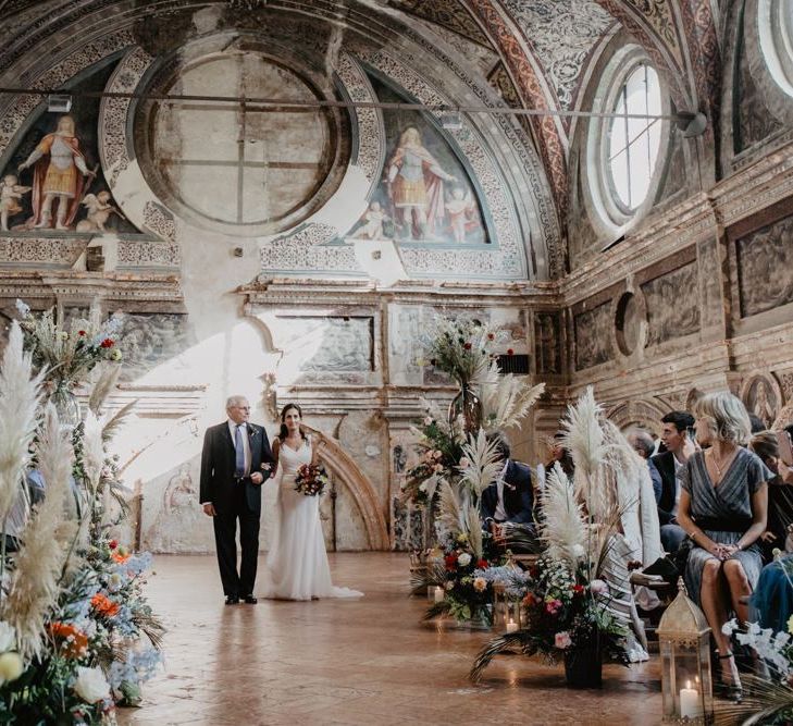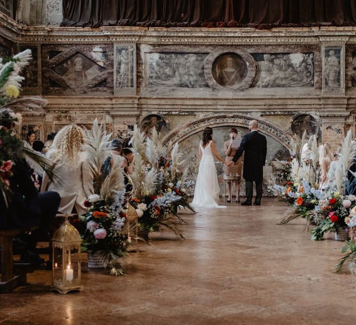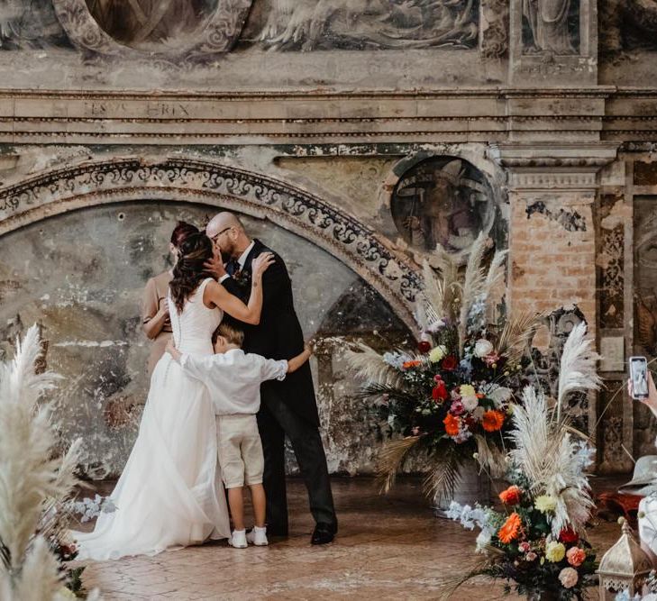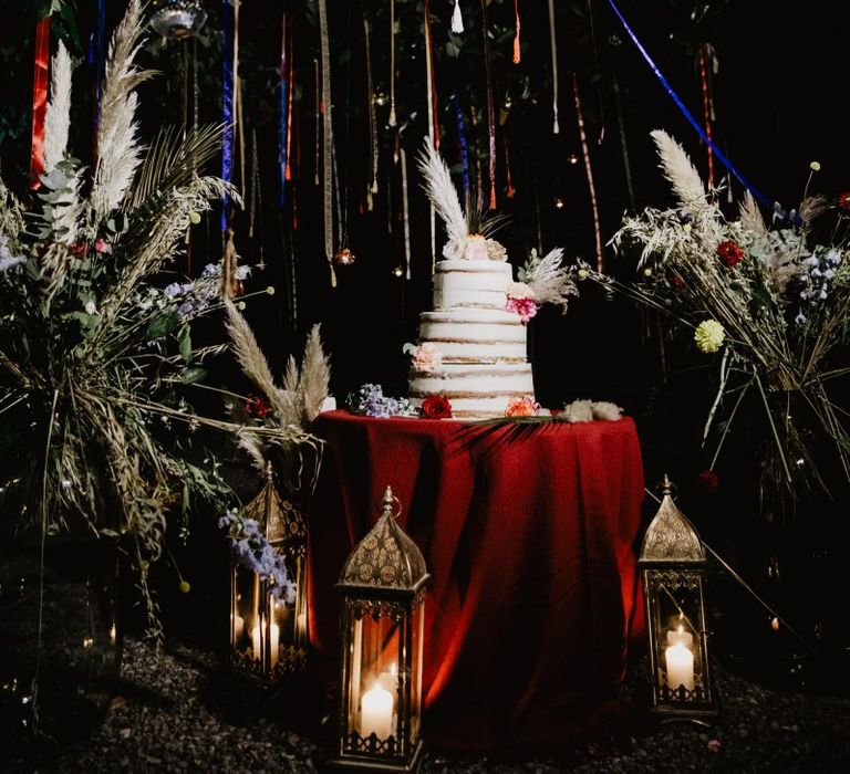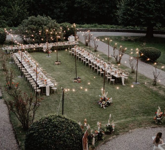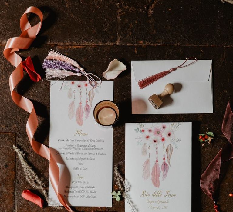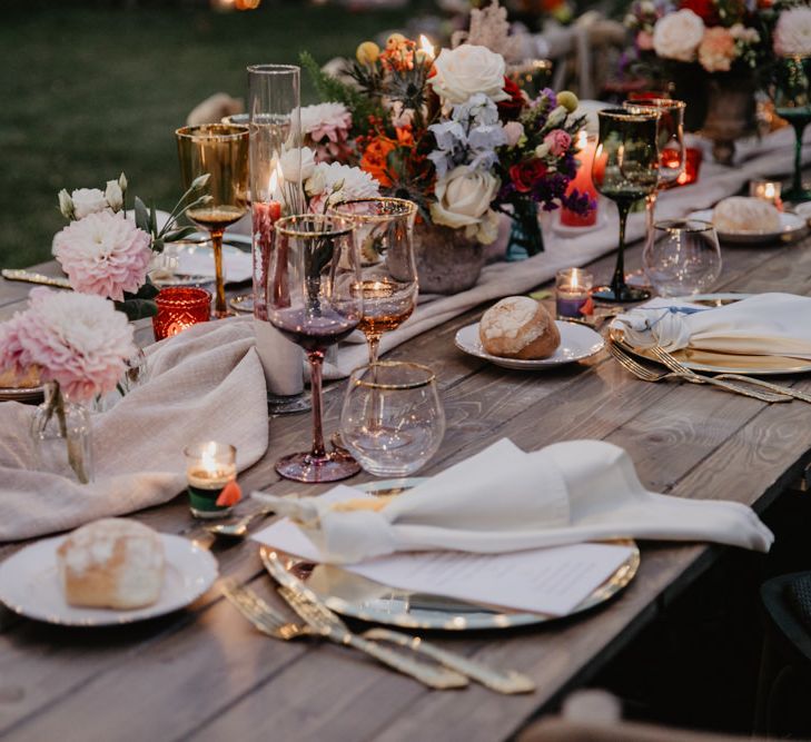 This wedding was special because it was inspired by the Byzantine and Norman Empire. The venue was a private house built on a cloistered convent with a very strong Byzantine Style so we decided to keep the style and replicate it in every design element to create harmony and give guests the impression of traveling between time and space (space because Byzantine and Norman Empire buildings are typical of Sicily, south Italy, instead we were close to Milan, in the very north Italy). Everything was super colourful, from blown glass to tassels, from flowers and pampas to handmade wicker baskets, to intertwined woods to the lights atmosphere created by the arabesque lanterns.