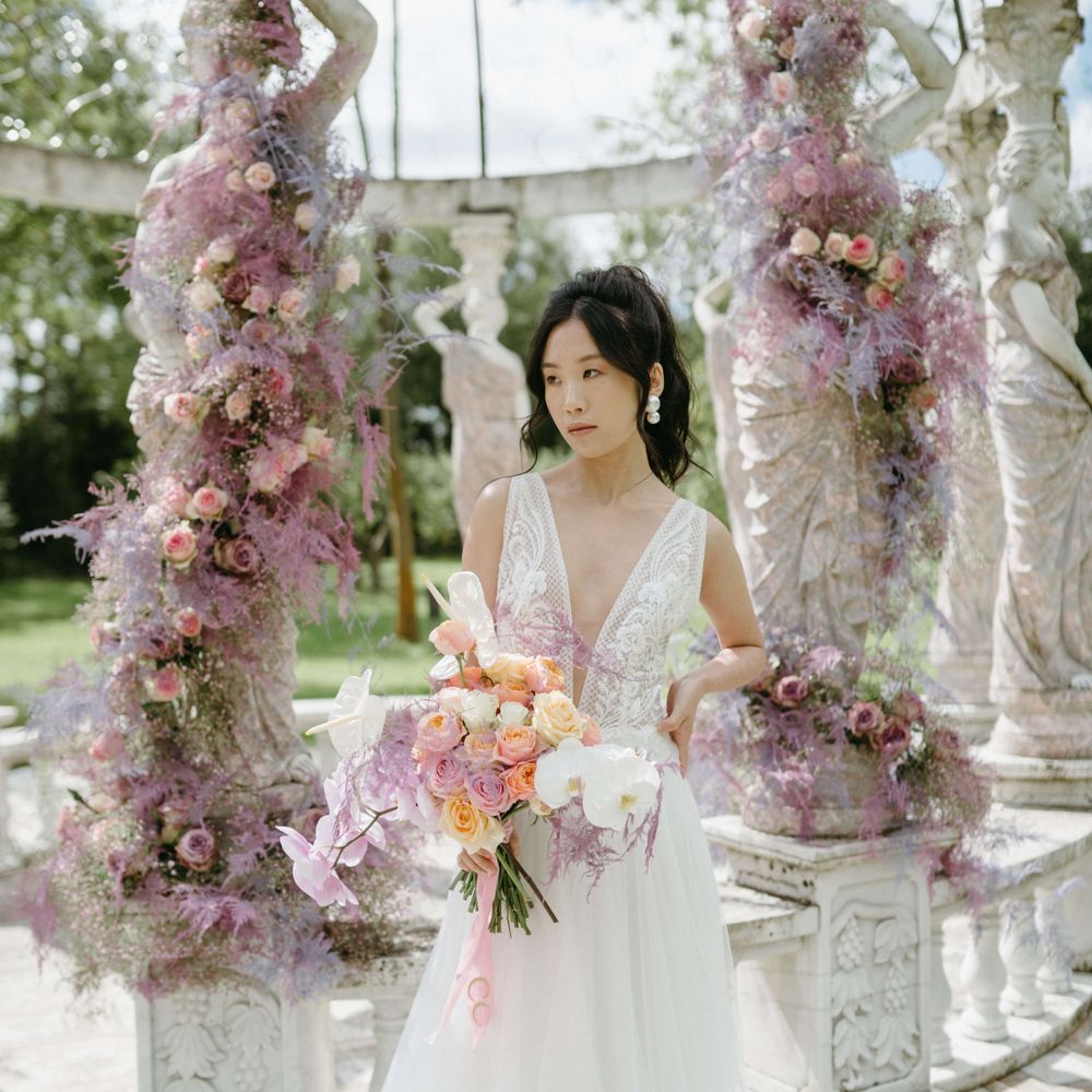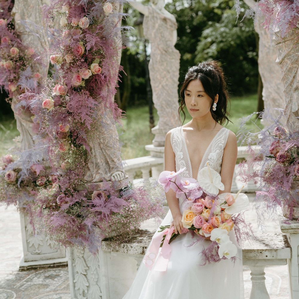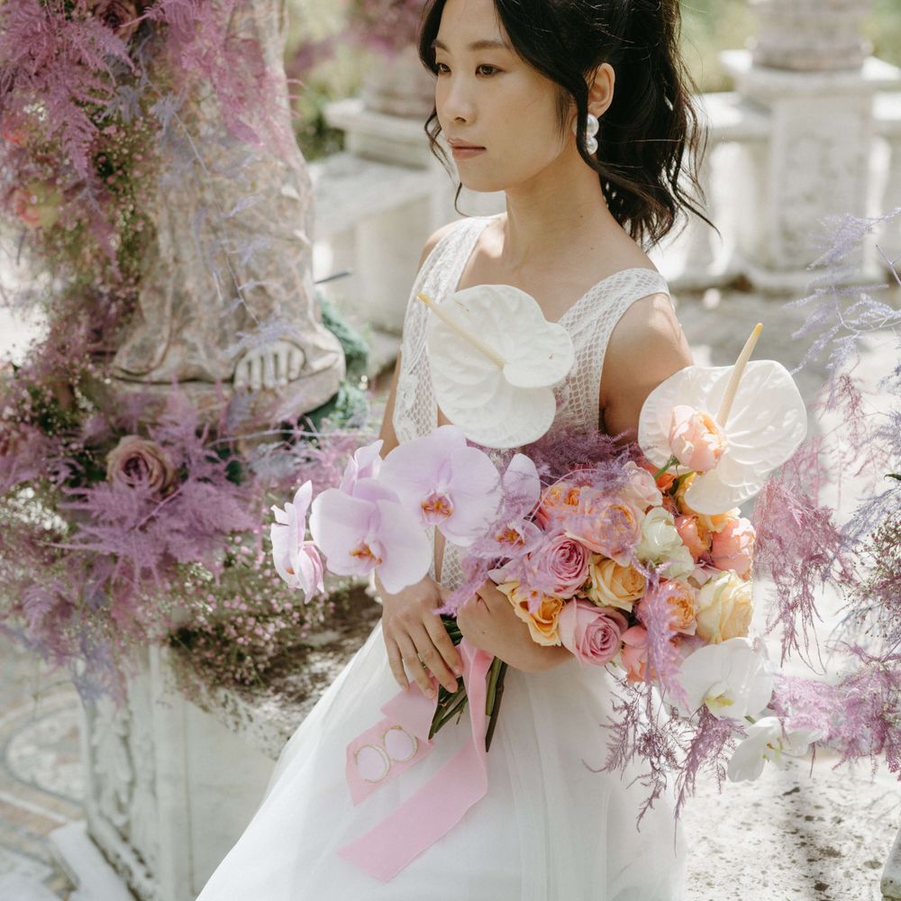 Often our clients are apprehensive to divert from the classic well-known formulas when it comes to colour schemes. We wanted to show what else can be achieved. The outcome was a very dreamy, soft and romantic vibe, with pinks and lilacs forming the most beautiful backdrop.