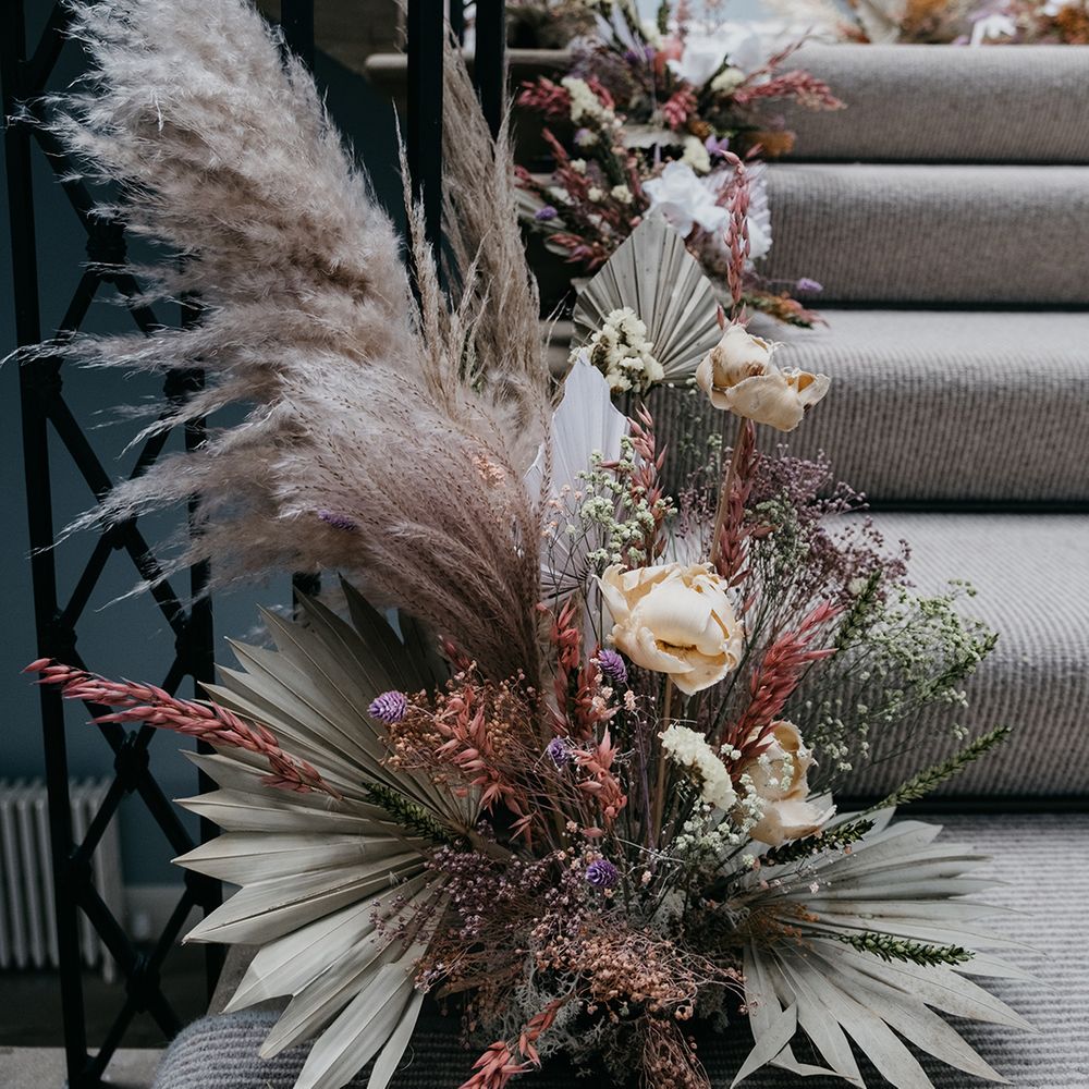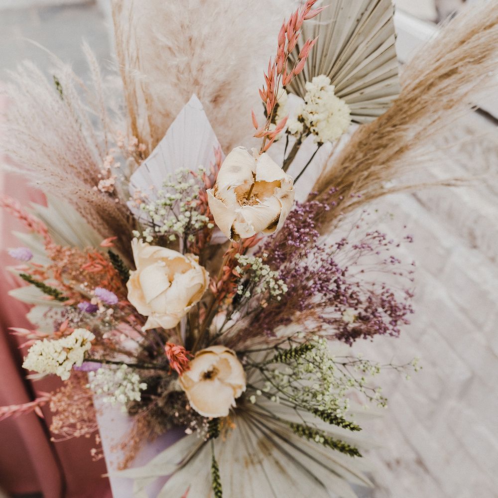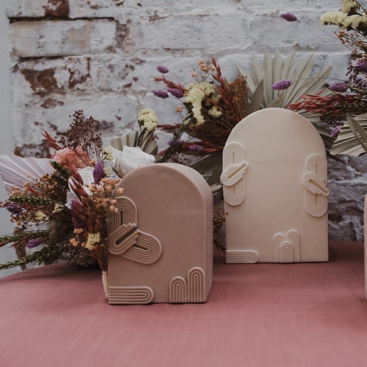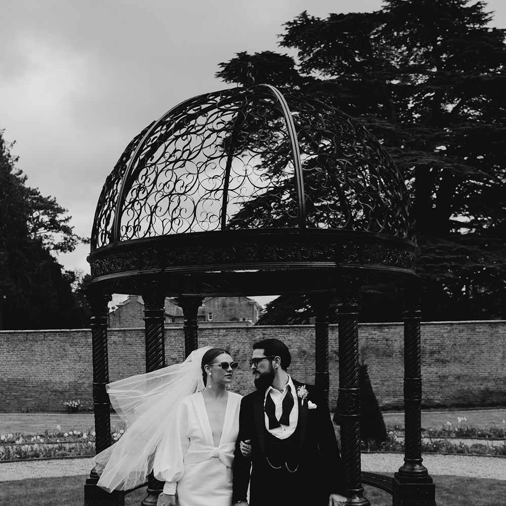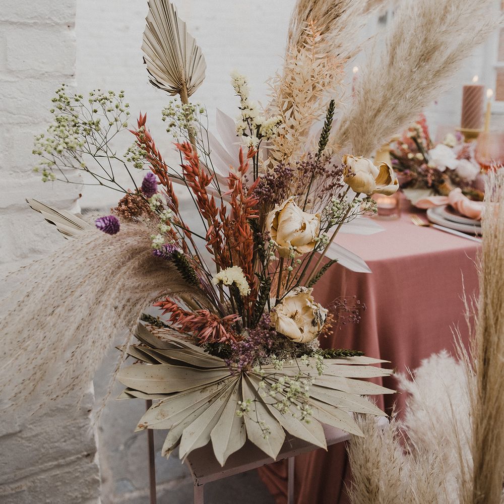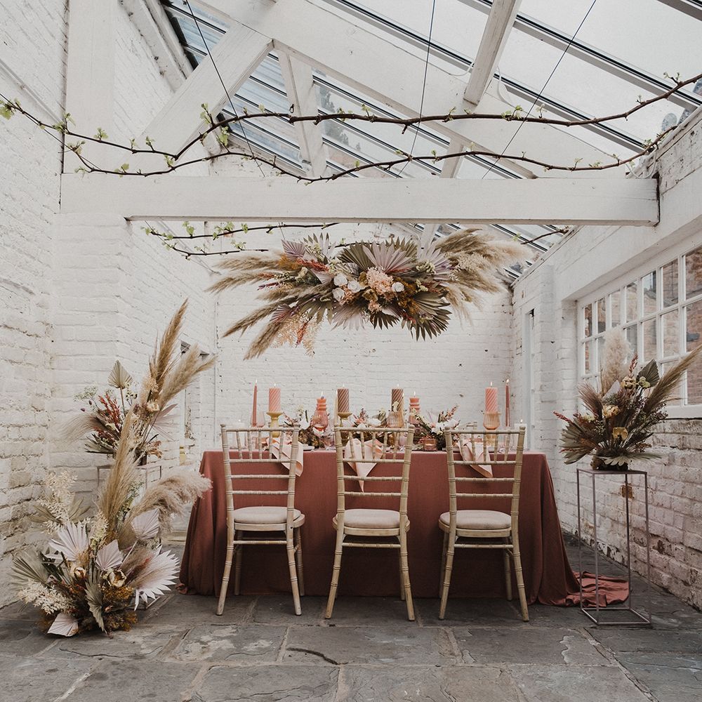 As with the inspiration, for the fashion, we wanted to showcase two sides to our inspiration shoot. The first outfit was a softer feminine look, with a long silky gown and beautiful back detail. Then we choose a fun short wedding dress, with killer heels and a bow veil. Makeup focused on a sultry dark eye and natural pretty lip. Our guy was dressed in a darker look with a velvet blazer, untied bow tie, waistcoat, watch chain and lots of statement jewellery.