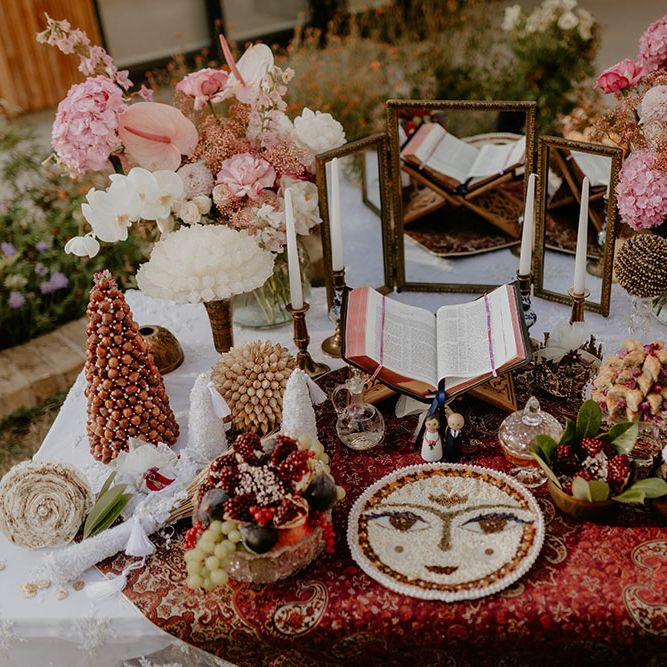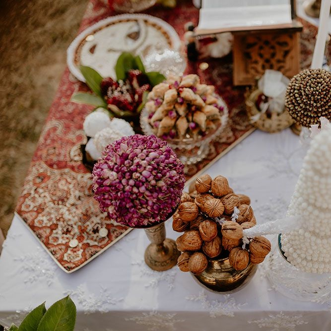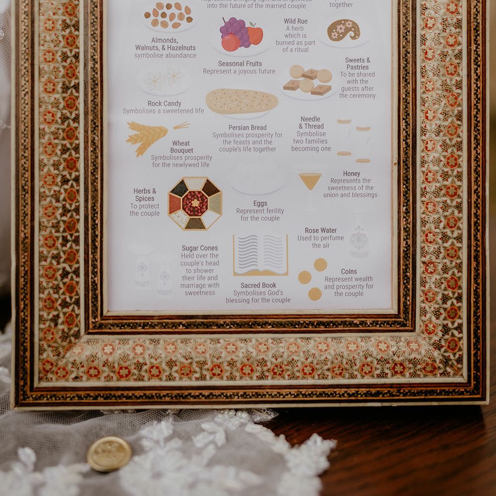 We wanted to incorporate some of Rose's Iranian heritage through an Iranian wedding table (Sofreh Aghd). Farsi place cards, rosewater sugared almond wedding favours (Noghl). And Iranian music to dance to on a Persian carpet dance floor.