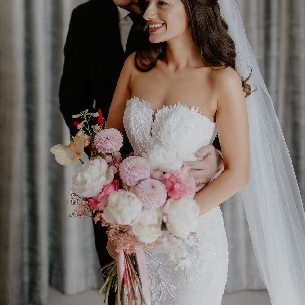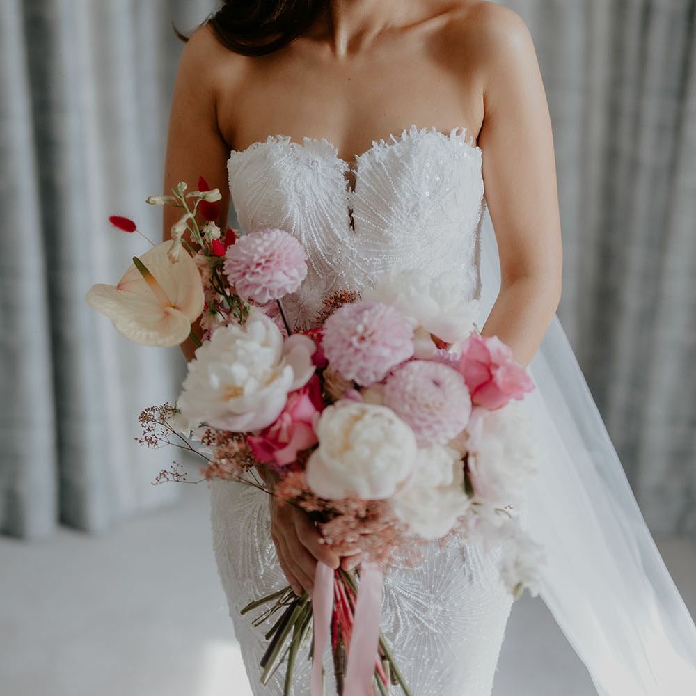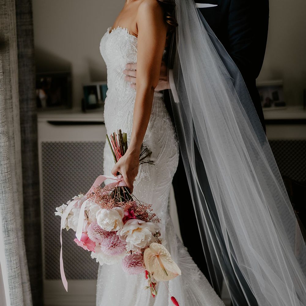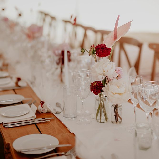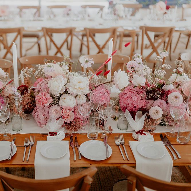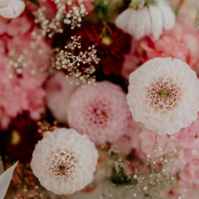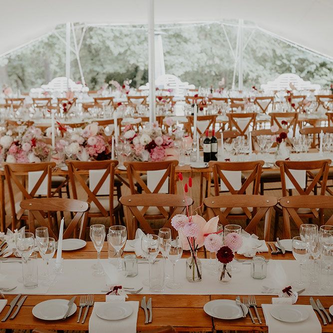 Pink And White Wedding Flowers For Marquee Back Garden Wedding