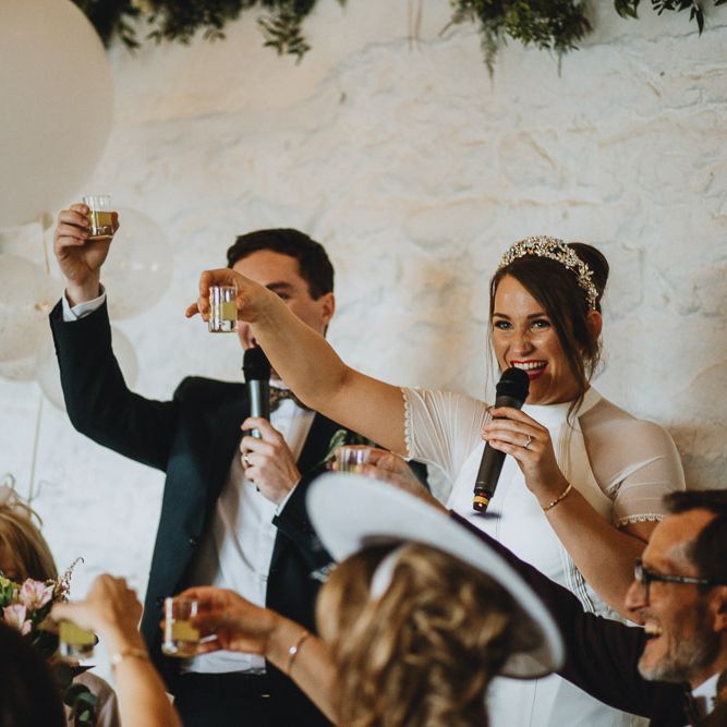 Matt plays bass in a band, Elijah James and the Nightmares, so we had Elijah and Gareth play our favourite songs in the church, and Nat, the pianist, play during our drinks reception. We've known Elijah since we first got together in 2012, so having him sing me down the aisle was really special. Music is a big part of our lives, so we based the table plan around songs that remind us of those people and displayed on old vinyl's. Oh, and the weather! If rain on your wedding means good luck, then we’ve got bucket loads!
