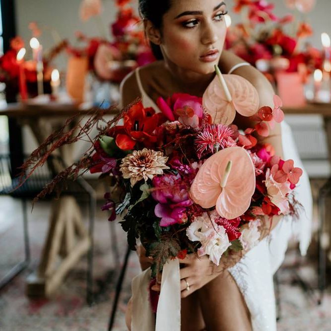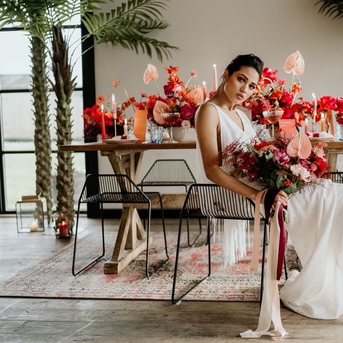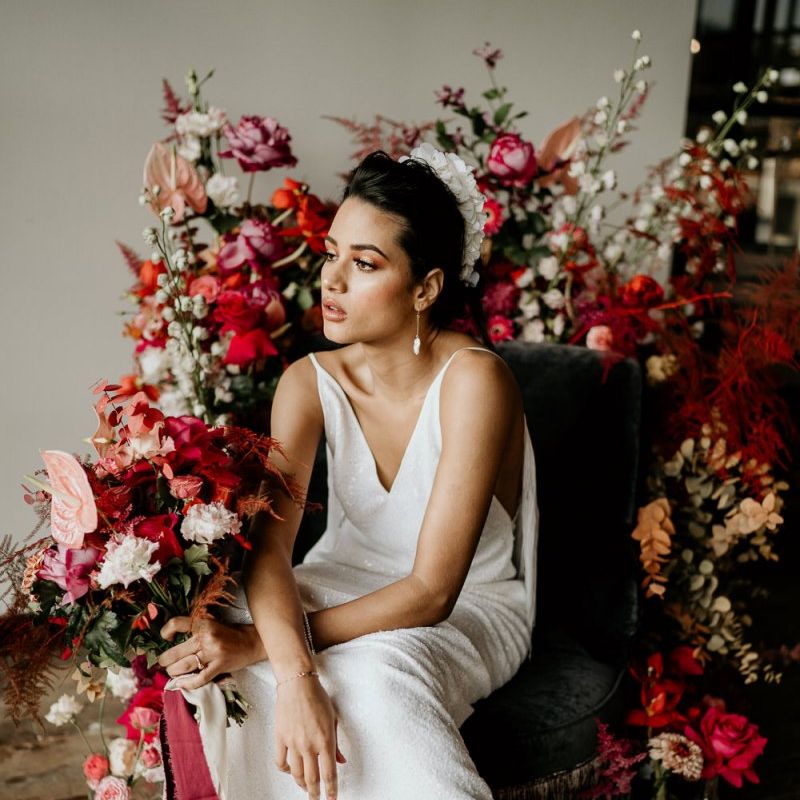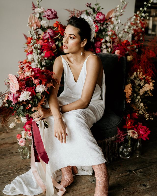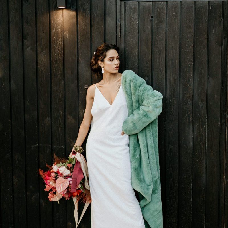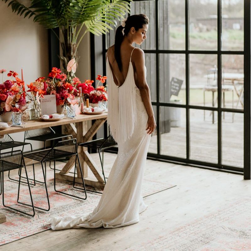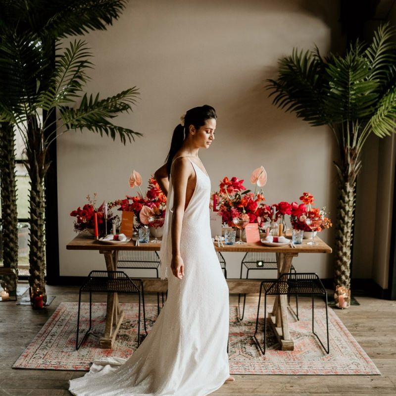 This shoot is like none other, as it wasn’t rooted in a Pinterest board but it actually came together purely as a celebration of each and every team member’s talents. We wanted to create inspirational imagery for the modern, style-conscious couple. Combining Botley Hill Barn's fresh, innovative take on the "wedding barn" with its clean lines and luxe floor-to-ceiling windows with a modern city vibe, statement florals and sleek wedding attire.