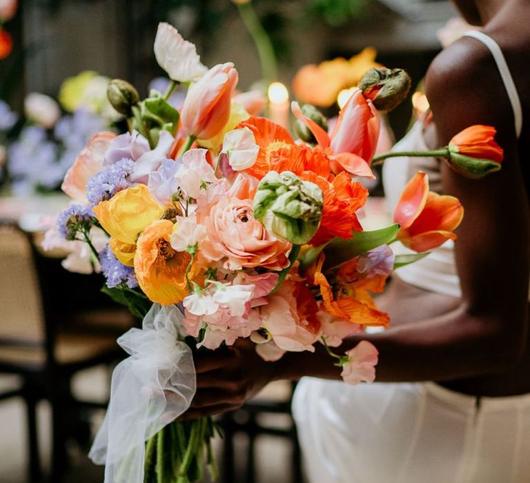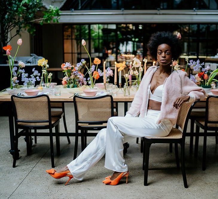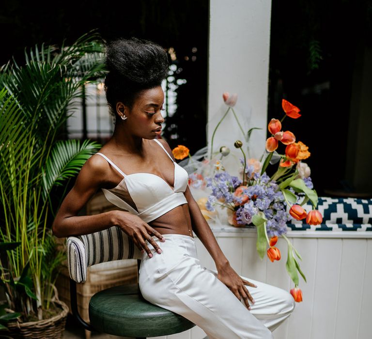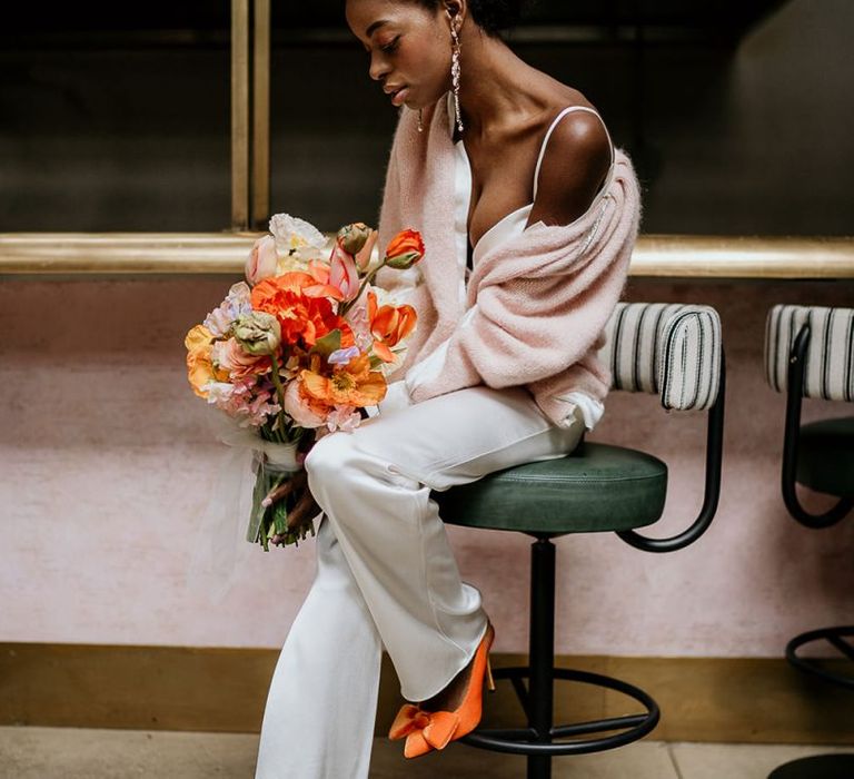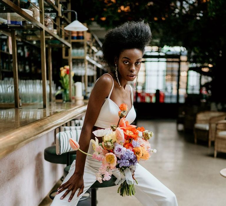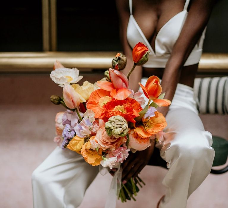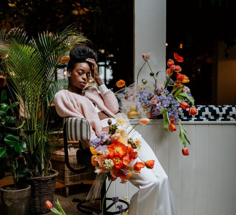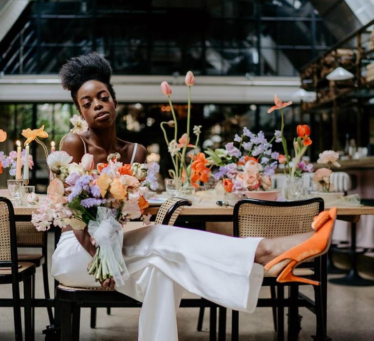 Modern Colourful Spring Flowers for Wedding with Trousers Outfit