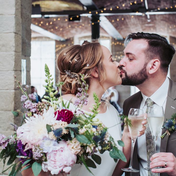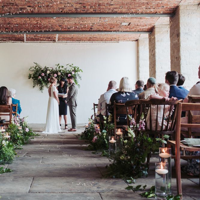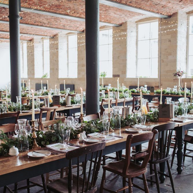 The vibe of our day, though it may be cliche was very ‘Boho Botanical’. We wanted an abundance of greenery and fresh seasonal flowers to contrast against the Mills raw textures, with the focus being on a lot of natural elements, tones and materials. Long wooden tables filled the industrial venue with old mix and match chairs. This along with a pallet seating area gave our guests the opportunity to really move around the venue, be sociable and relax rather than being confined to one area.