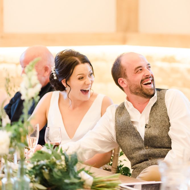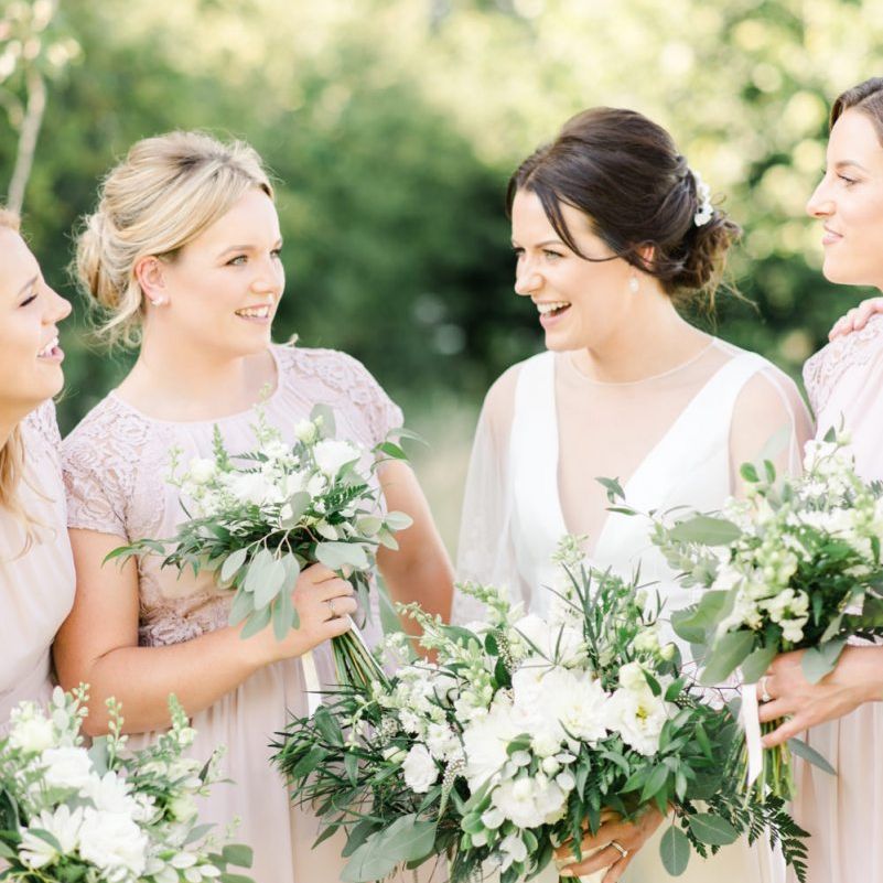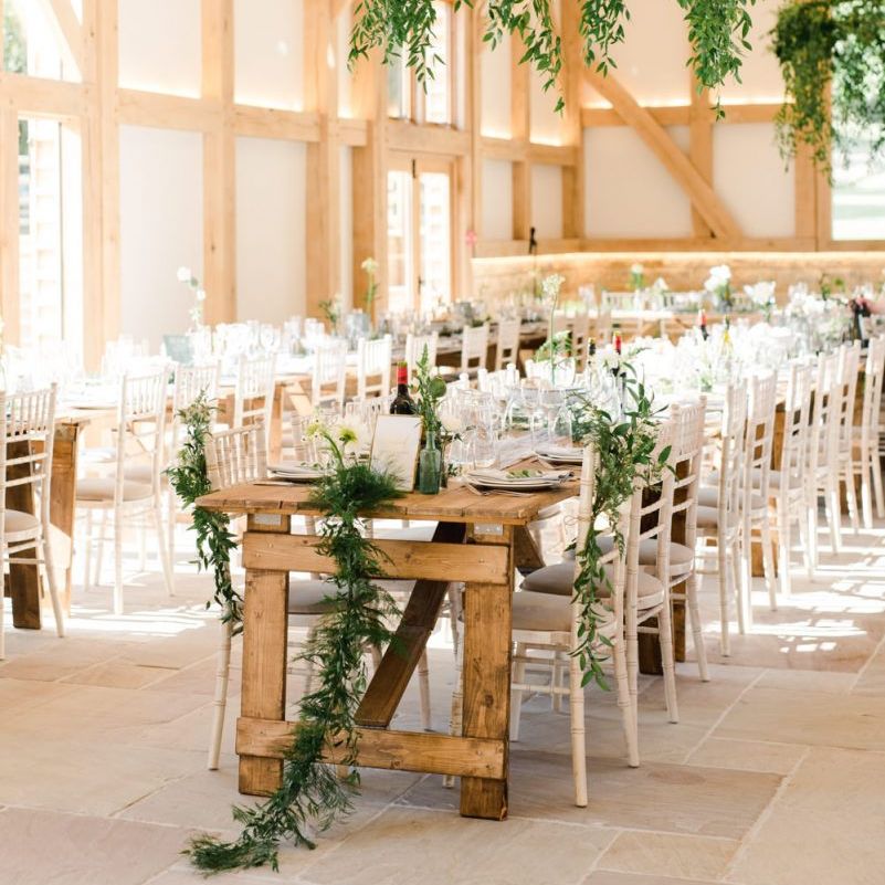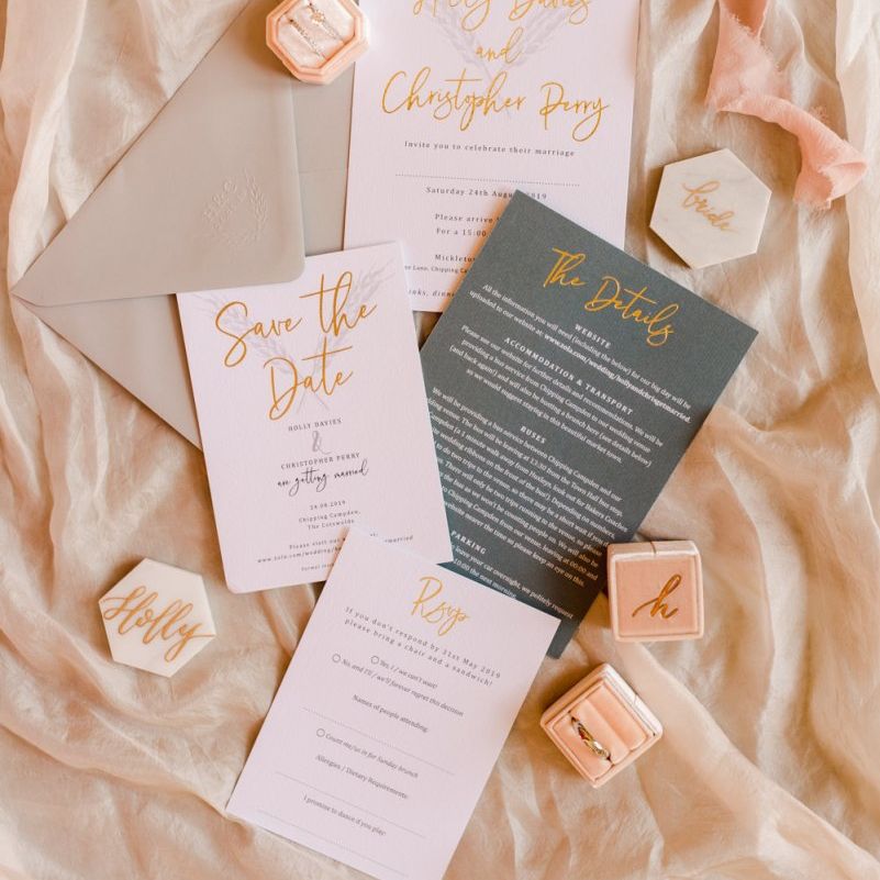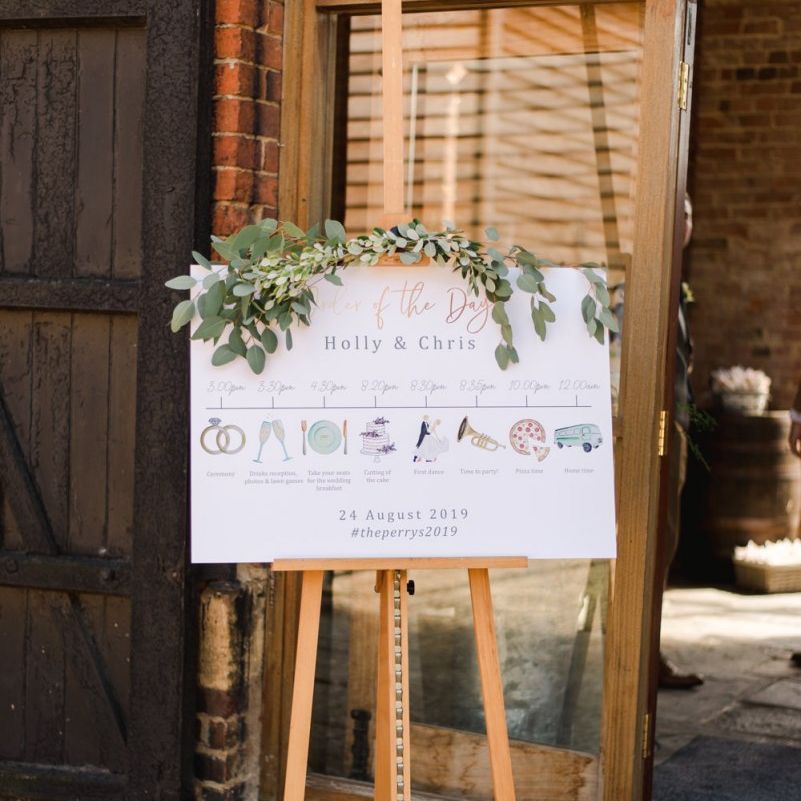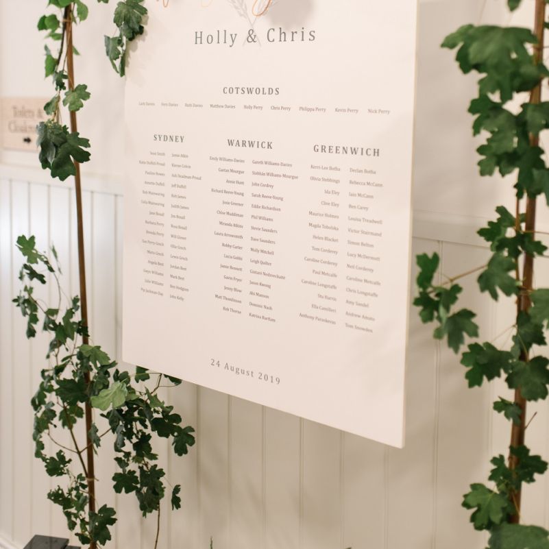 We wanted the day to be really relaxed and fun! It's not often that you get all the people you love the most in one room and we just wanted to throw THE best party of our lives (and of course tie the knot after nearly a decade together!) and for nothing to be forced/staged. The inspiration behind our styling was very much centered around "bringing the outside in" with a hint of fun / modern touches. We both grew up in the countryside (Holly on a farm) and really loved the natural greens, whites and coppers which fitted in perfectly with our beautiful barn venue.