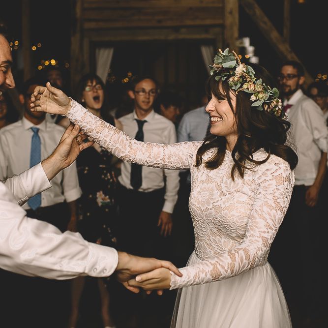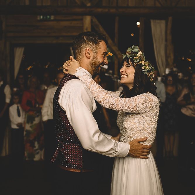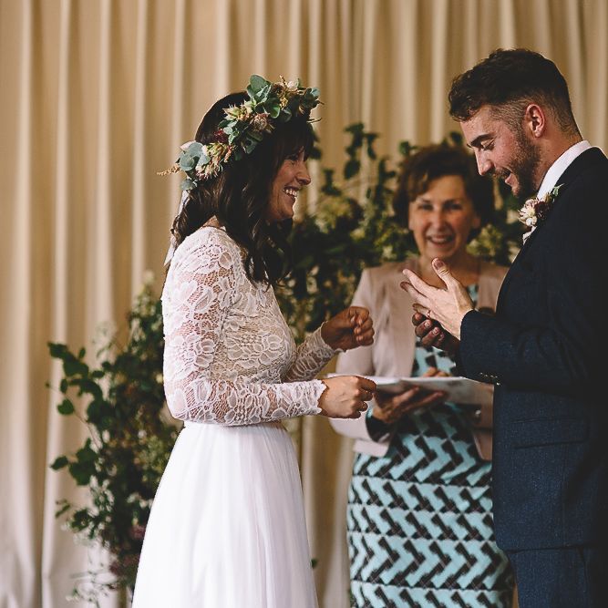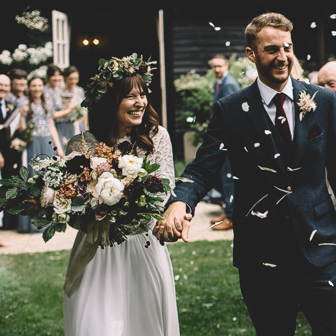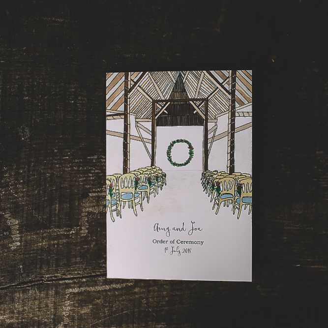 We wanted our day to be a fun and relaxed Summer day, including Pimms and games and some great food. We wanted our flowers to be large and wild, and to contain in-season foliage and flowers. We wanted a non-traditional semi-naked cake adorned with flowers that tied in with our flowers. We loved that our venue was in a quiet countryside location, allowing us to get some shots in some fields, and with outdoor space for our guests to enjoy as we love spending time outside exploring the countryside and going on long walks. We wanted it all to be personal to us and our stationery was a big part of that- Katie painted illustrations of Lancaster University where we met for our save the date, where we currently live for our invite and Godrevy lighthouse where we got engaged for our RSVP. The on the day stationery was all centred around the beautiful Clock Barn.