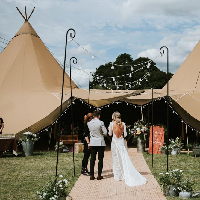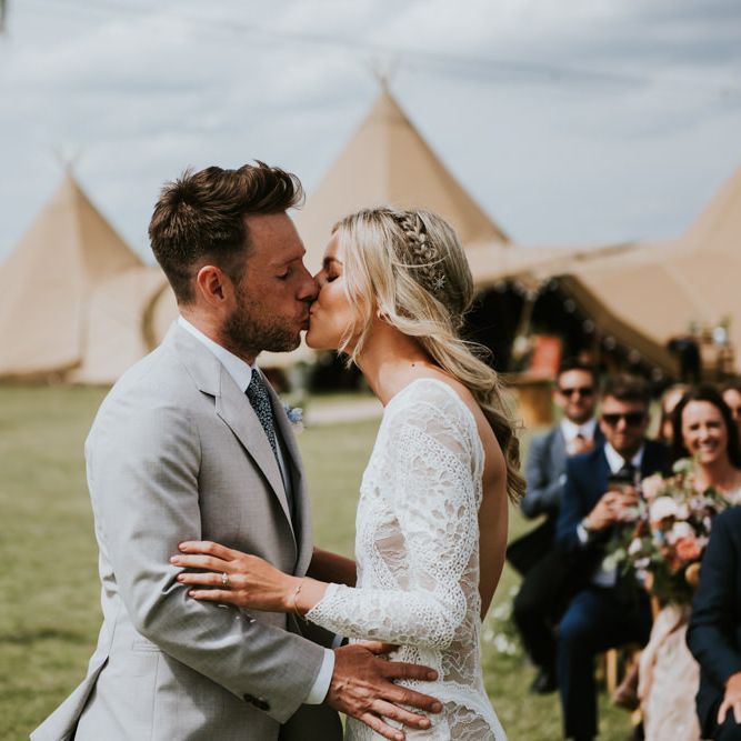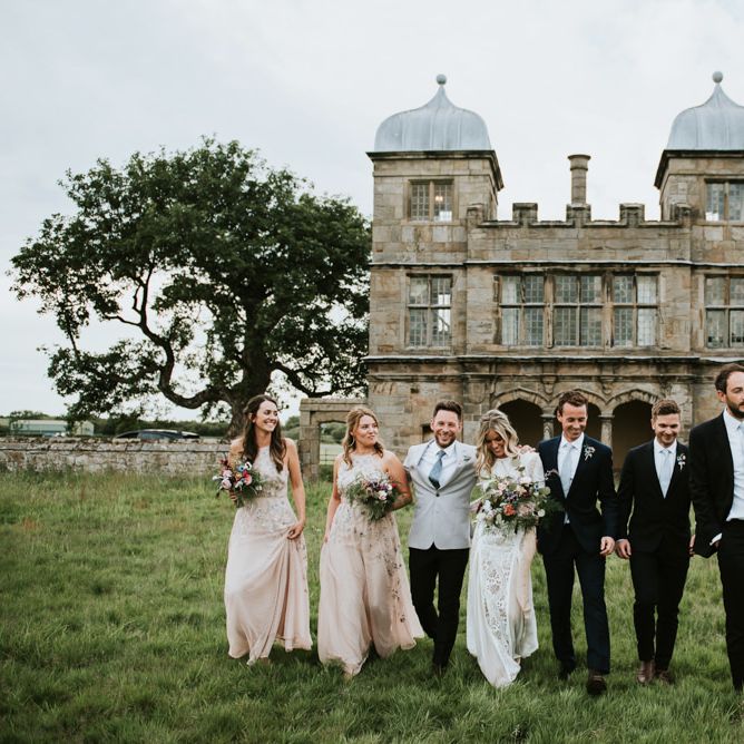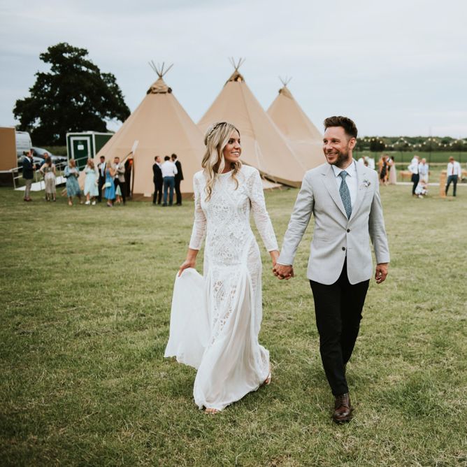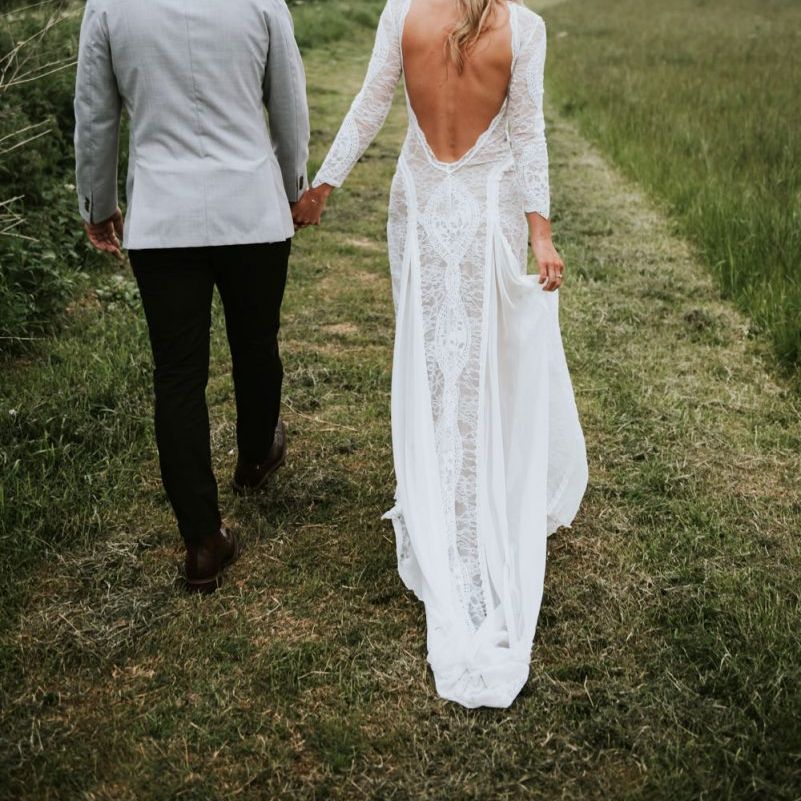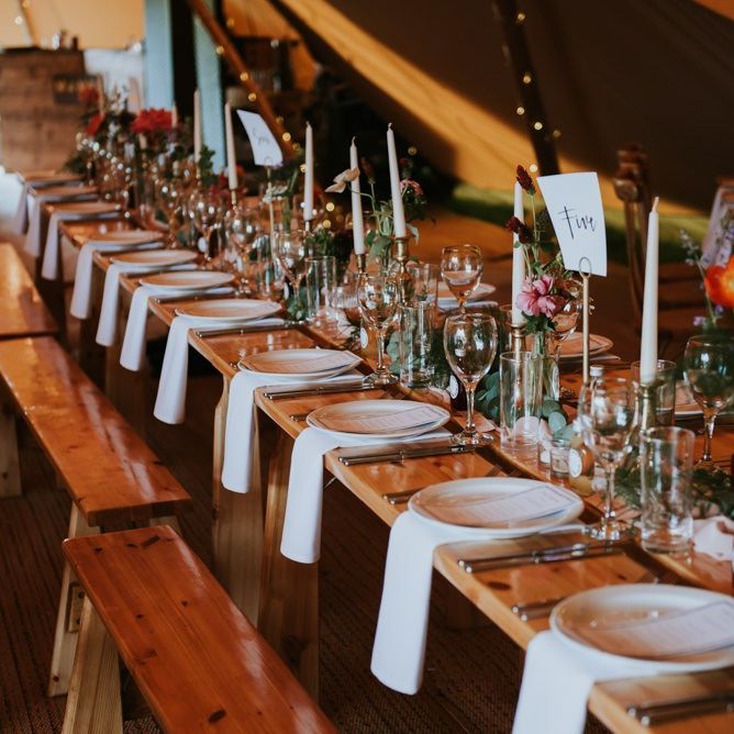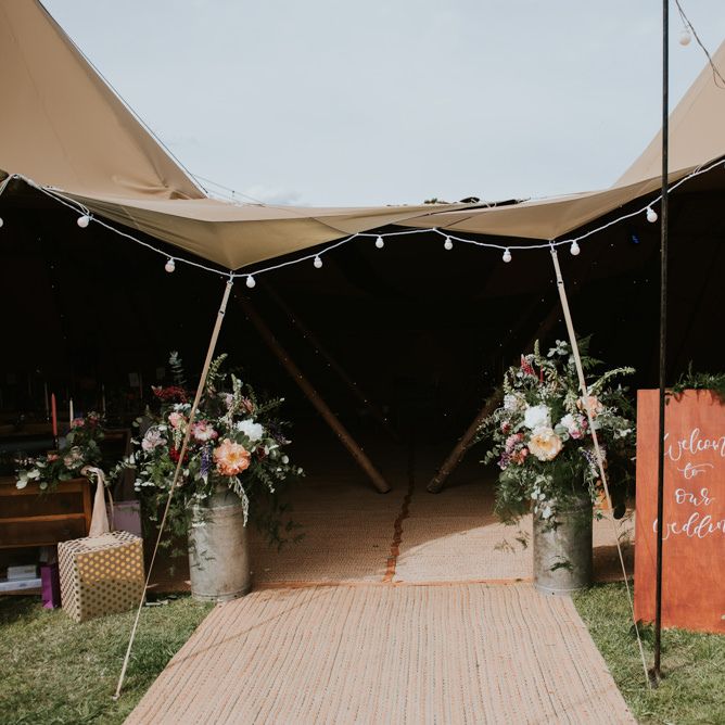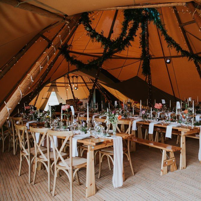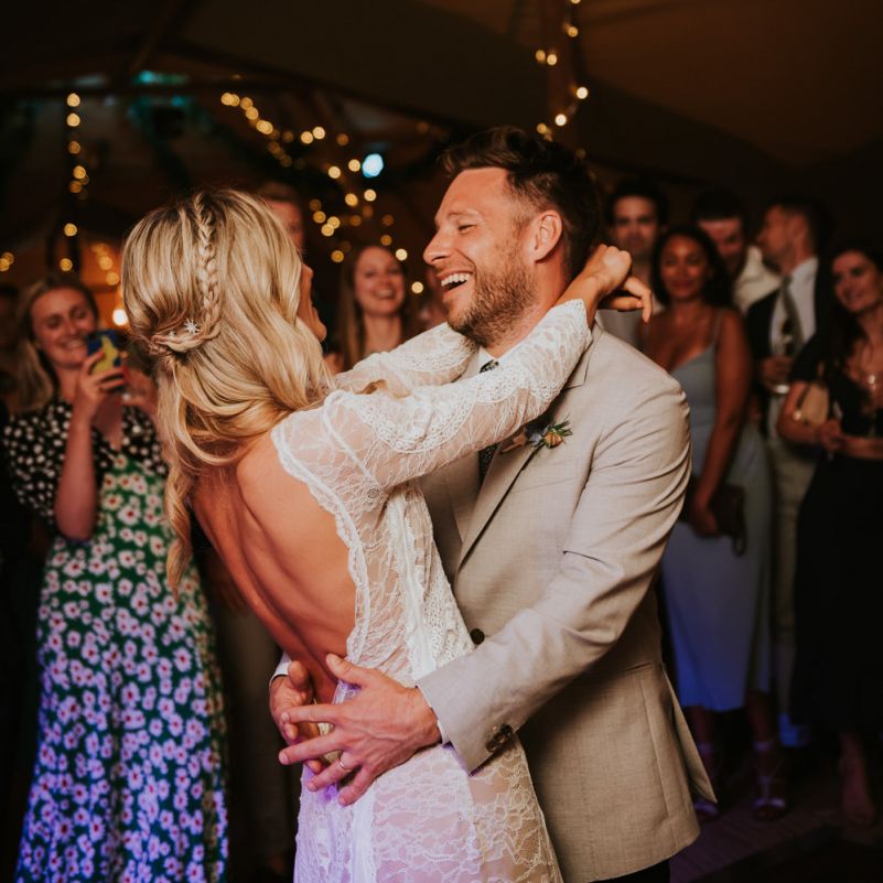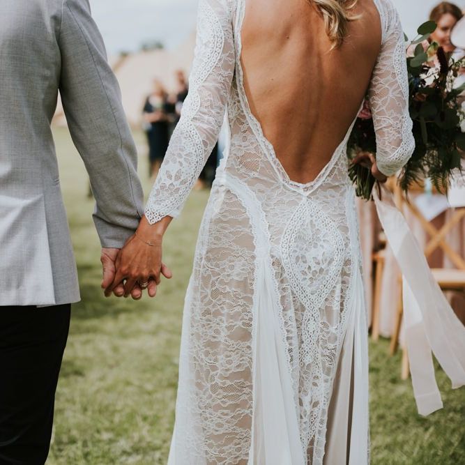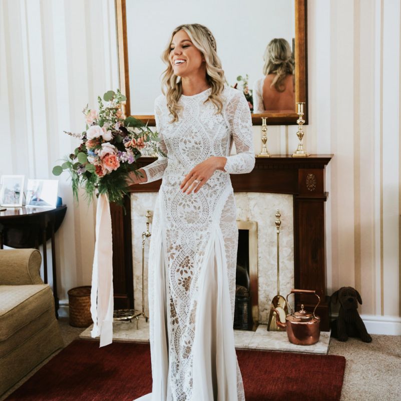 I would say the general vibe for the day was a relaxed and fun day. We wanted to have all our friends and family together eating and drinking great food and drinks and hopefully having a lovely time! The inspiration for the styling was the English countryside, mixed with a bit of boho. The flowers were seasonal British flowers grown in our florist’s cutting garden and the venue was a field by the River Trent, so we wanted the styling to be wild and natural so that it was keeping with our surroundings.