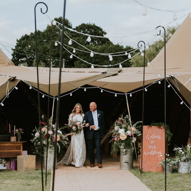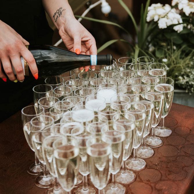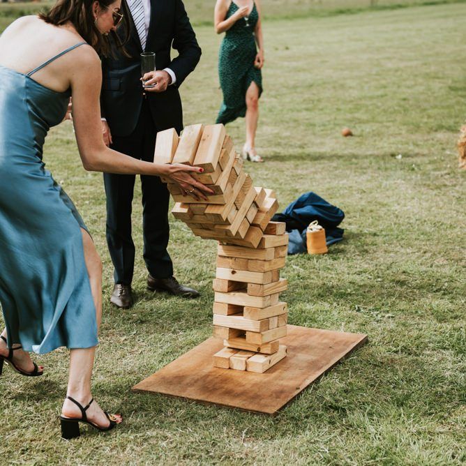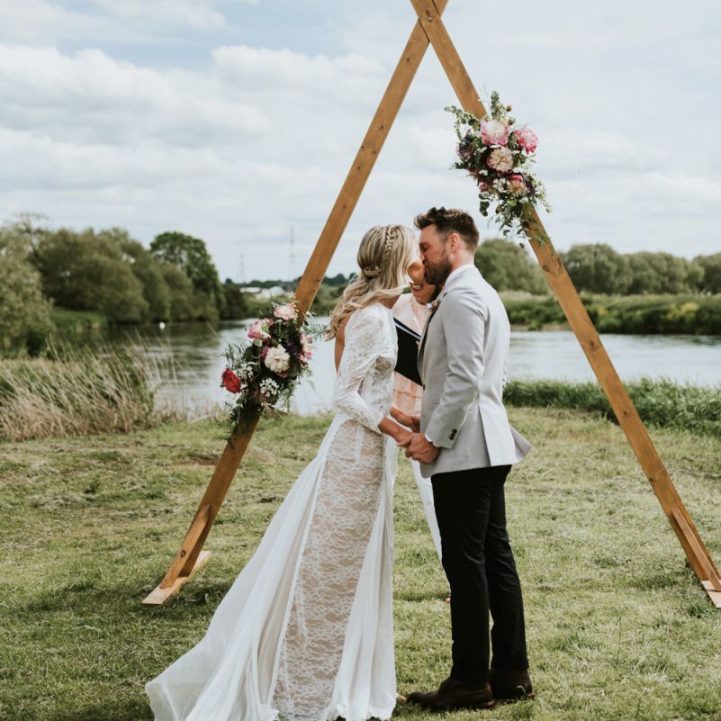 I feel like we managed to have all the elements of a traditional wedding but with a relaxed and nonformal feel to them. We had our ceremony outside by the river under a big wooden arch. The celebrant told the story of how we met and our lives together and one of our friends did a short but sweet reading. All the food on the day was sharing style and we had a big tin bath with all the drinks in! We had giant Jenga and a coconut shy to keep the guests entertained throughout the day and a soul band in the evening. We wanted the day to feel like one big fun party, which I think we managed to achieve!