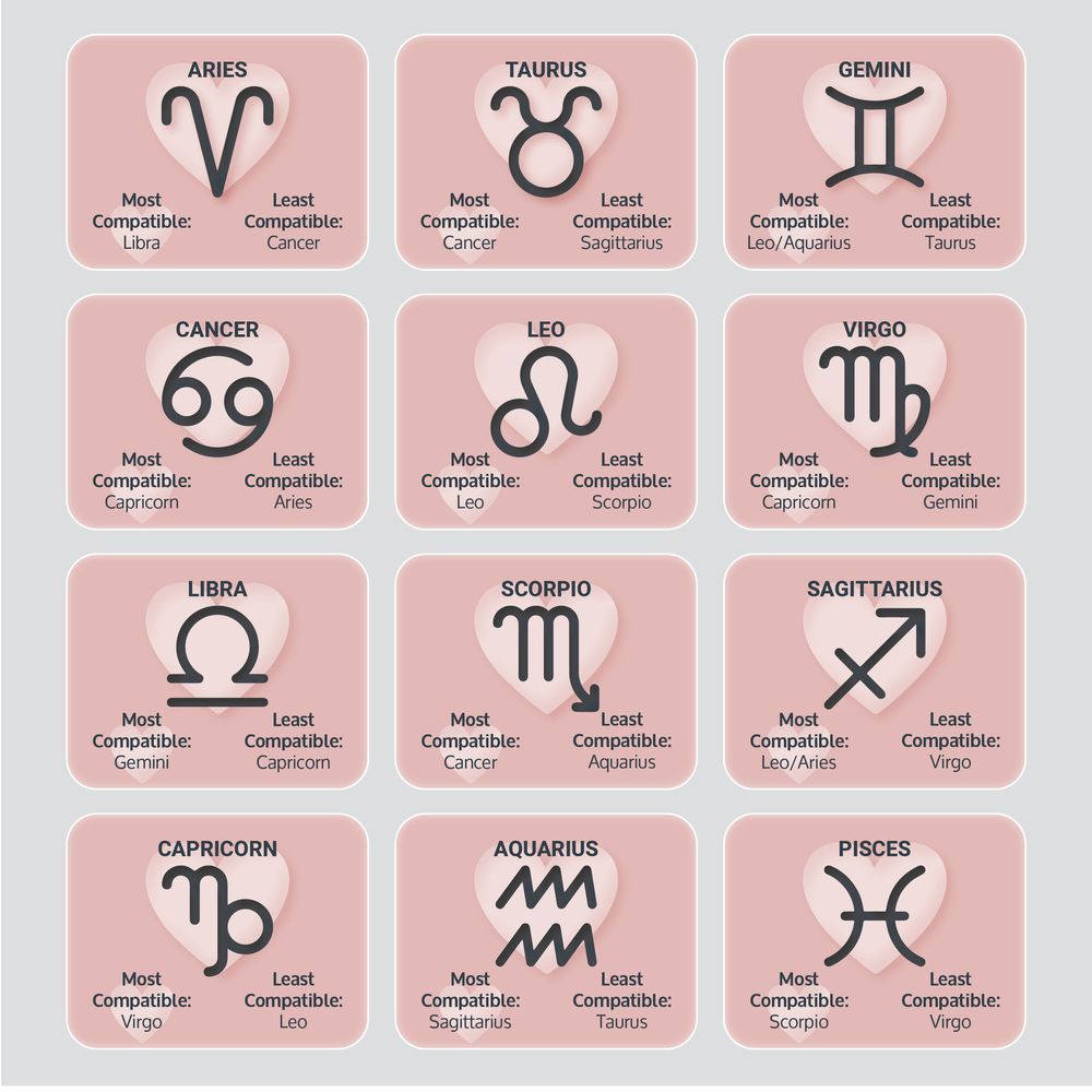Do you think you've found the one? Check out your compatibility with your lover's zodiac sign to see if you can go the distance. Don't forget to apply your moon and rising signs too!
