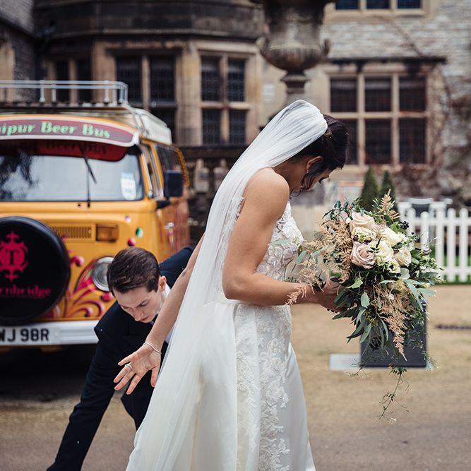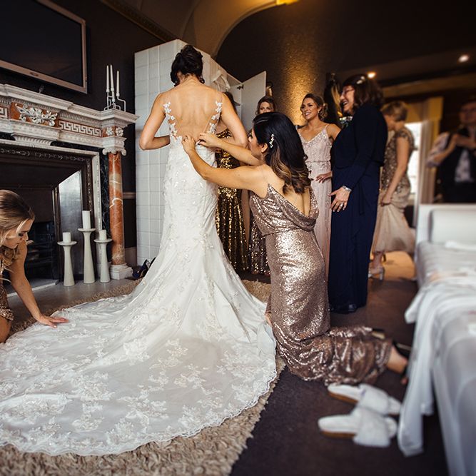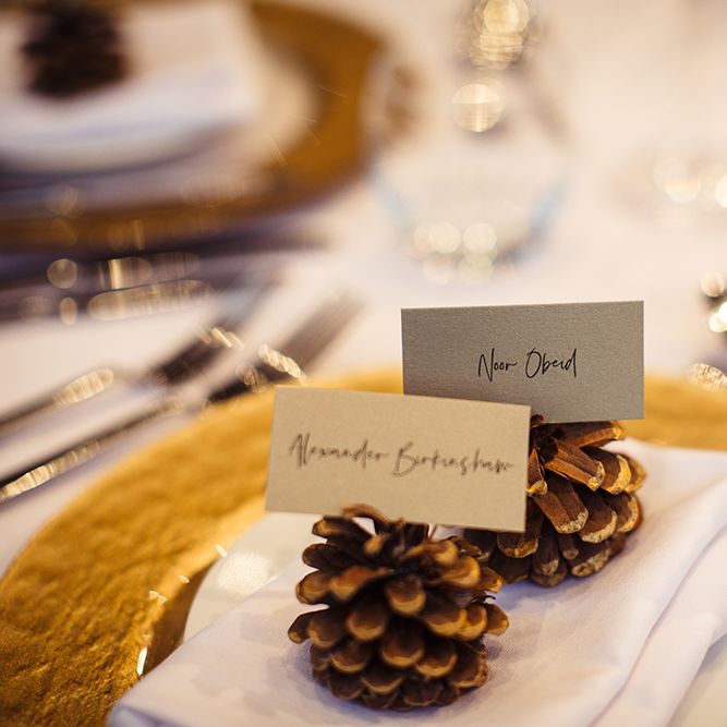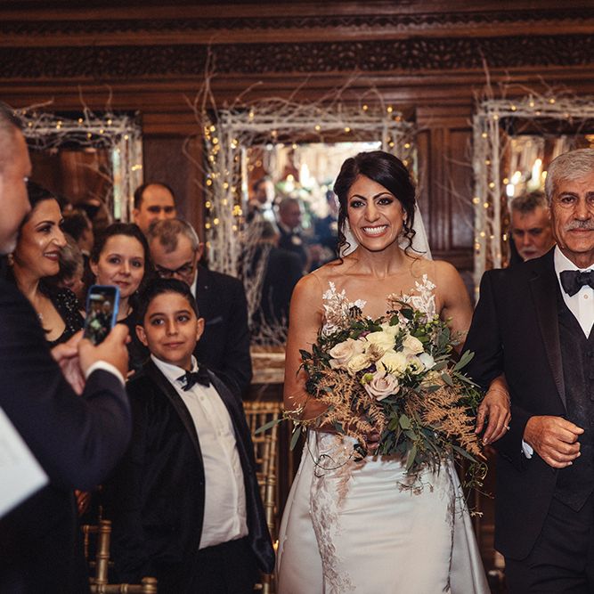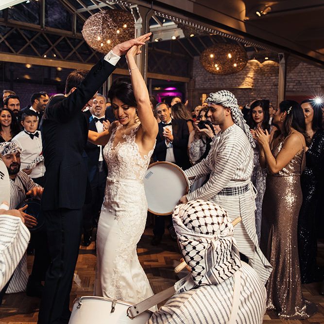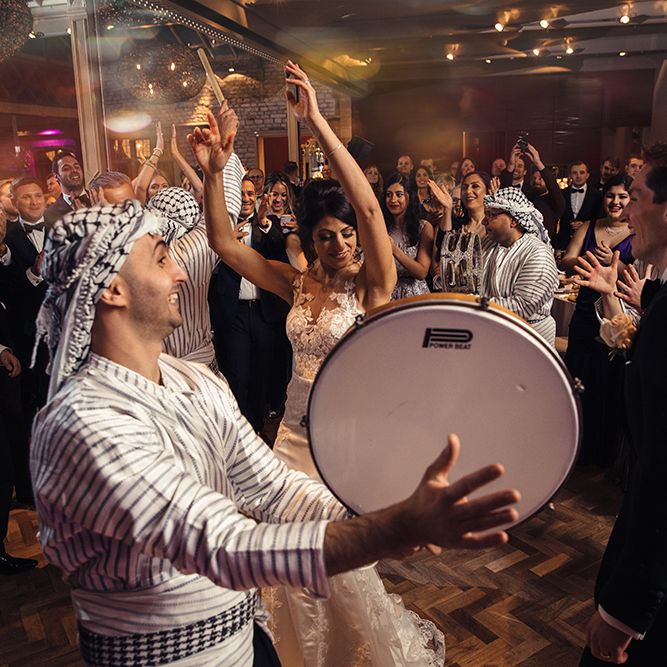 We wanted an action-packed party full of dancing and fun to enter the New Year whilst still having a classy black-tie backing to celebrate our wedding. The stylist inspiration came from Noor’s idea of a winter black-tie event, with open wooden fires, candles and twinkles to catch the eye. The Zaffa and Dabka really were a fantastic way to get the party going. We haven’t been to a wedding before that started with dancing before the wedding breakfast. It helped everyone to relax and gave a spectacular talking point over dinner. It was, without a doubt, the best way to kick the party off.