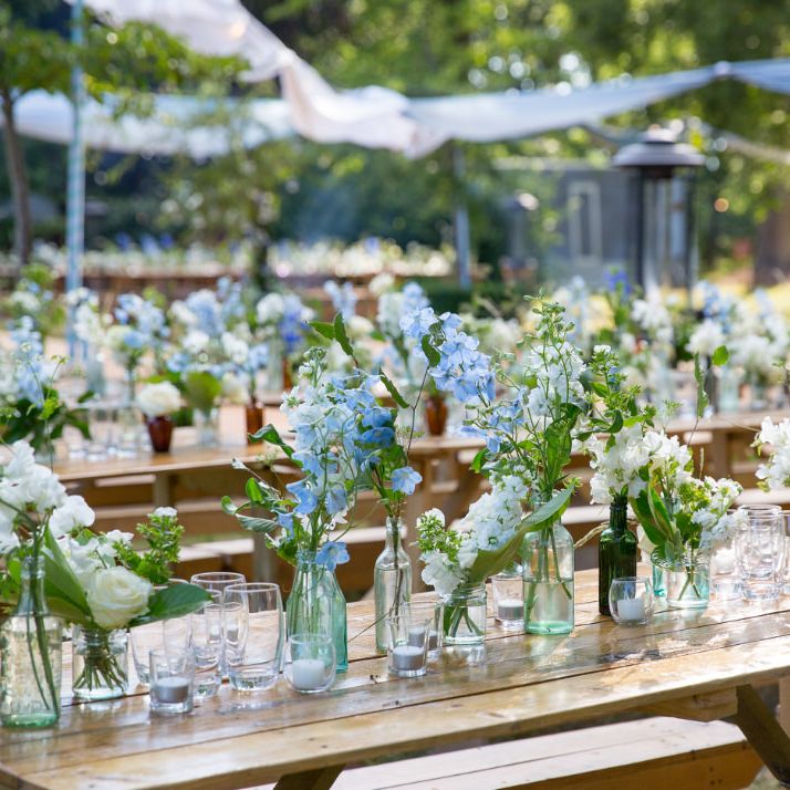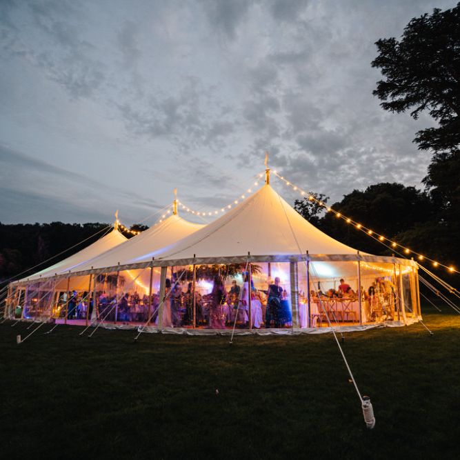 Outdoor Ceremony and Tent Wedding Reception at Home with Burgundy and Green Colour Scheme