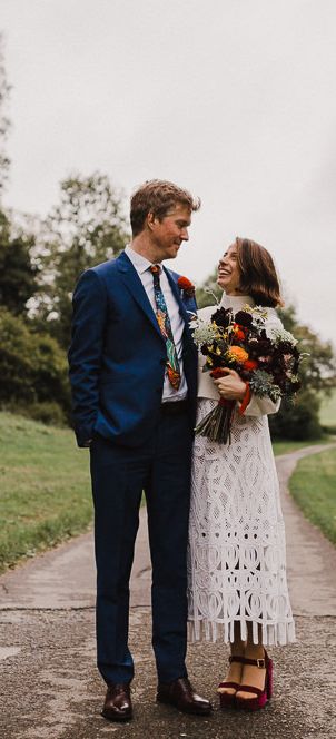 Crochet Wedding Dress for an Outdoor Woodland Wedding at Gorwell Barn in Dorset