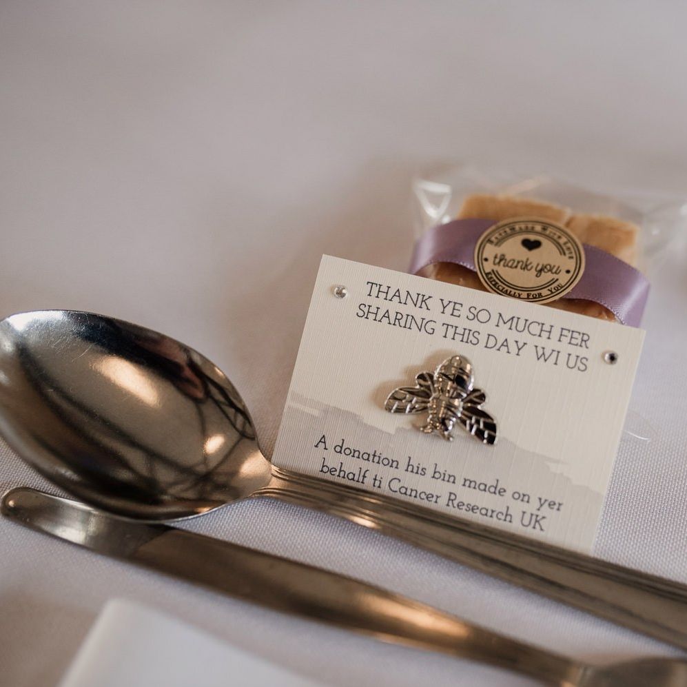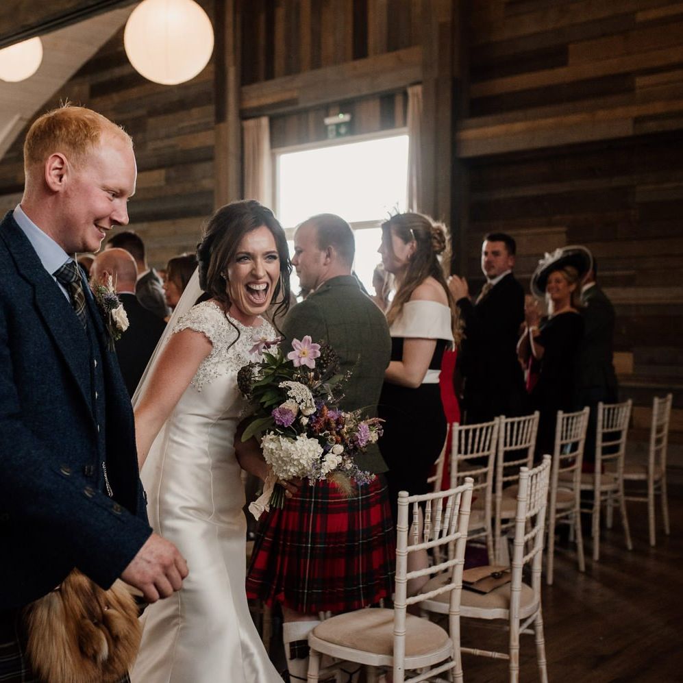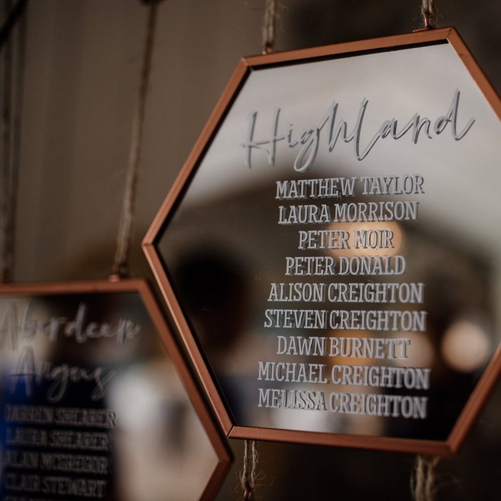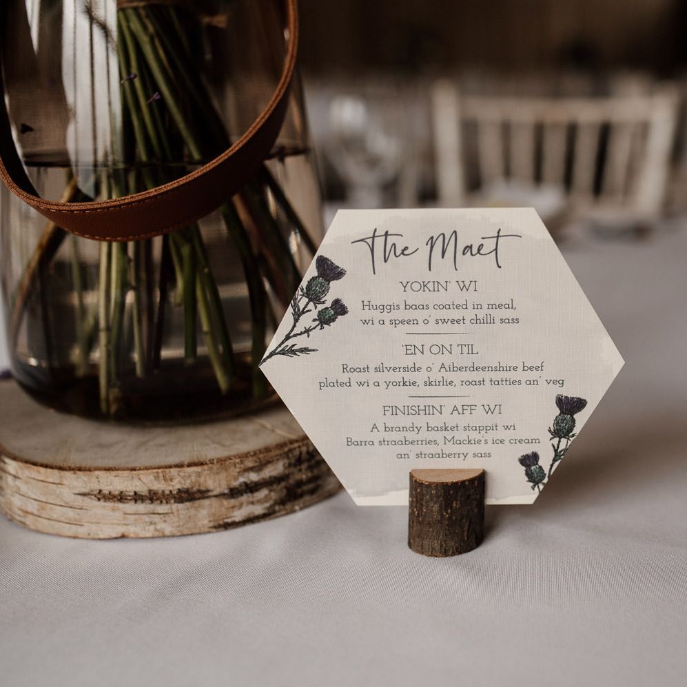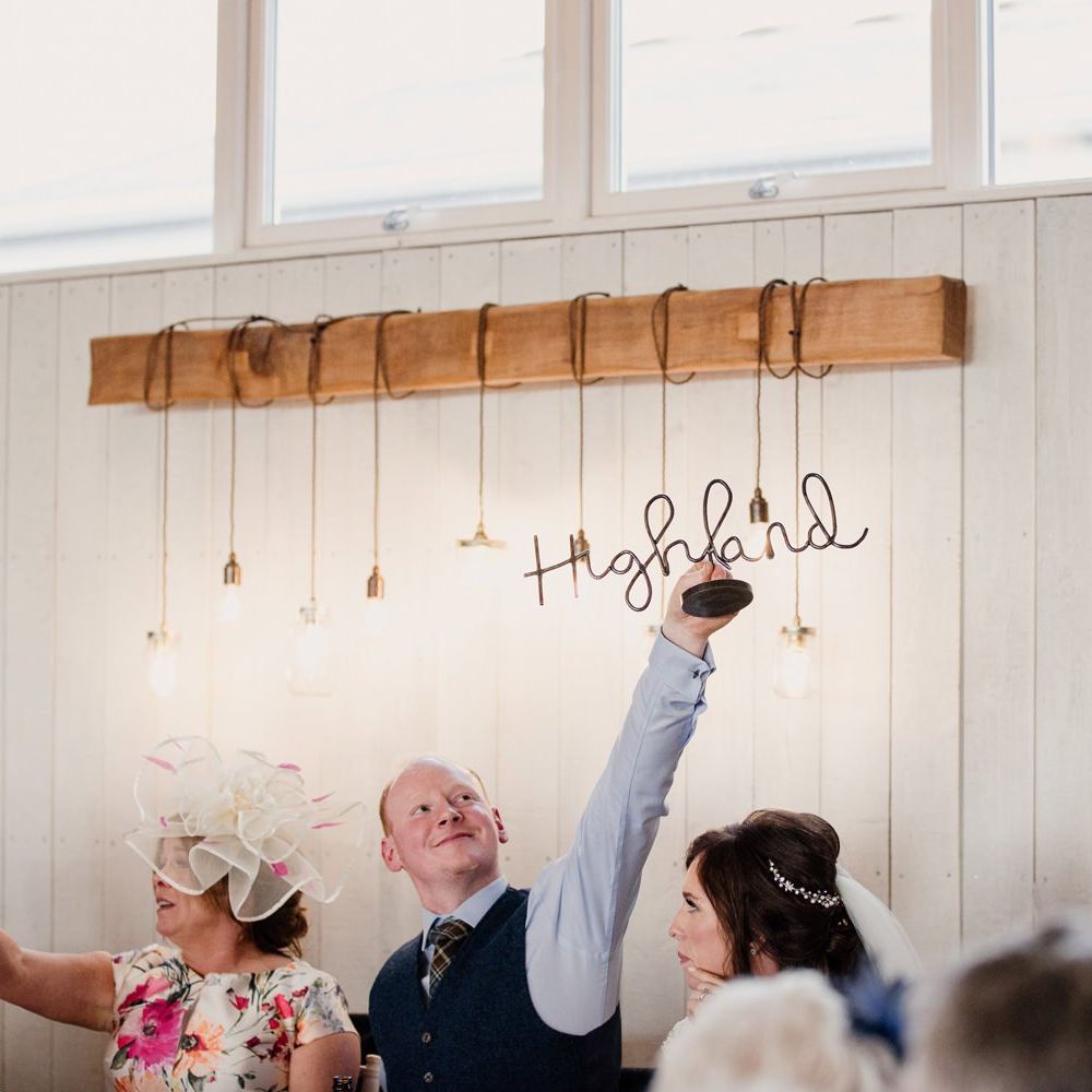 We always said we wanted our day to be fun and relaxed with a nod to our Scottish roots. And of course, being Scottish also means we love a party! We kept the styling simple and focused on things which meant something to us. Michael is a cattle hoof trimmer so our table names were cattle breeds, we had cattle ear tags as place settings and we even had highland cow horns on the top table! We also had nods to