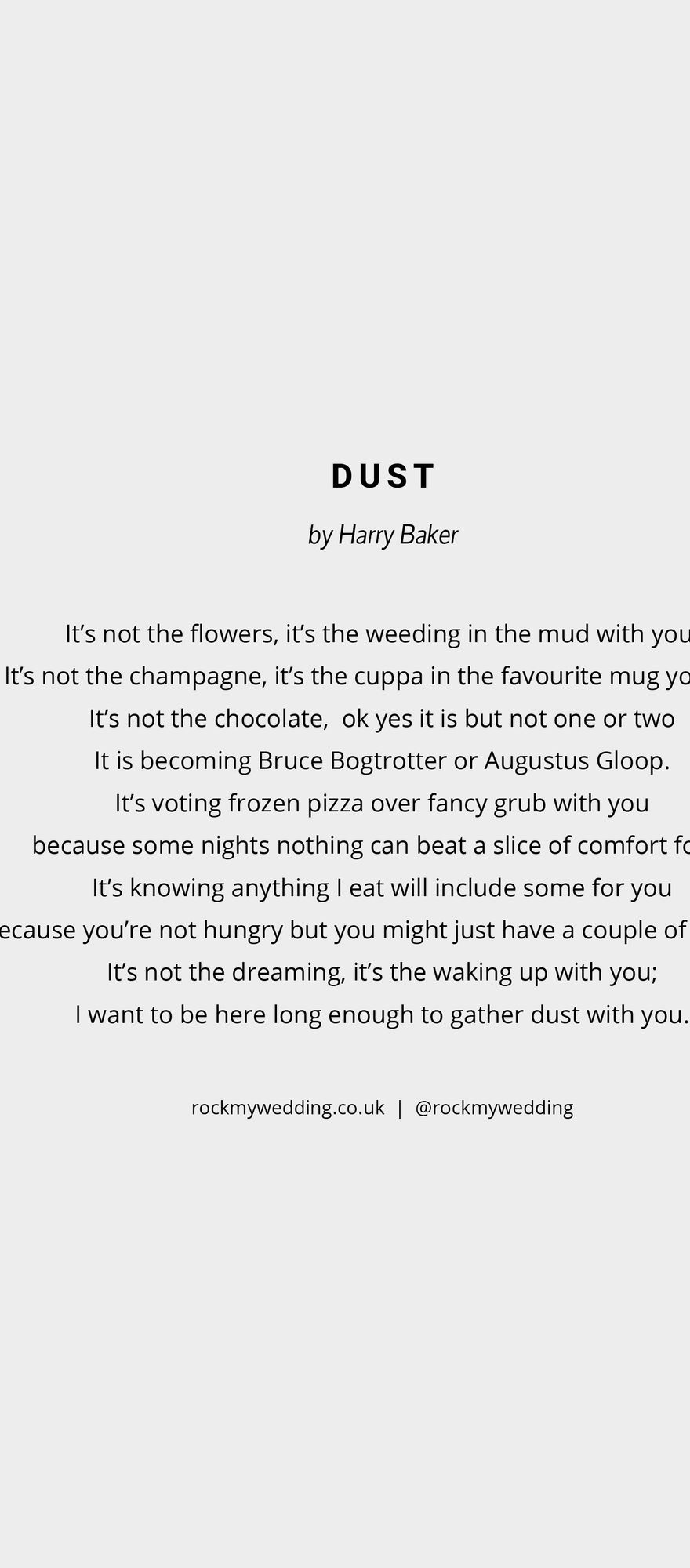 If Dust by Harry Baker is the wedding reading for you, download a PDF version of this wedding reading below!
