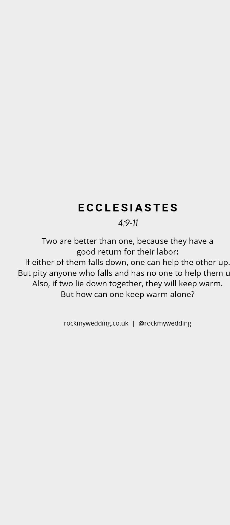 Ecclesiastes 4:9-11 seriously is one of favourite wedding readings. As this reading says, things are just better in pairs! Like your ceremony and this reading...