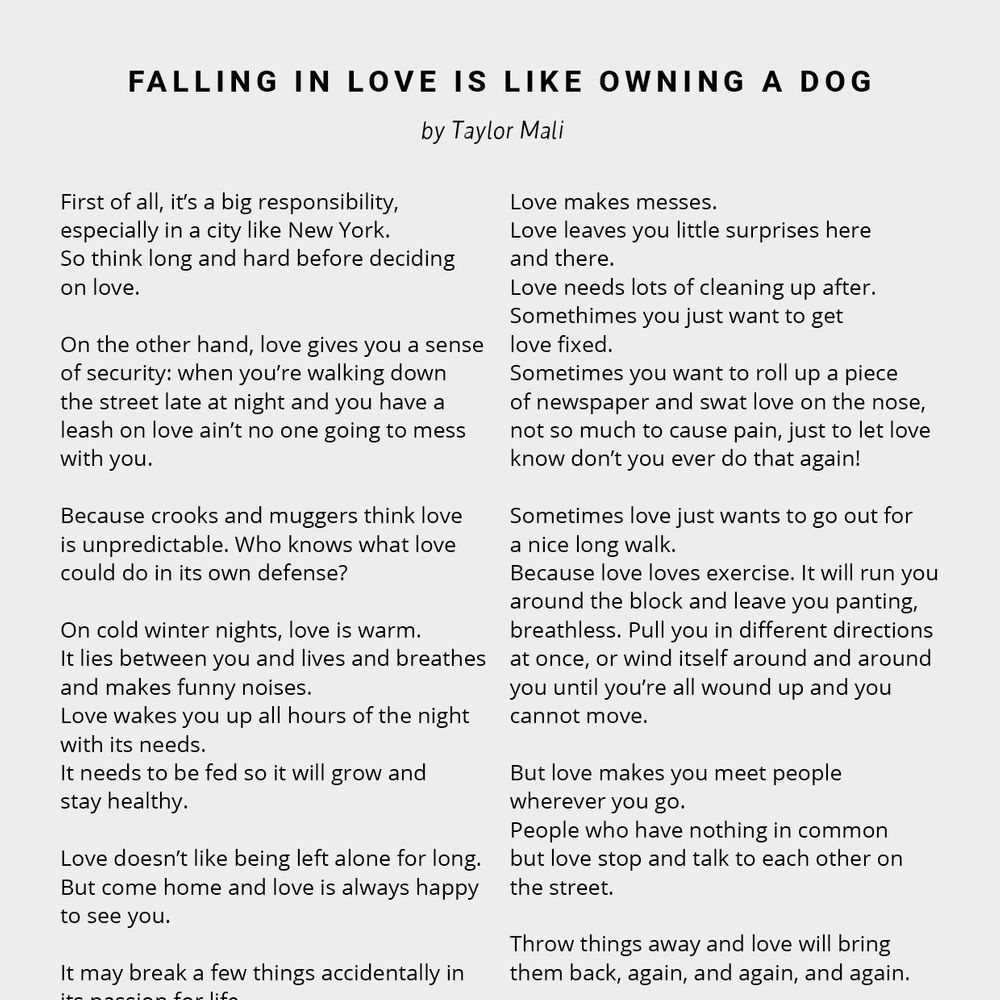 Then we've got you covered. Enjoy our free printable copy of 'Falling in Love is Like Owning a Dog' below!