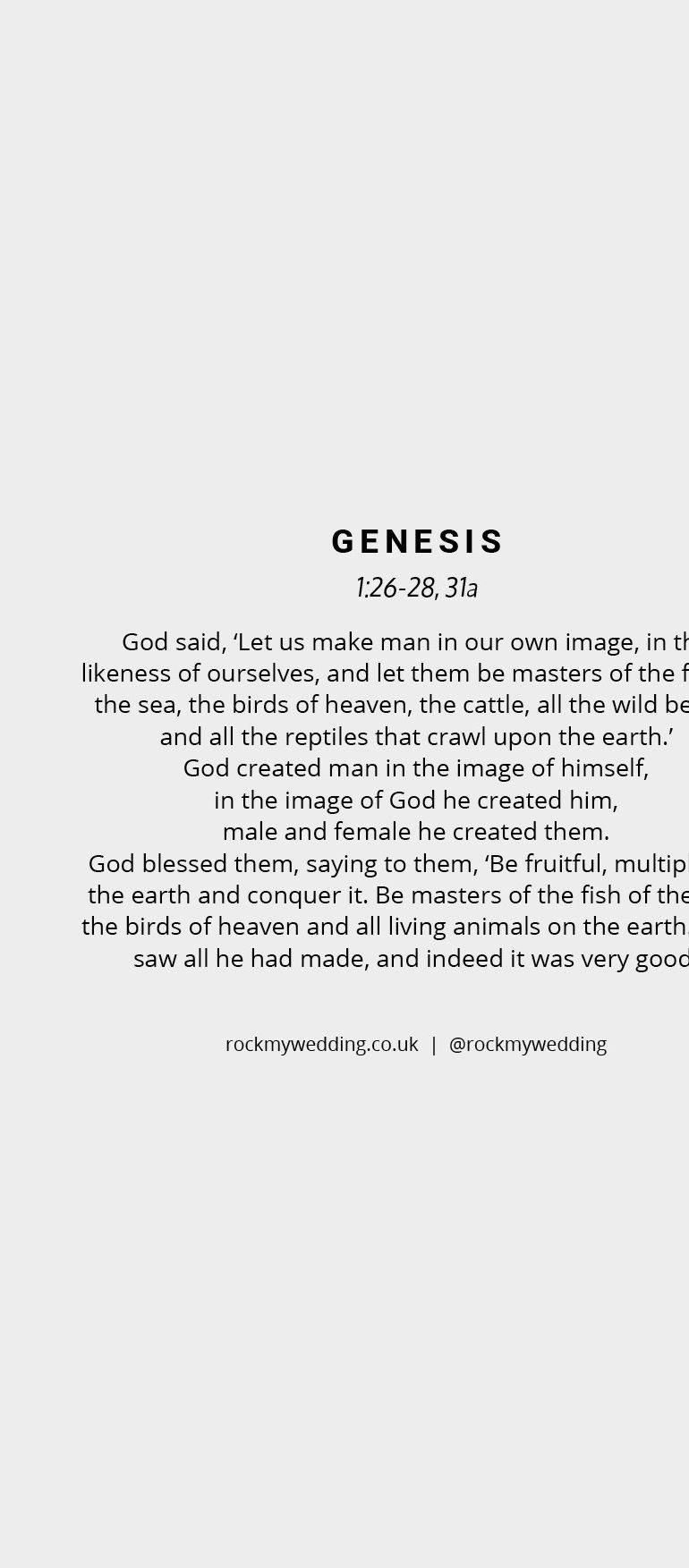 If Genesis 1:26-28, 31a is the reading for your big day, download a copy below!