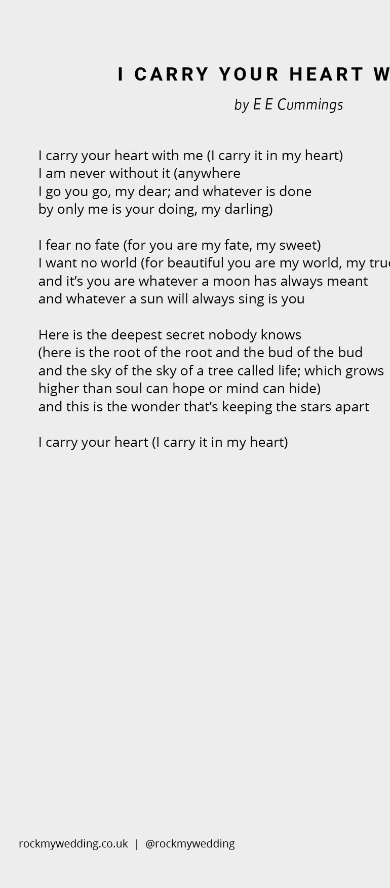 Well we've got a free printable copy of E E Cumming's I Carry Your Heart With Me right here, right now.