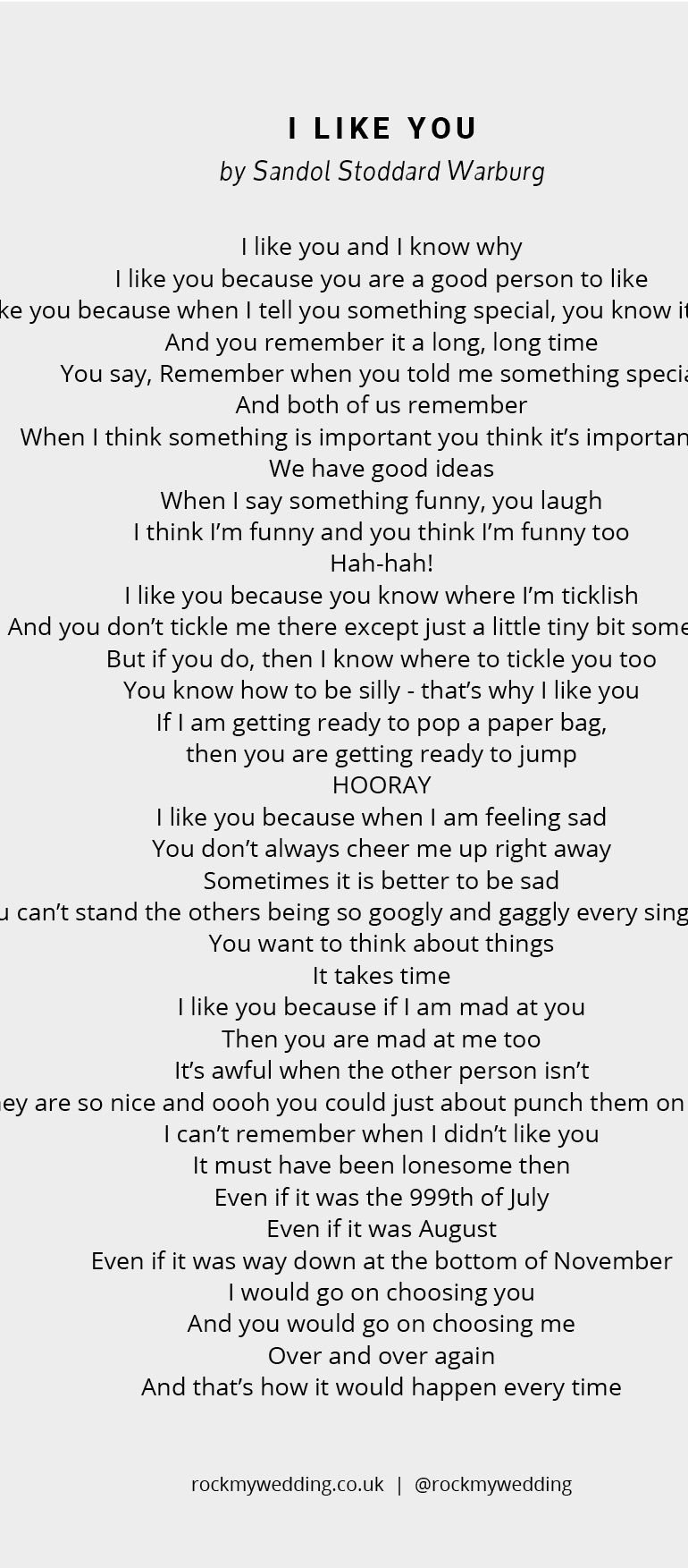 Then you're in the right place! You can download a free printable copy of I Like You by Sandol Stoddard Warburg down below.