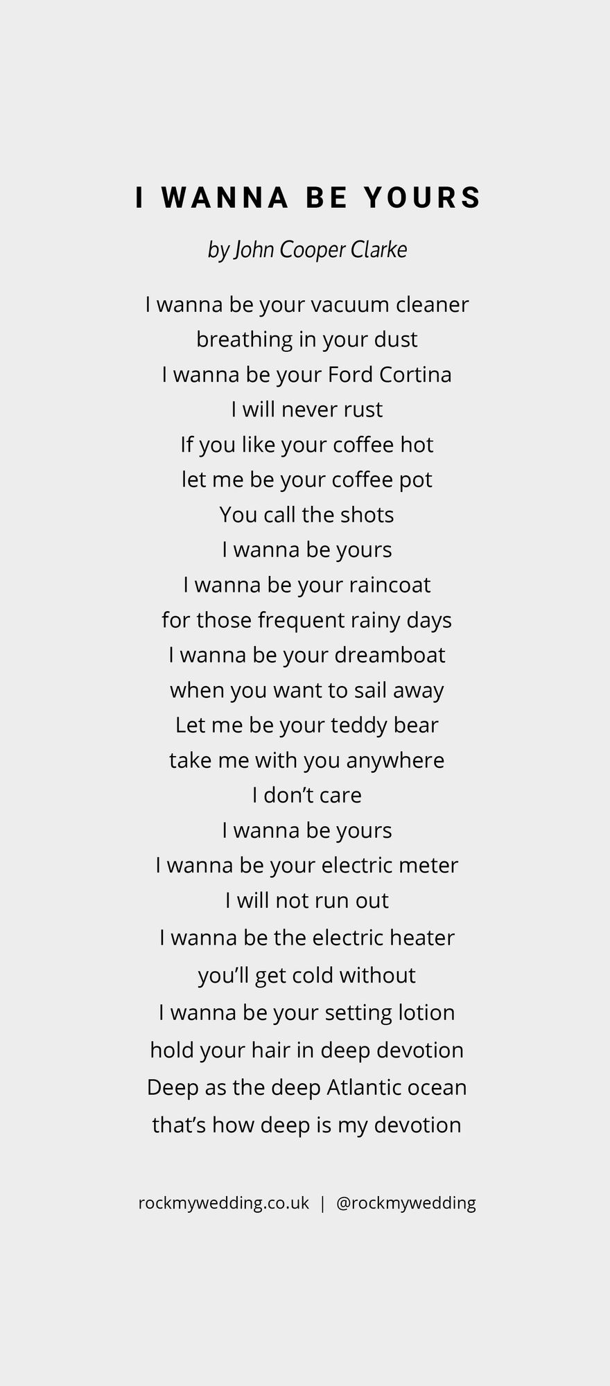 Then you're in luck! Because we have a free printable copy of I Wanna Be Yours by John Cooper Clarke right here.