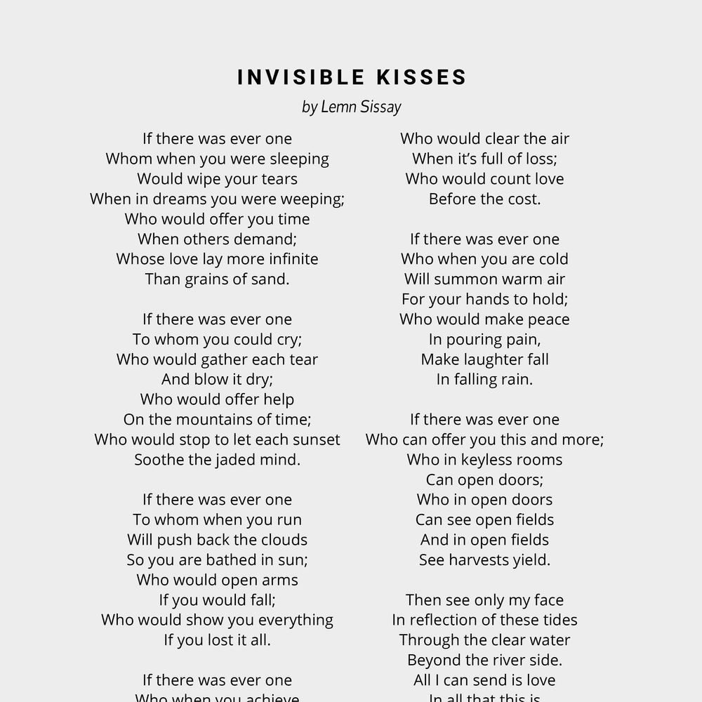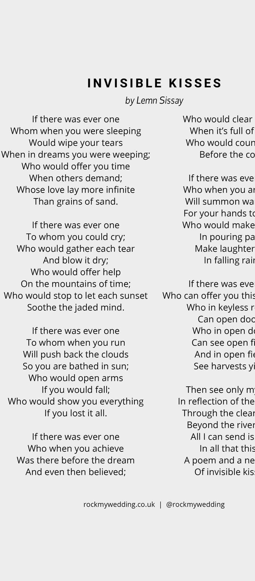 If this wedding reading is the one for you, download Invisible Kisses by Lemn Sissay below!
