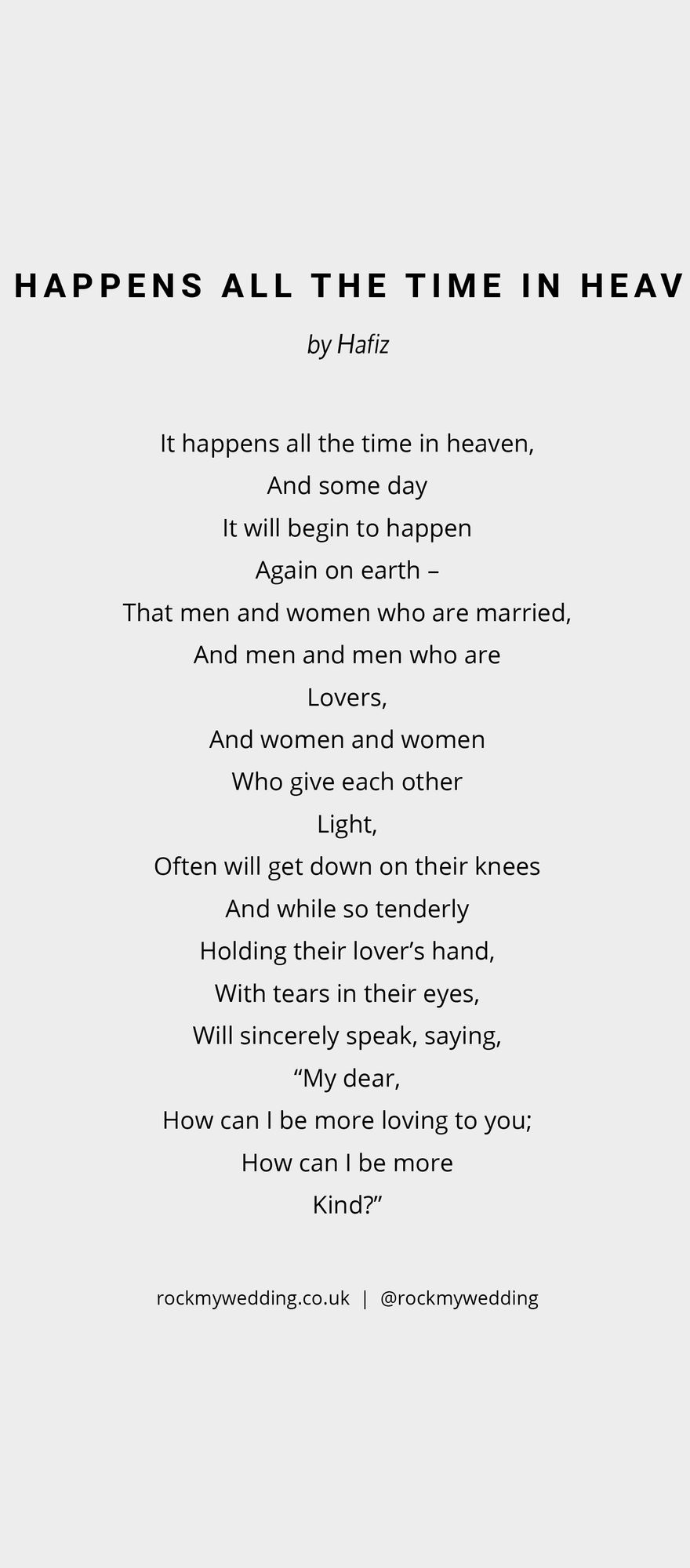 It Happens All The Time In Heaven is one of our fave poems because it talks about needing to devote time and care to love and relationships in all of its forms, of which there are many. If you like this reading as much as we do, download the wedding poem below.