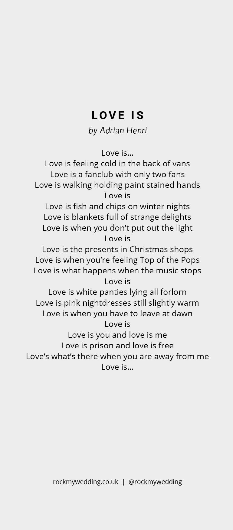 If you need a copy of Love Is by Adrian Henri for your wedding ceremony, then look no further!