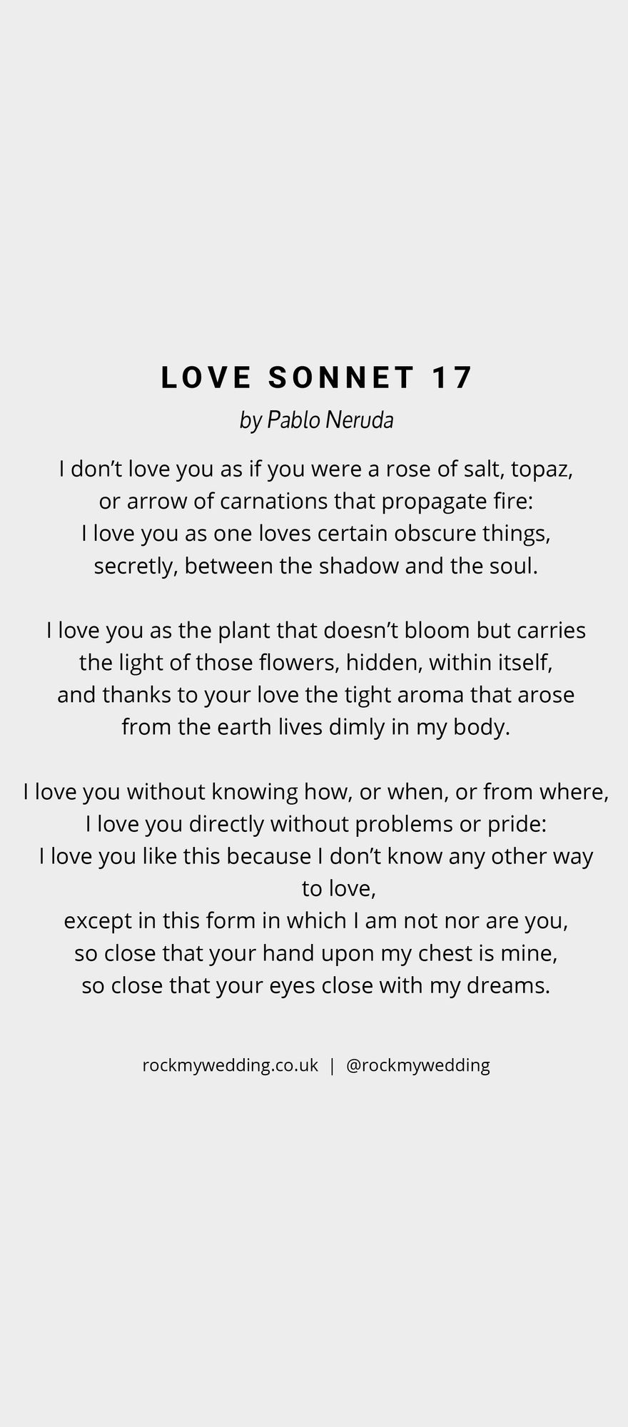 If you think Love Sonnet 17 by Pablo Neruda is perfect for you and your beau, then download a free copy below!