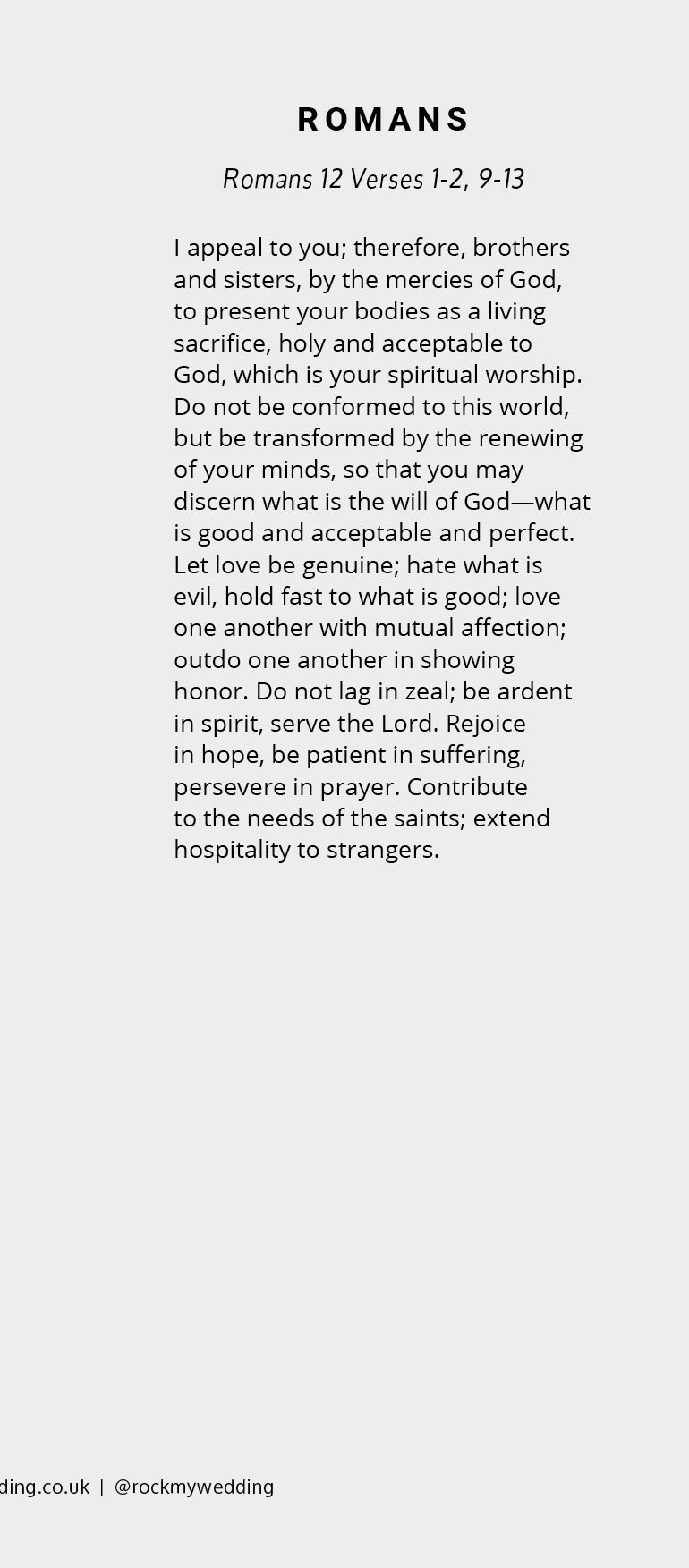 If you're looking for a copy of this Romans 12 1-2, 9-13 bible wedding reading, then we have you covered!