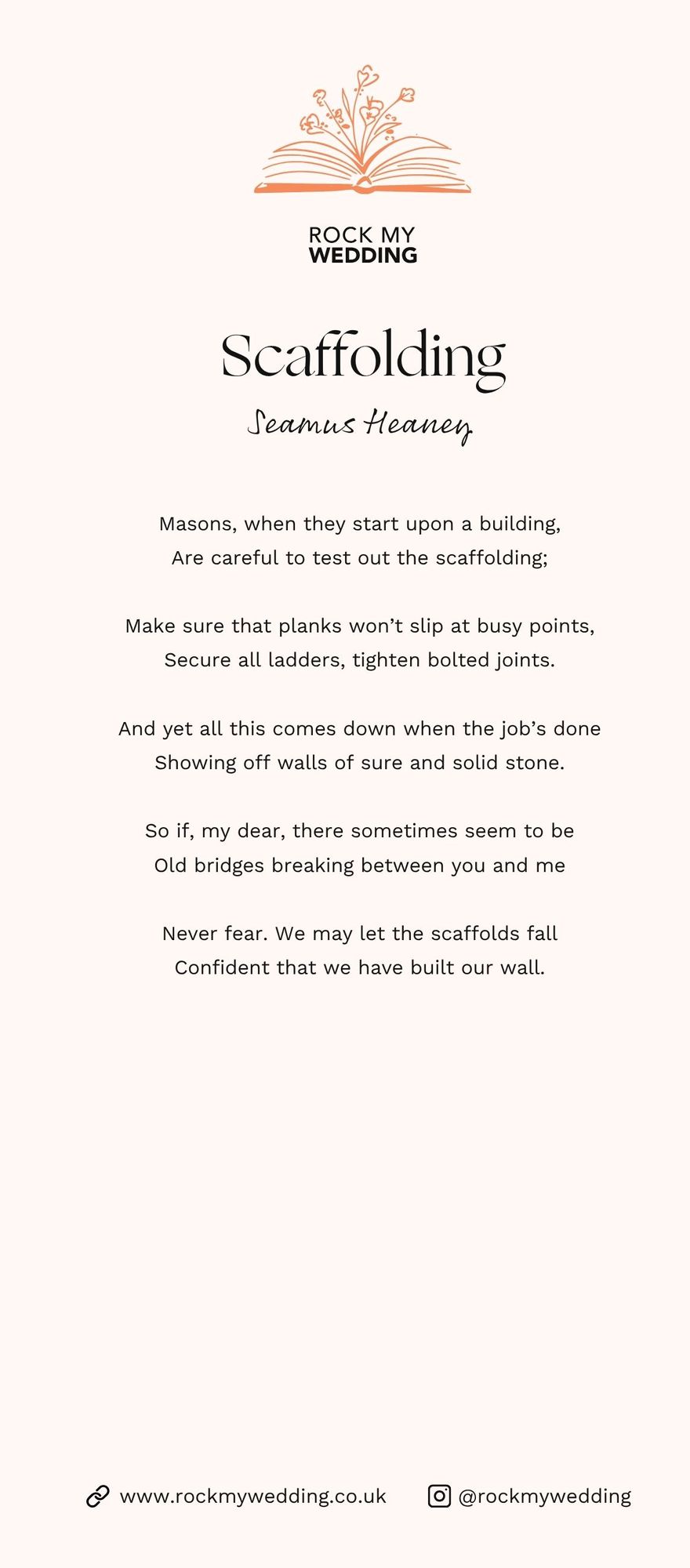 Scaffolding may be temporary, but this poem is one we won't forget. If you like this wedding reading, download a PDF version below!