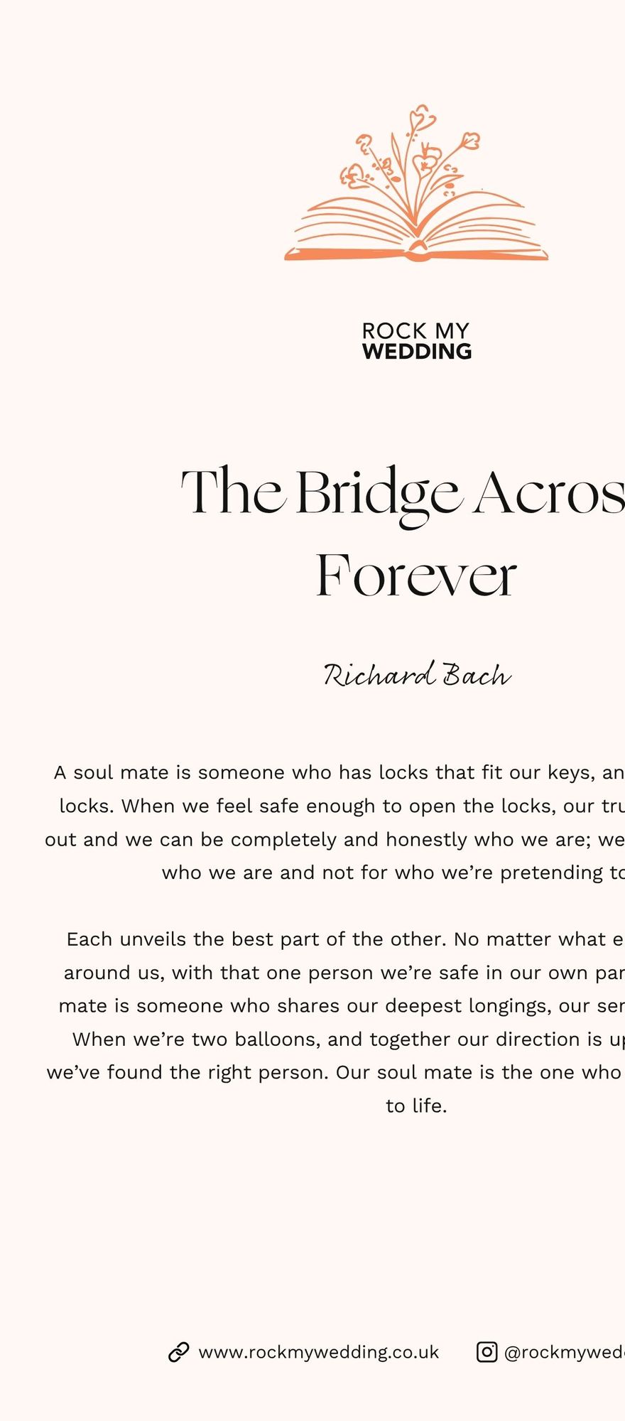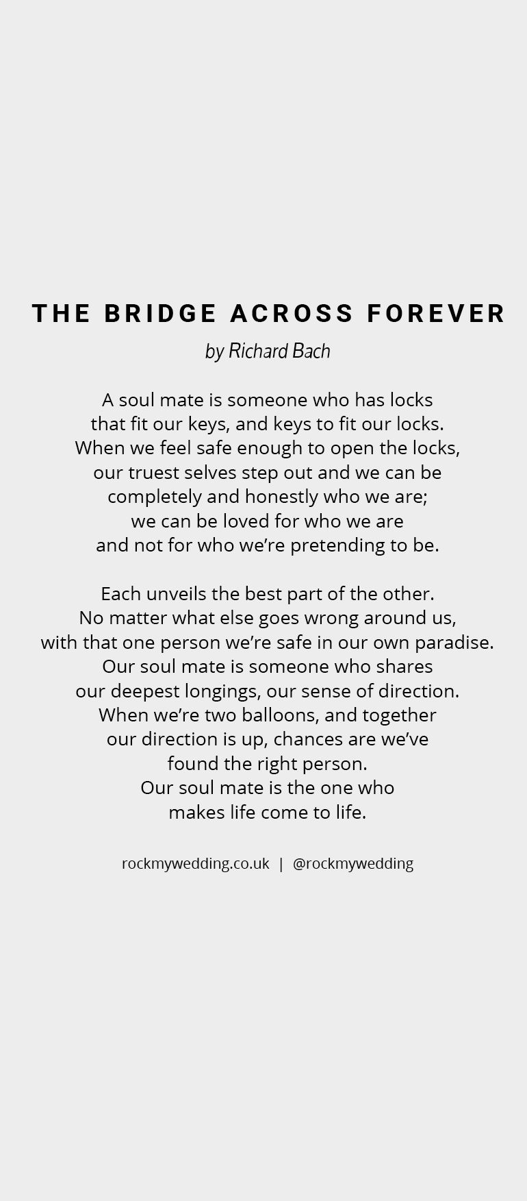 If Richard Bach's The Bride Across Forever is your perfect wedding reading hit that button!