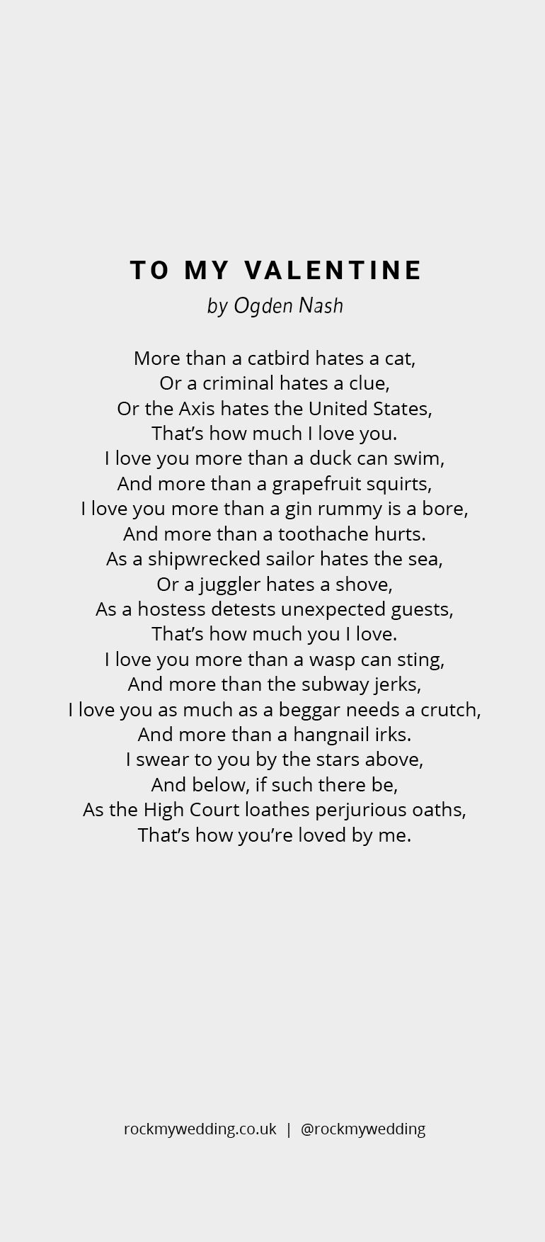 If you fancy a copy of To My Valentine by Ogden Nash then we've got you covered.