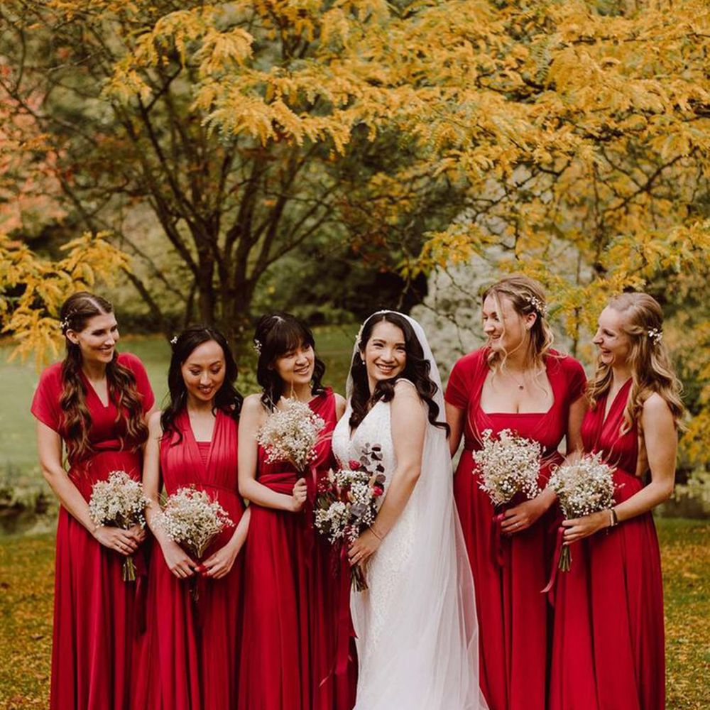 Planning a red wedding theme? Discover bold red bridesmaid dresses, floral inspiration, statement decor, and dramatic details to elevate your wedding style.