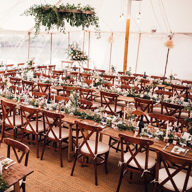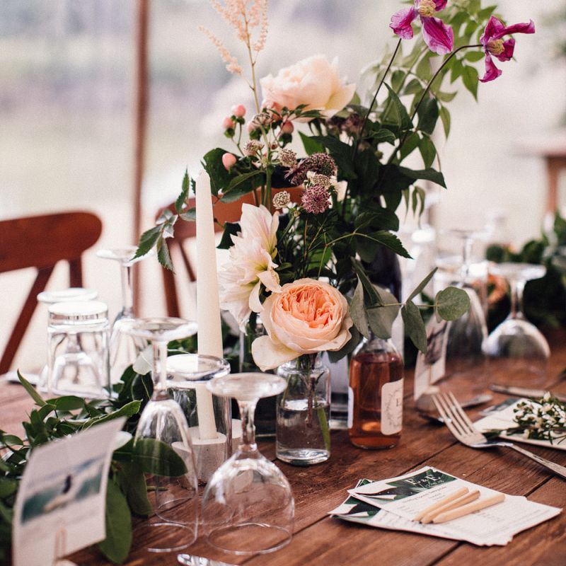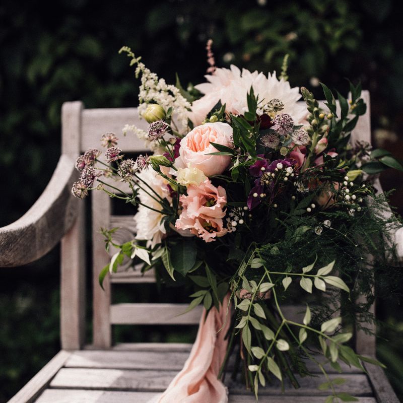 We were torn between getting married in East London (where we live) or back home where I am from in Leicestershire but after much consideration, we decided to have a marquee in a family friend’s garden as it meant more to us. We also felt there were a lot of restrictions with venues (timings/décor/noise etc) so this meant we had a blank canvas and could really make it personal to us. It was a beautiful location with lakes, swans, and meadows. The planning was stressful and challenging at times and but we wouldn’t have done it any other way and it all came together in the end. The ladies from Mon Amie are so talented. I gave them a brief and description of what we would like and on the day and I was blown away at how beautiful the flowers were! They dressed the marquee the day before the wedding and it looked incredible. We had café au lait dahlias, David Austin Juliette roses, as well as foliage: eucalyptus, fern and soft ruscus. I wanted my bouquet to be loose and natural with a cotton ribbon trailing
