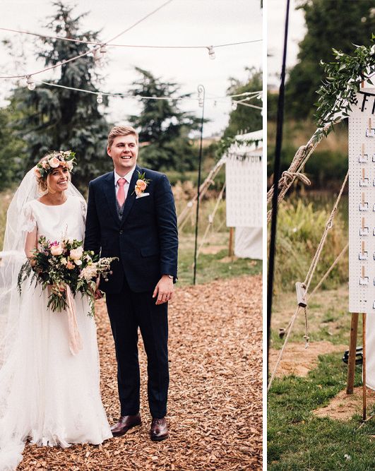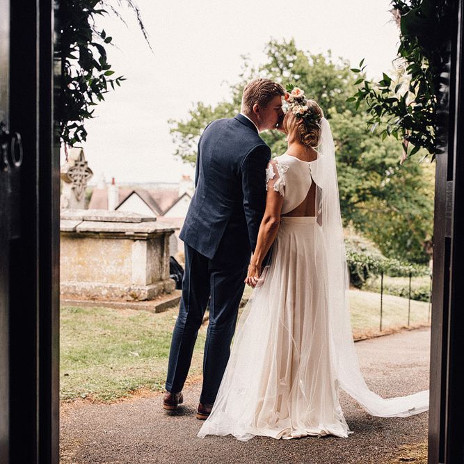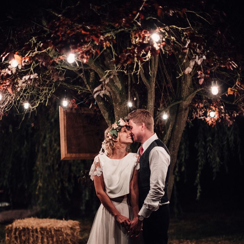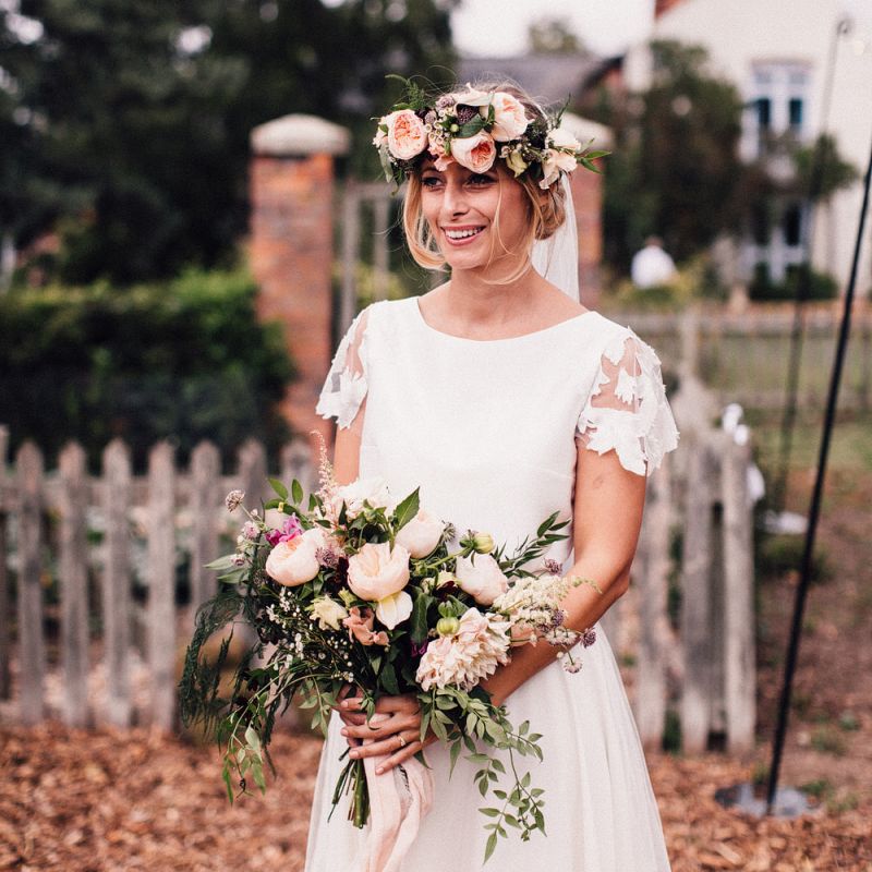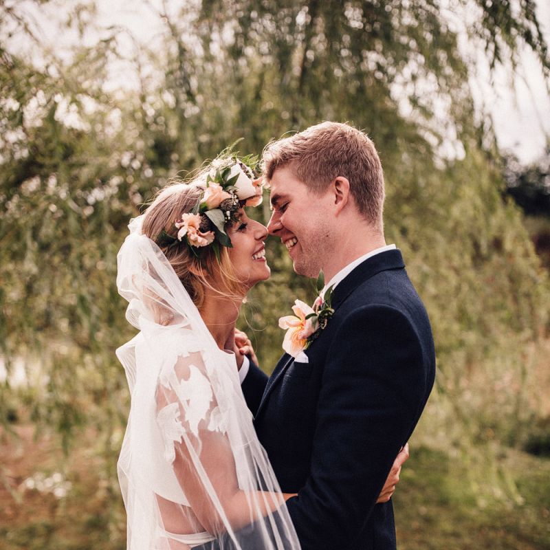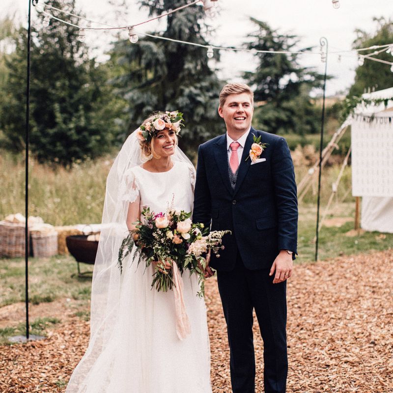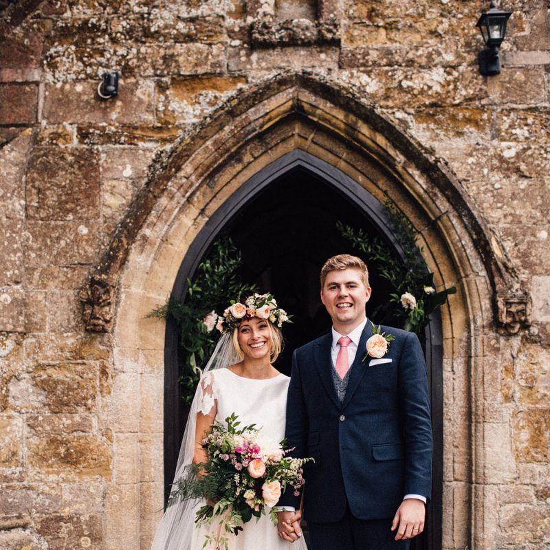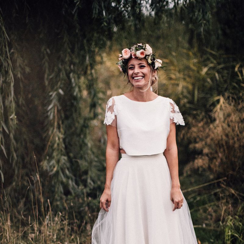 "I really struggled to choose a wedding dress I liked as the ones I loved were either in France or Spain (which is a long way to go just for a dress)! I stupidly rushed into buying a dress in a sample sale at a wedding boutique in London. I was with a friend and panicked bought it, and then realised it actually wasn’t that flattering on me and covered in marks which I didn’t see when I tried it on. I was so upset but I learnt my lesson and managed to sell it on eBay (for a lot less than I bought it for sadly!). In the end, we went to a shop in Leicester which specialised in more tailored dresses. I had never considered a two-piece style wedding dress but having tried it on in the shop, we realised it suited me much more than all the other dresses I tried on (and my Mum cried which said a lot!). I decided on a satin top and a flowing crepe skirt with a tulle overlay and also to have embroidered leaves sown onto the bottom of the skirt and on the sleeves of my top to add more detail. I don’t think Ed expected me to wear a 2 piece so I think he was quite surprised when I walked down the aisle." - Elizabeth & Edward