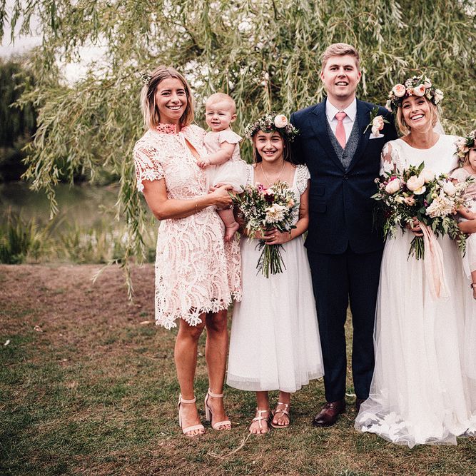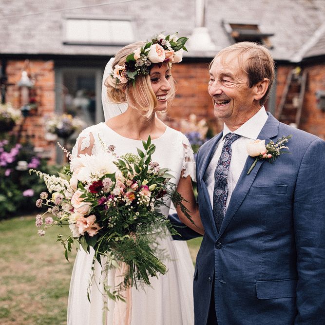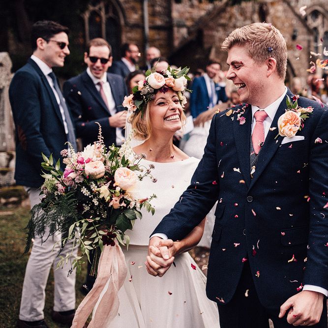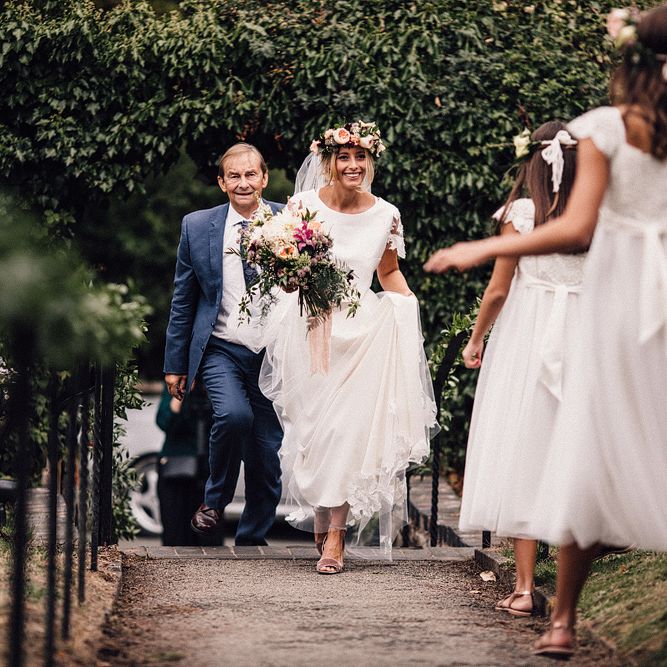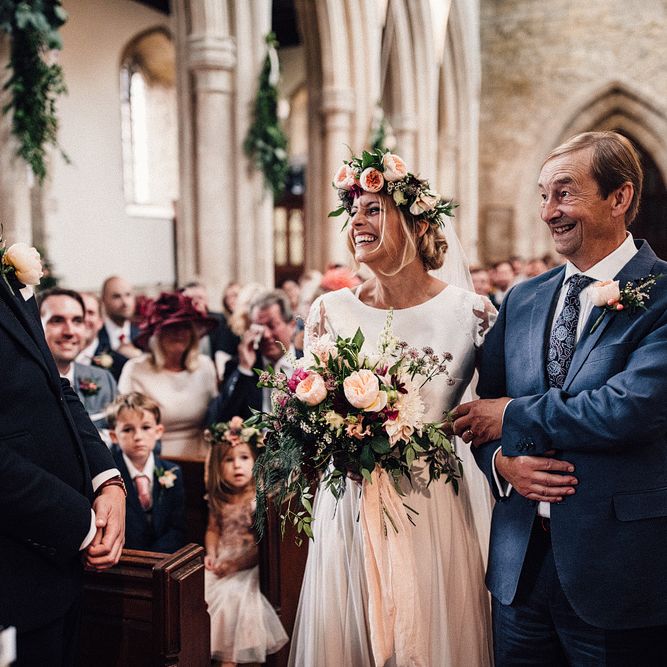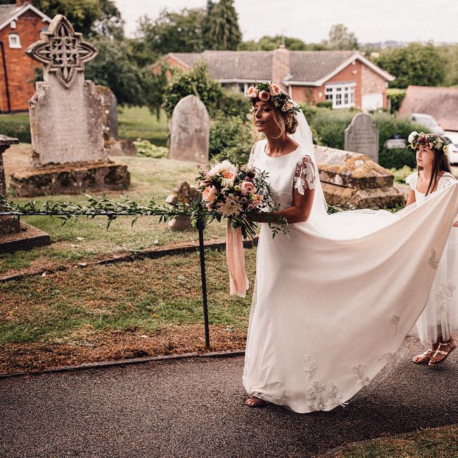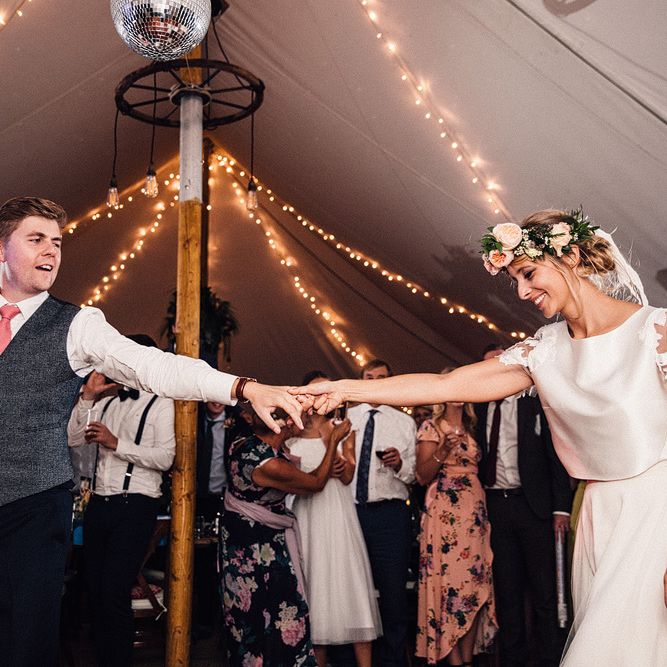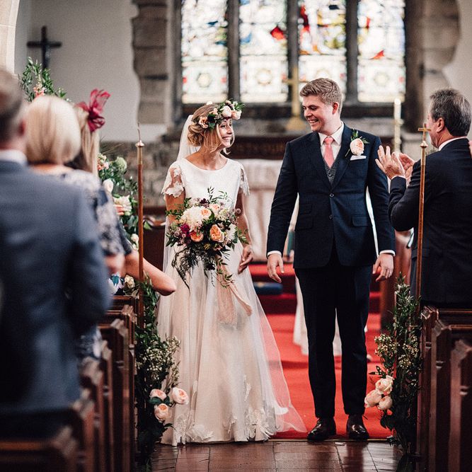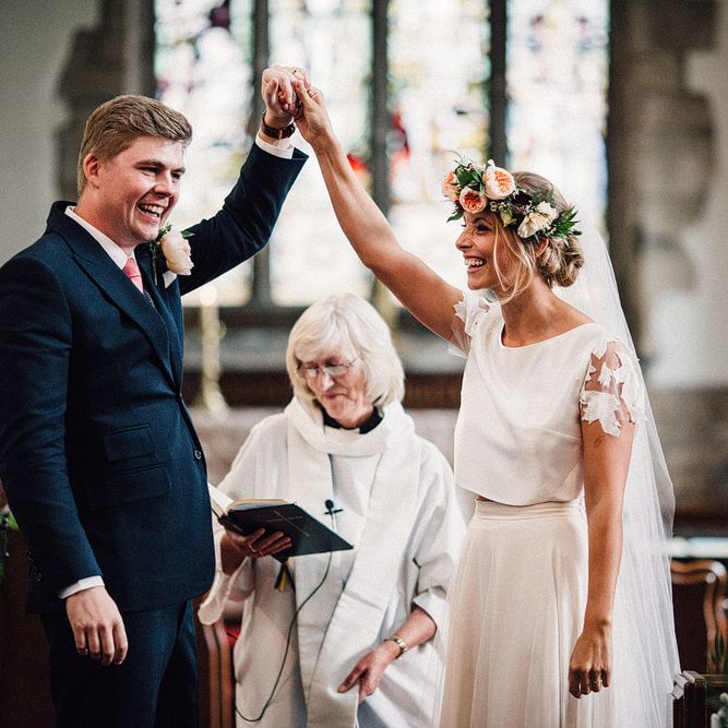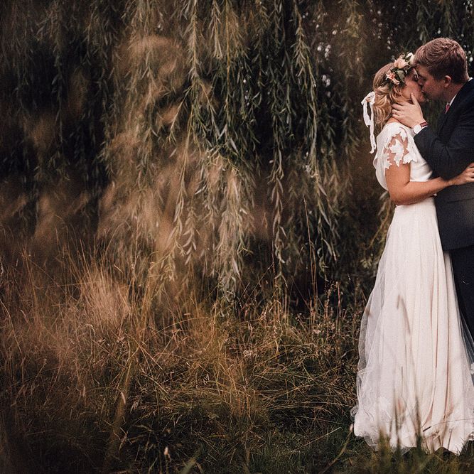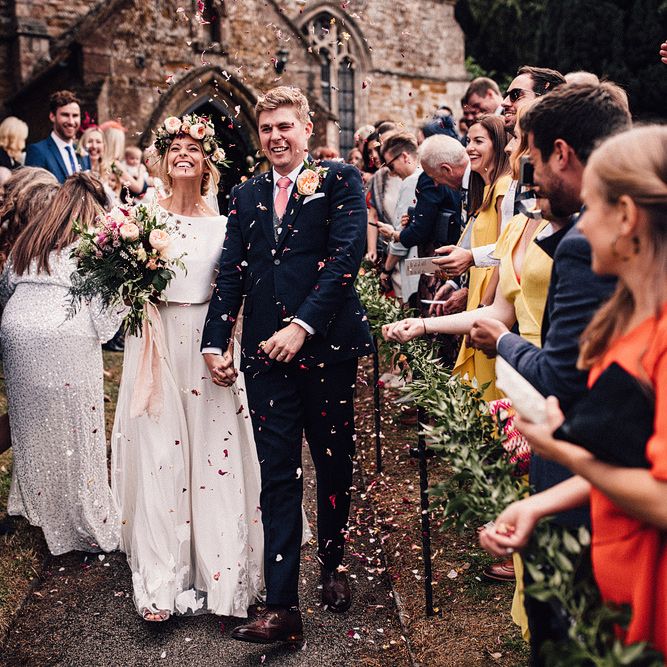"I really struggled to choose a wedding dress I liked as the ones I loved were either in France or Spain (which is a long way to go just for a dress)! I stupidly rushed into buying a dress in a sample sale at a wedding boutique in London. I was with a friend and panicked bought it, and then realised it actually wasn’t that flattering on me and covered in marks which I didn’t see when I tried it on. I was so upset but I learnt my lesson and managed to sell it on eBay (for a lot less than I bought it for sadly!). In the end, we went to a shop in Leicester which specialised in more tailored dresses. I had never considered a two-piece style wedding dress but having tried it on in the shop, we realised it suited me much more than all the other dresses I tried on (and my Mum cried which said a lot!). I decided on a satin top and a flowing crepe skirt with a tulle overlay and also to have embroidered leaves sown onto the bottom of the skirt and on the sleeves of my top to add more detail. I don’t think Ed expected me to wear a 2 piece so I think he was quite surprised when I walked down the aisle." - Elizabeth & Edward