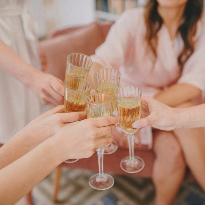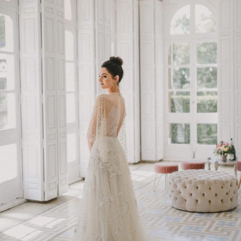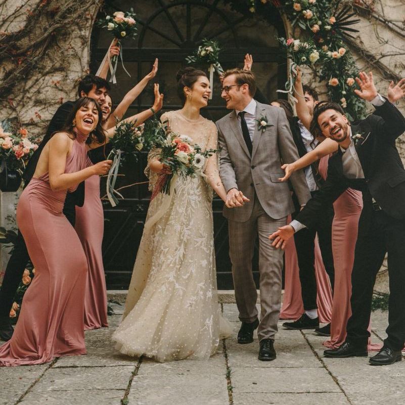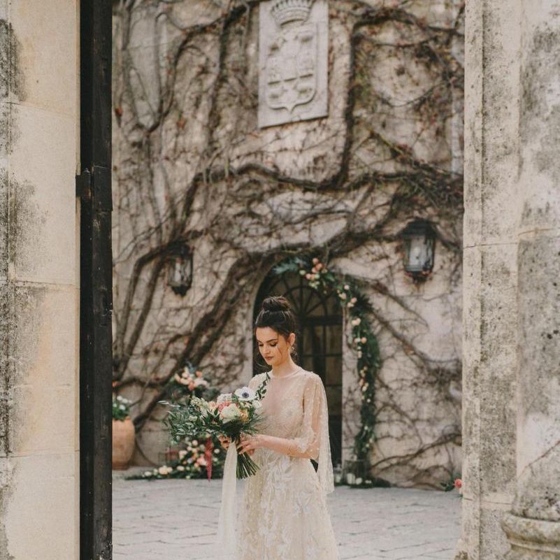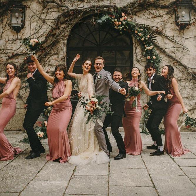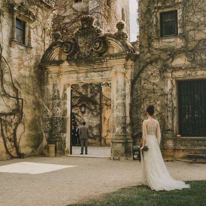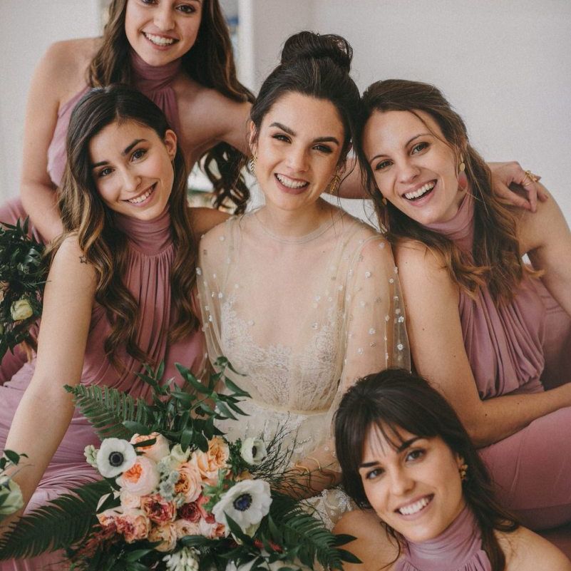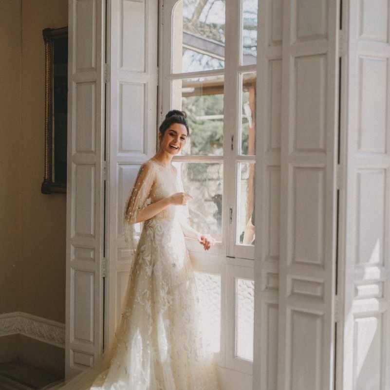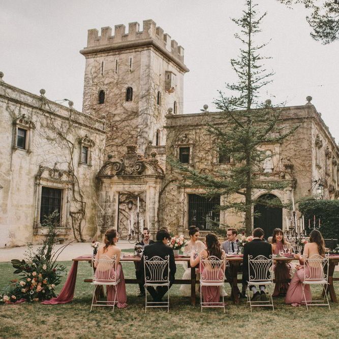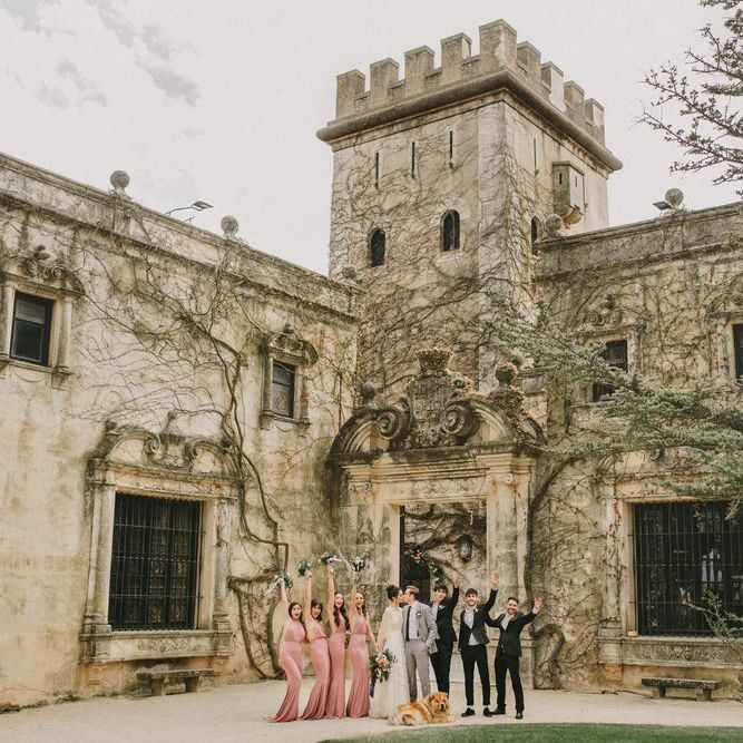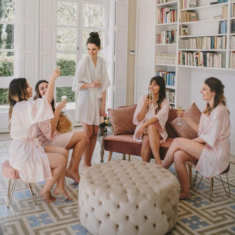 Once upon a time, there was a castle in the middle of an enchanted valley, where an extremely important moment in the lives of Cristina and Emilio happened. For them, friends are the family you choose, and they decided to choose them again to celebrate love and friendship alongside them on their big day. They did their preparations separately; the groom with his groomsmen and his loyal dog, in the covered patio. The bride and her bridesmaids got their preparations done in the wonderful white library, in which the big windows in its walls filled the room with light. They were also surrounded by pink velvet furniture that gave that perfect girly touch for their pyjama and champagne party.