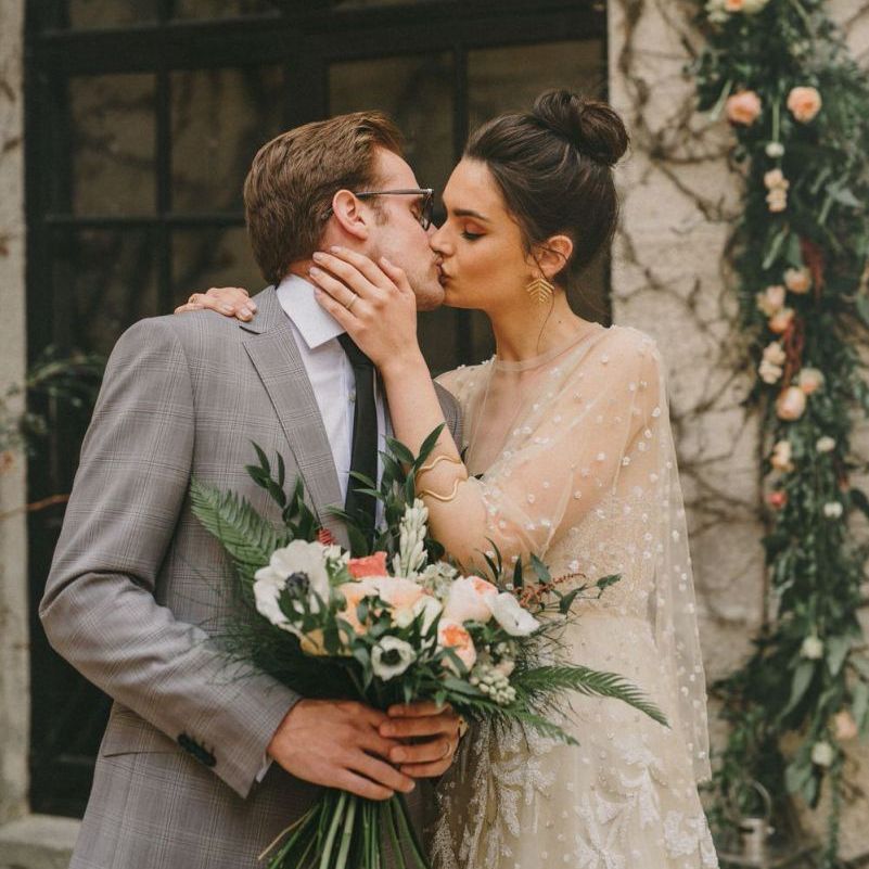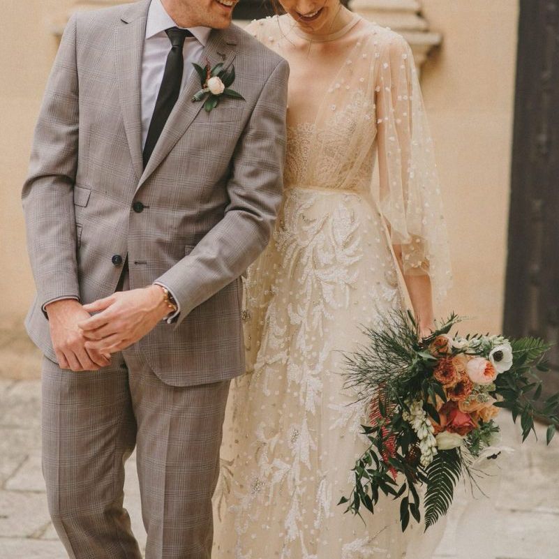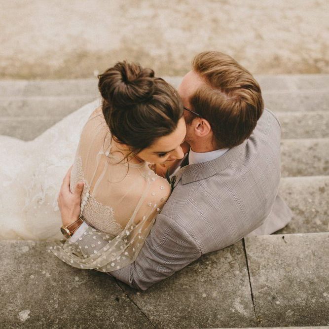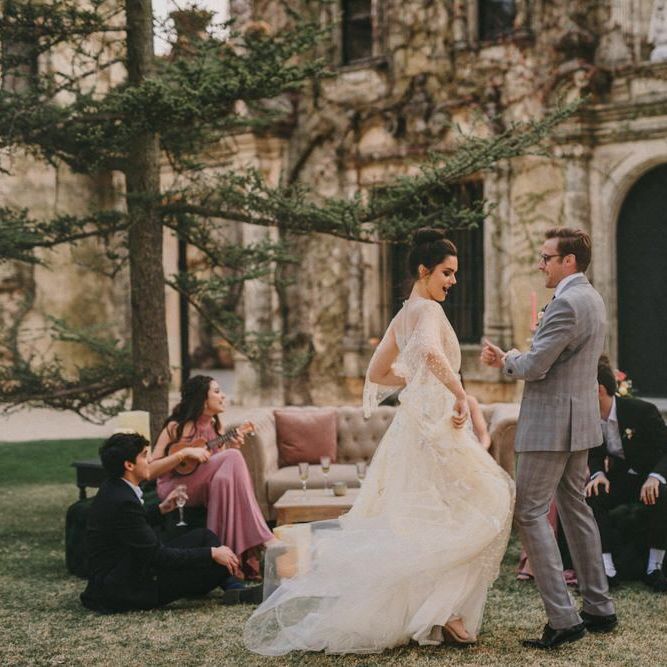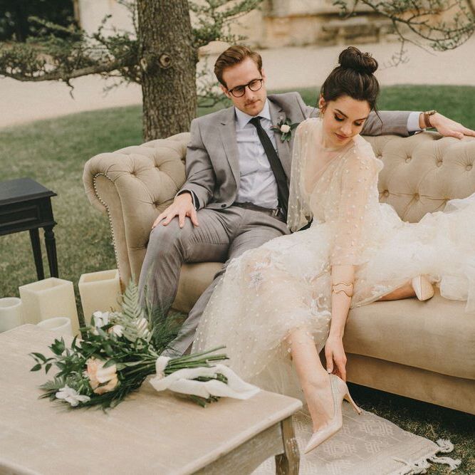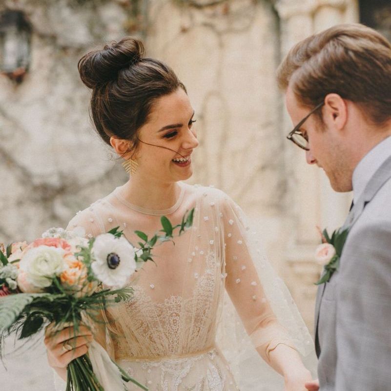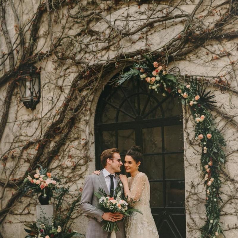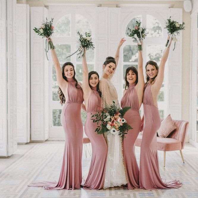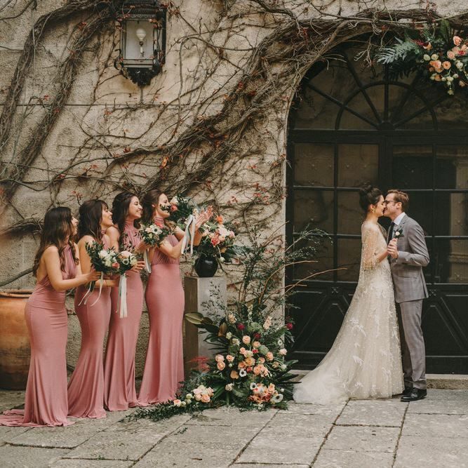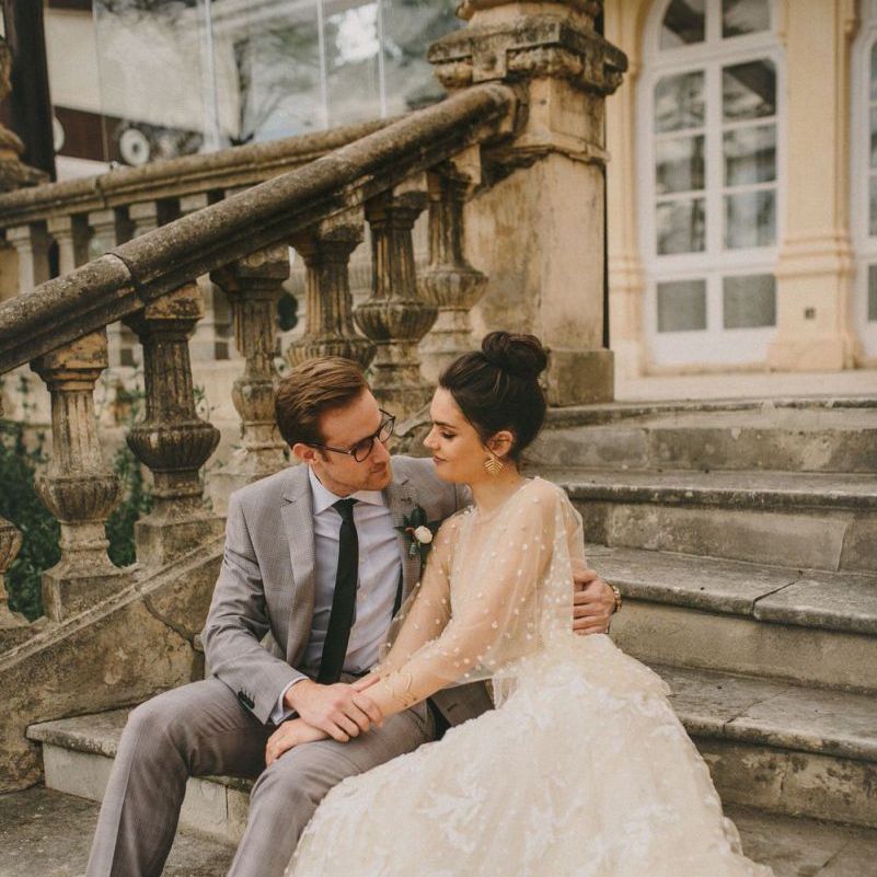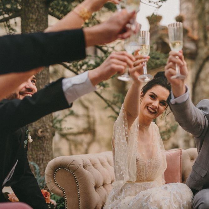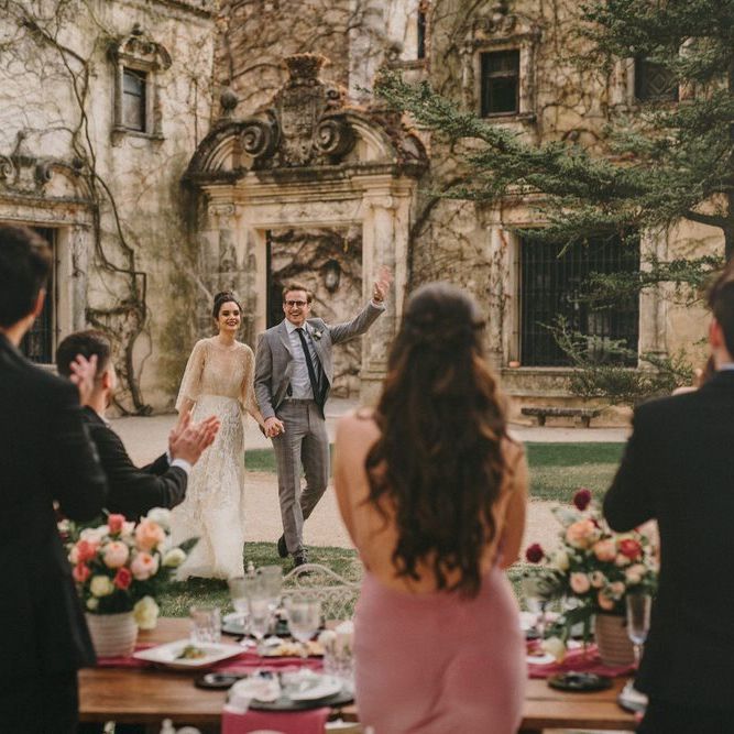 Once upon a time, there was a castle in the middle of an enchanted valley, where an extremely important moment in the lives of Cristina and Emilio happened. For them, friends are the family you choose, and they decided to choose them again to celebrate love and friendship alongside them on their big day. They did their preparations separately; the groom with his groomsmen and his loyal dog, in the covered patio. The bride and her bridesmaids got their preparations done in the wonderful white library, in which the big windows in its walls filled the room with light. They were also surrounded by pink velvet furniture that gave that perfect girly touch for their pyjama and champagne party.