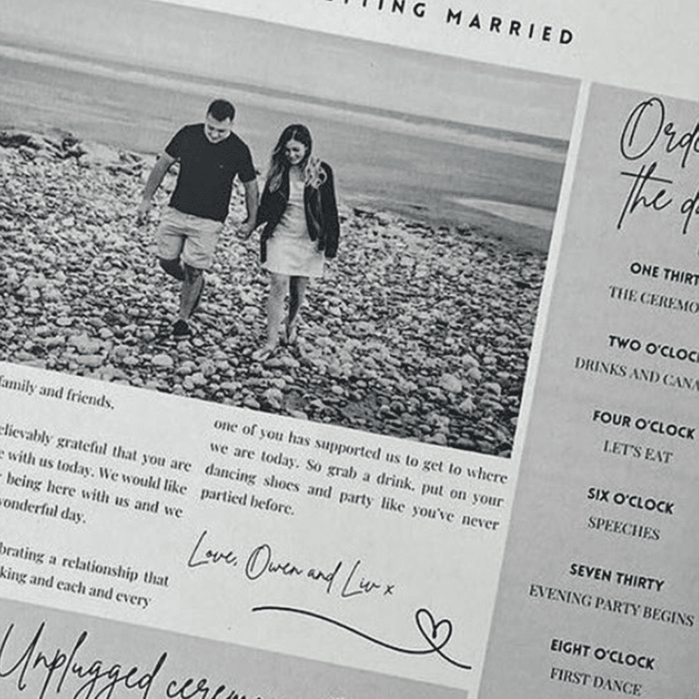 Instead of just reading your speeches or ceremony readings off your phone, why not ask your stationer to print them for you? This way, you'll have a copy that you can frame after! Better yet, download our free printable wedding readings. With everything from classic, funny, and romantic readings!
