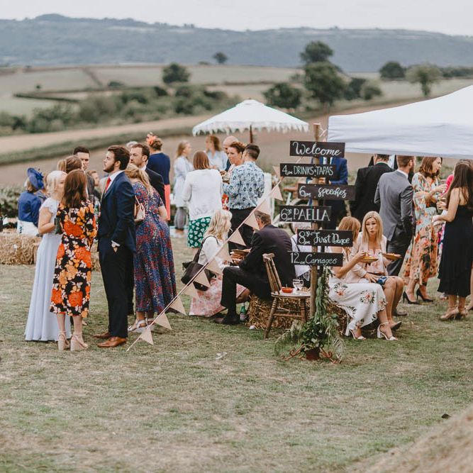 Rustic with a touch of sparkle! We kept it down to earth with straw bales, bars made from cider barrels, ivy from the garden and chunky pillar candles but then added touches of luxury where people appreciate it most - good local food (tapas, paella, ice cream, homemade cake), cocktails, glitter station and a live band. Less is more! Don't try to please everyone but also think of yourself as a guest. We did just that and opted for a relaxed but delicious 'food bowl' meal opposed to hours of sitting at a table in a strict seating plan. Think of what is important to you and focus on those parts. E.g. we wanted to have a free bar, so decided to keep the bar menu simple.