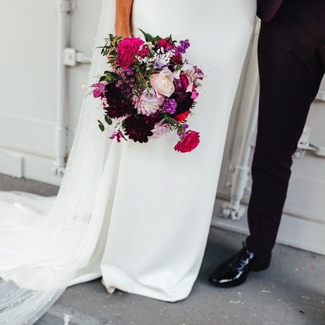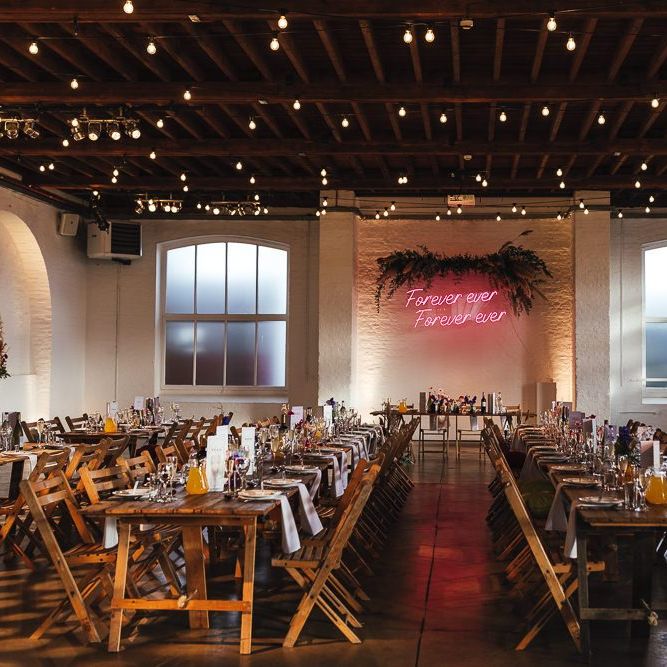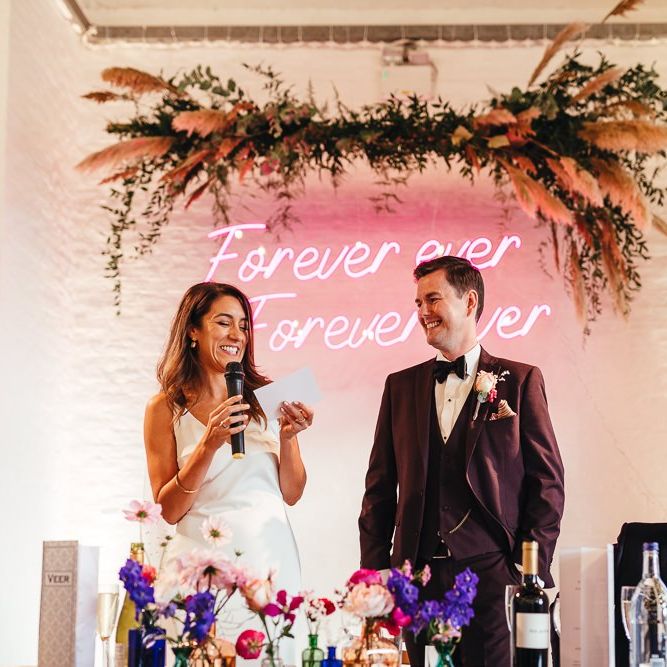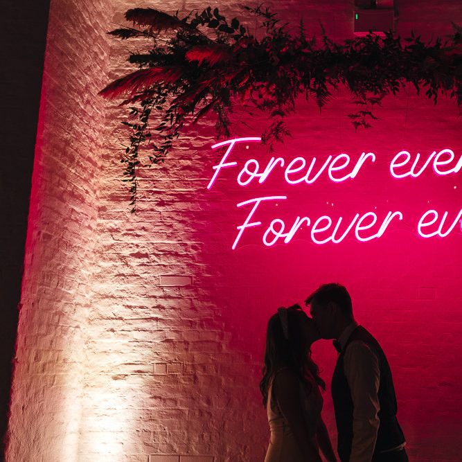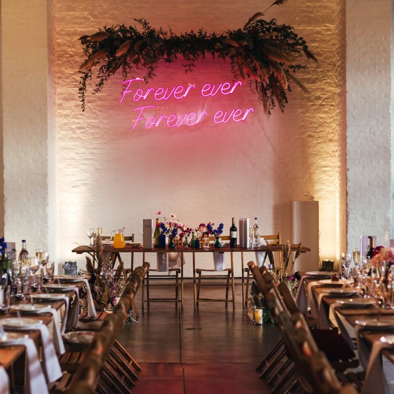 Nothing too formal, keep the ceremony short, let the good times roll. A friend's advice was that guests only care about three things - food, booze and entertainment - so we made sure we nailed those. People still rave about Flo Collective, who kept the dance floor going all night long, and say the curry from Veer was the best wedding food they’ve ever had. Our ace photographer Kirsty MacKenzie loves a pop of colour so she inspired us to incorporate as much as possible with a personalised neon sign(which is now mounted in our hallway), pink blossom trees and vibrant flowers. Night after night sat on the sofa with the laptop, scrolling through Rock My Wedding on Instagram, mainly stalking other people's weddings.