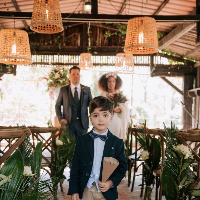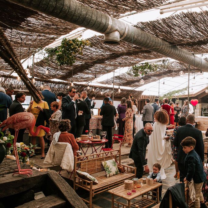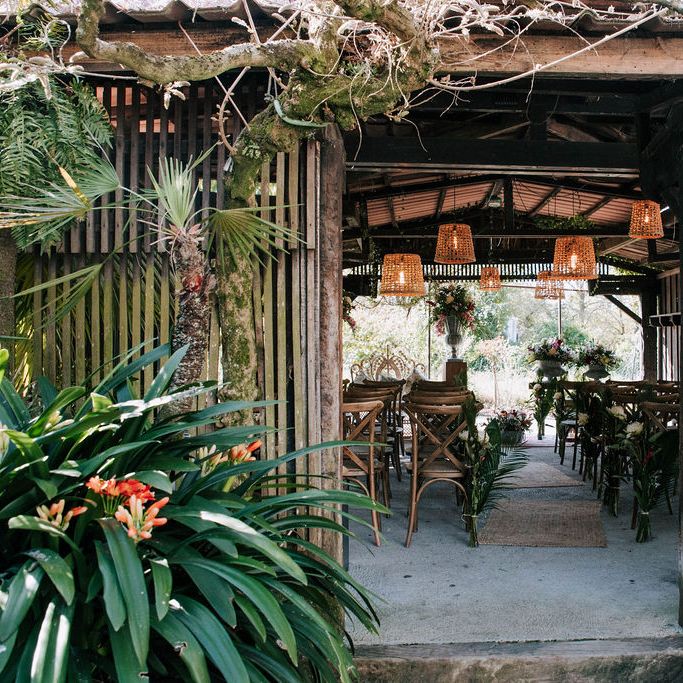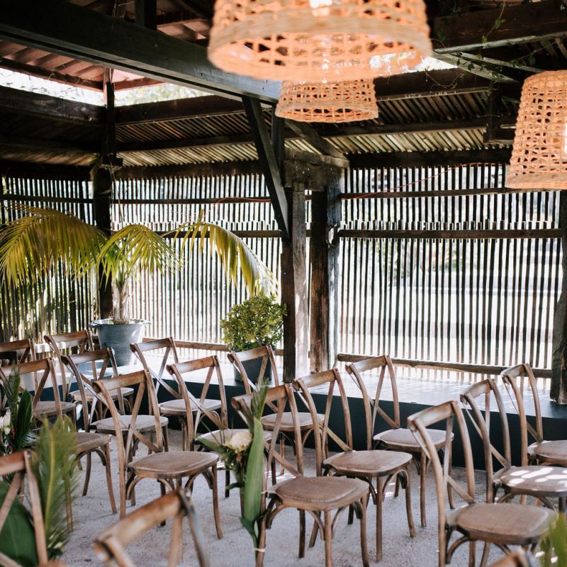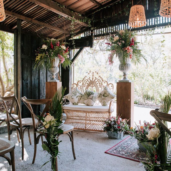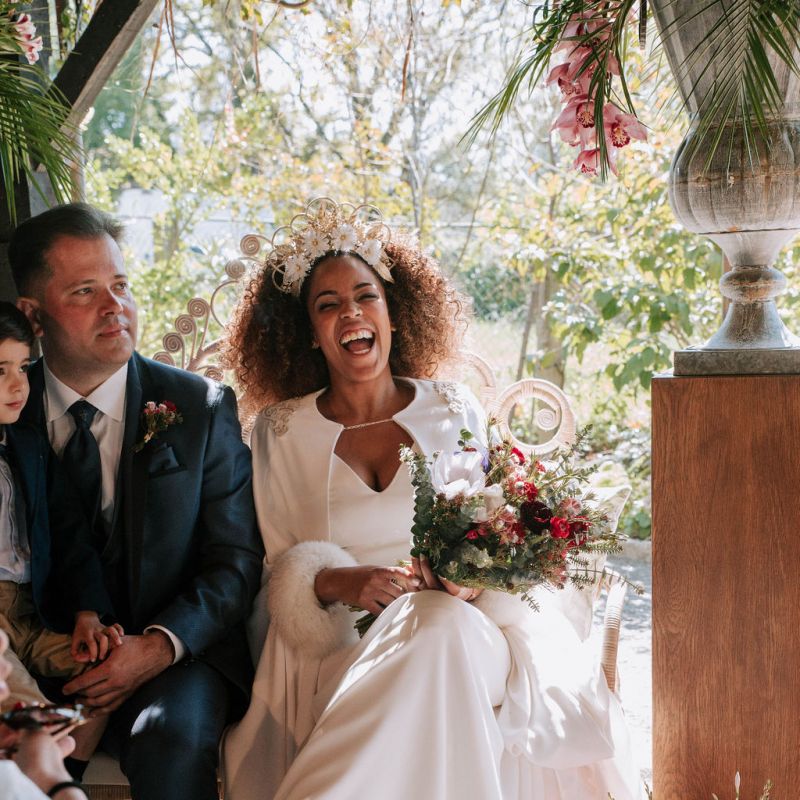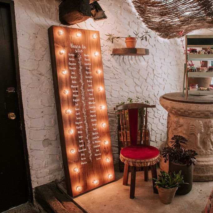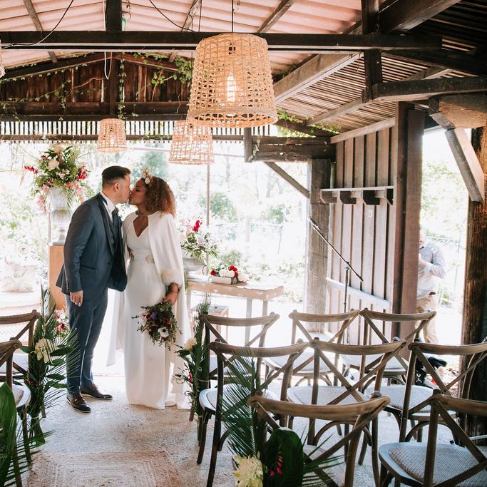 El Mono con Sombrero, who did not miss any detail. Inside of Fundación Sales, they chose for the ceremony a wooden ‘pagoda’, something that motivated all the wedding’s decoration. It was based on six wicker lamps (specially created for the occasion), walnut cross-back chairs and a lot of flowers all over the place.