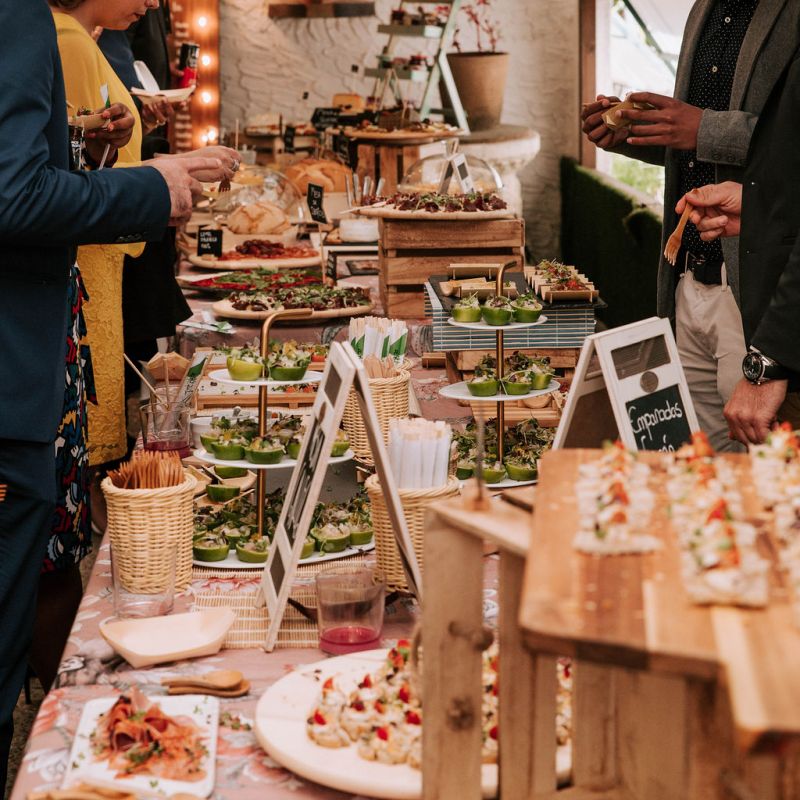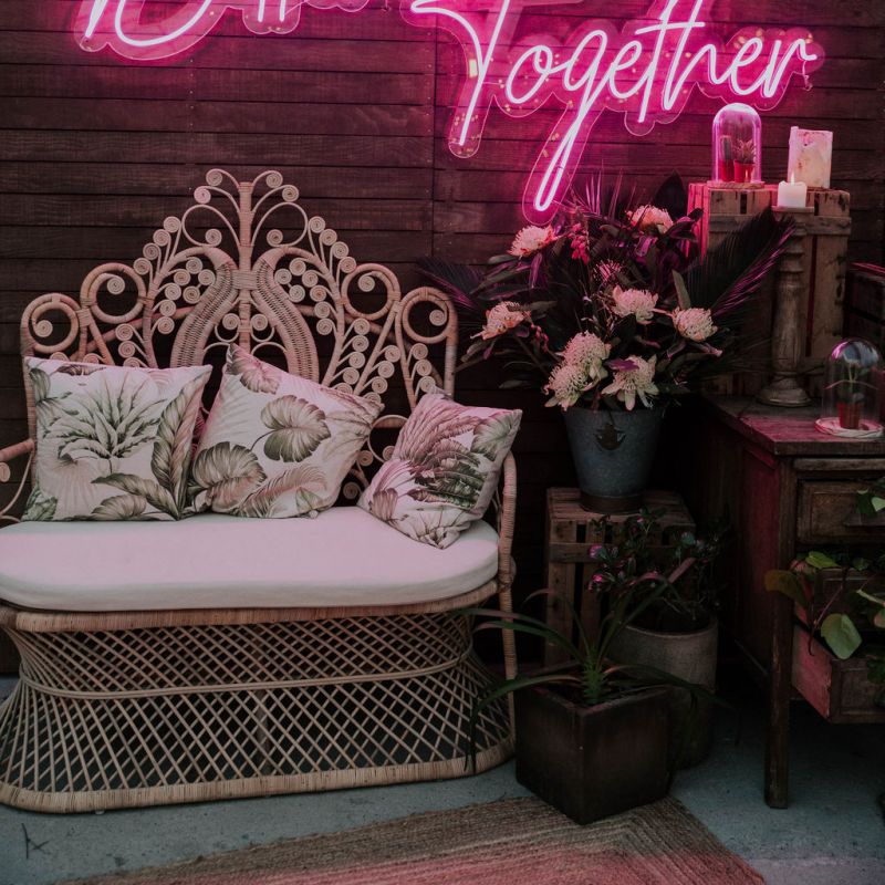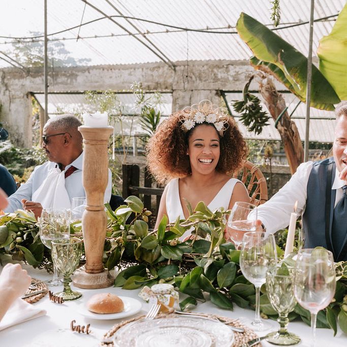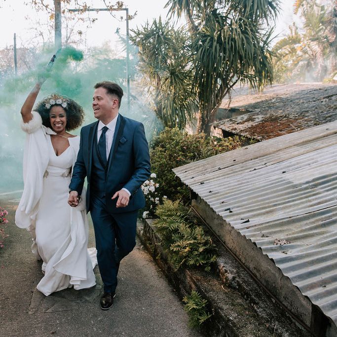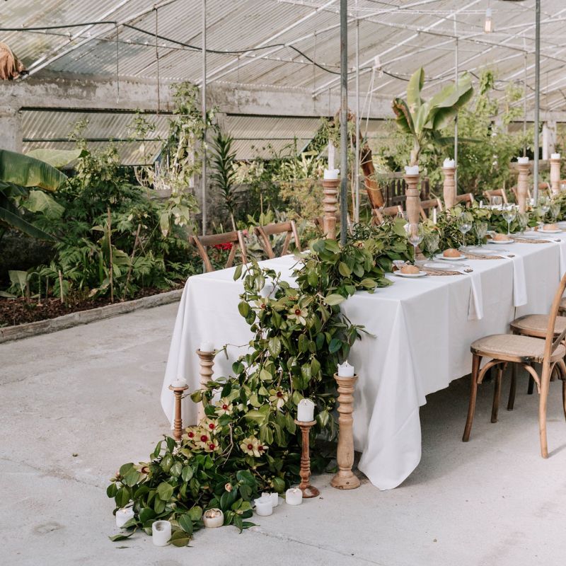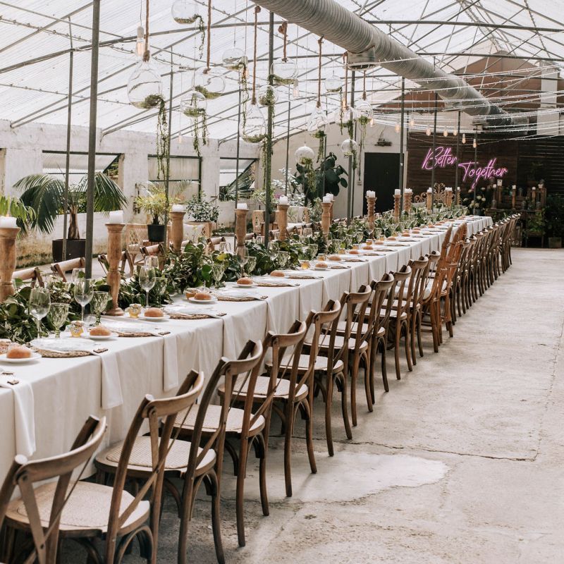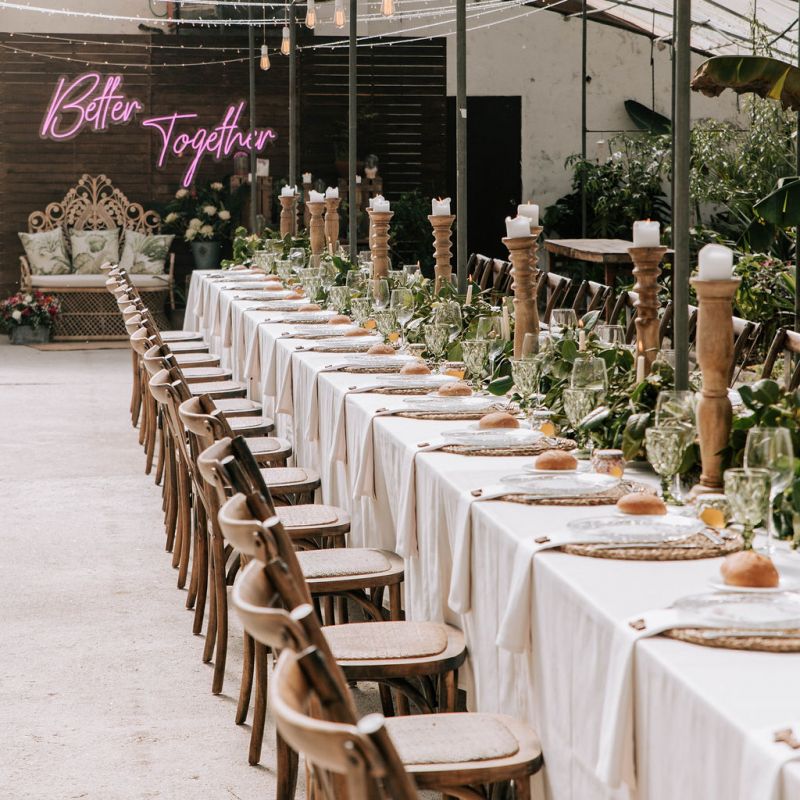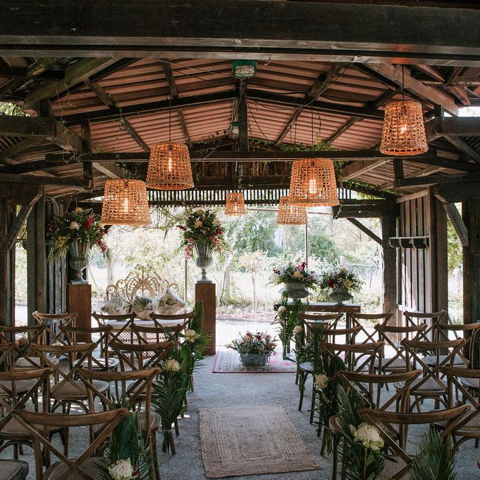 El Mono con Sombrero, who did not miss any detail. Inside of Fundación Sales, they chose for the ceremony a wooden ‘pagoda’, something that motivated all the wedding’s decoration. It was based on six wicker lamps (specially created for the occasion), walnut cross-back chairs and a lot of flowers all over the place.