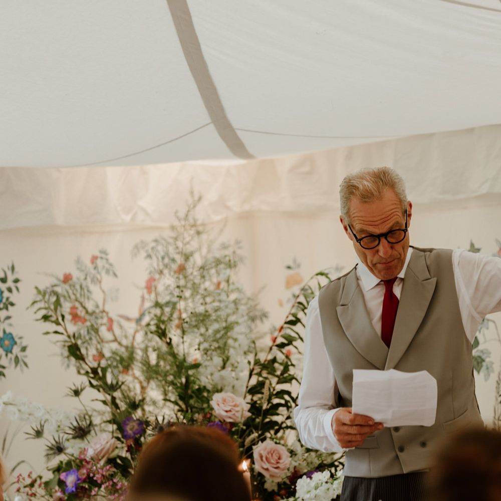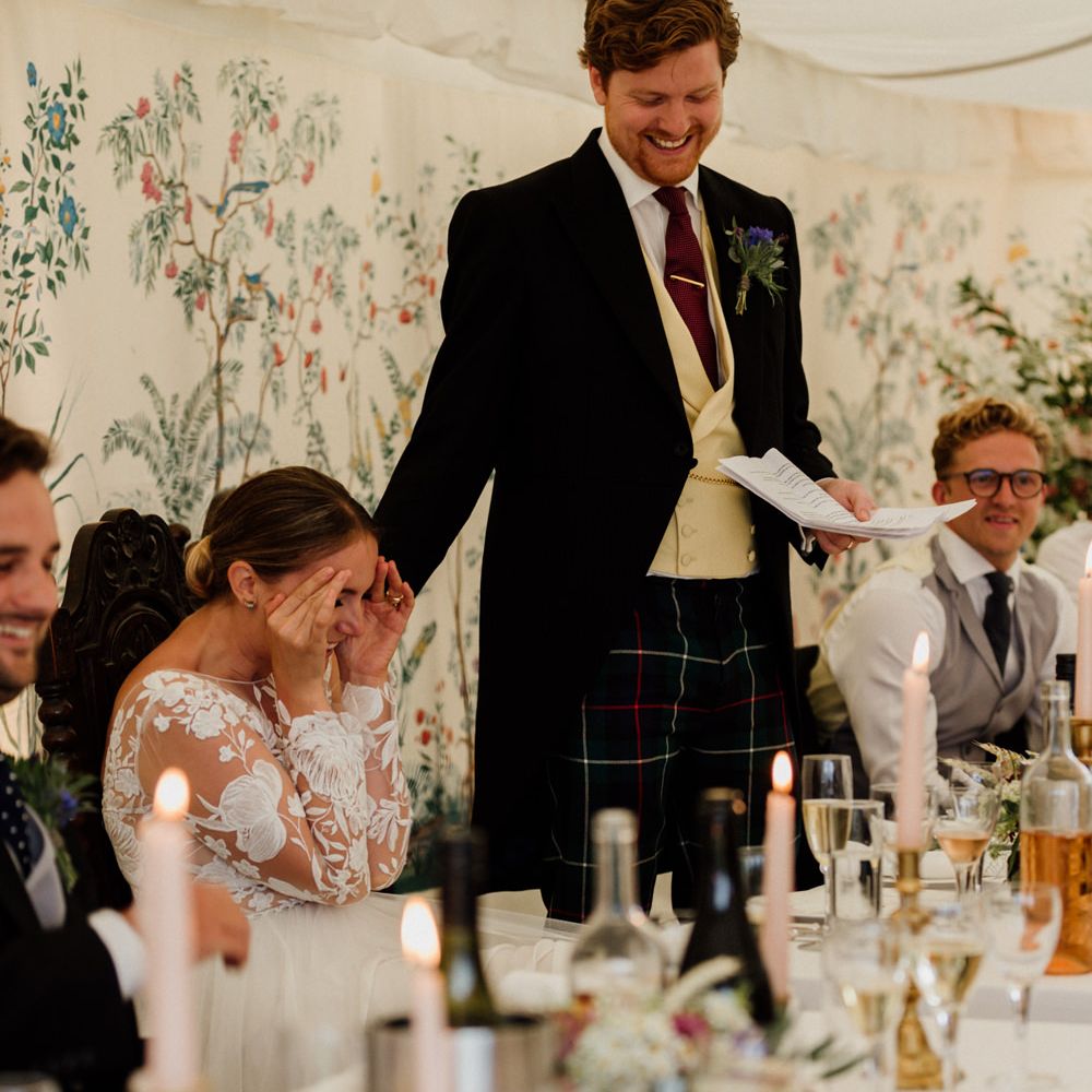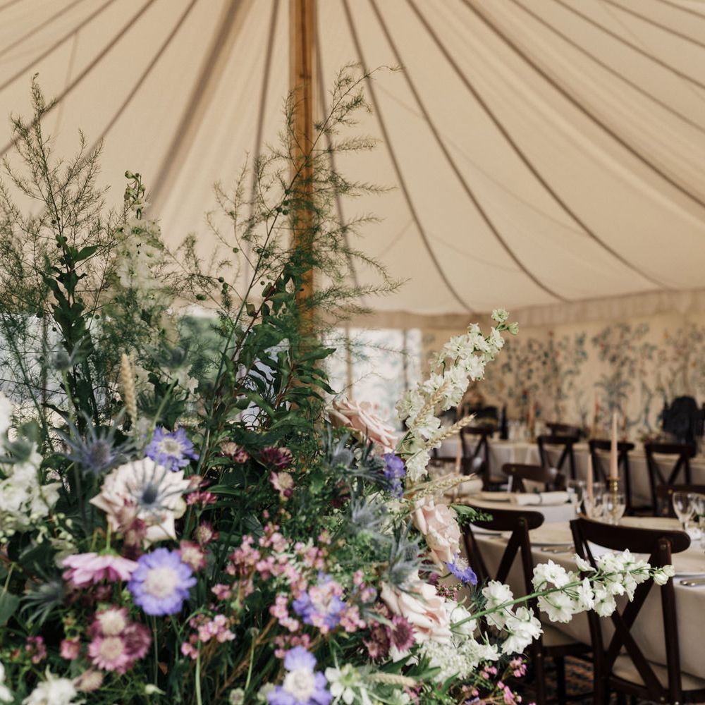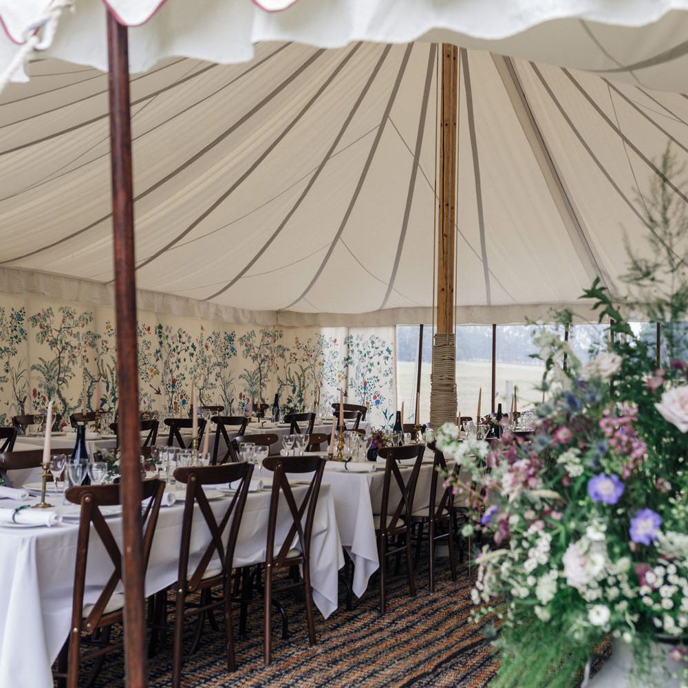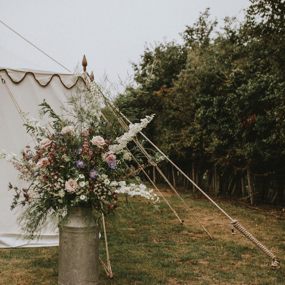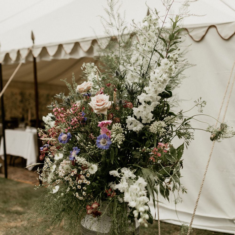 We really just tried to complement the location of Catherine’s family home. The chinoiserie lining of the LPM Bohemia marquee was a great aesthetic starting point that we fleshed out with flower arrangements made by Catherine’s godmother. Childhood friends at Okehurst Design provided some finishing touches in the marquee and bar area with a few key pieces of furniture.