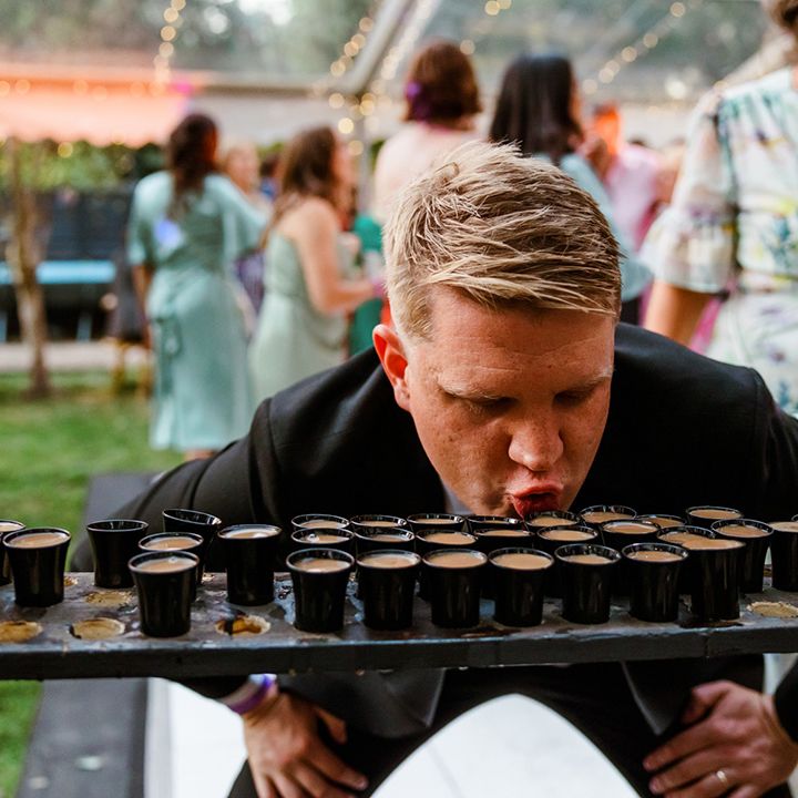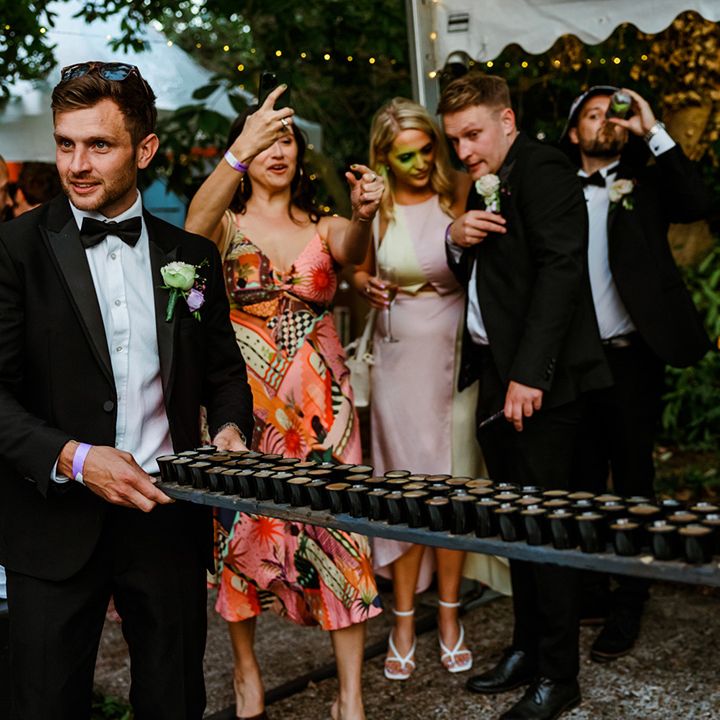 After the ceremony we walked out the back of the chapel, leaving behind our friends and family all singing and cheering. We went outside and had 10 minutes to relax, enjoy each other’s company and had a cheeky glass of champagne! It was really nice just to have a moment, catch up on the morning's madness and recharge before we went back out the front for the confetti shot!