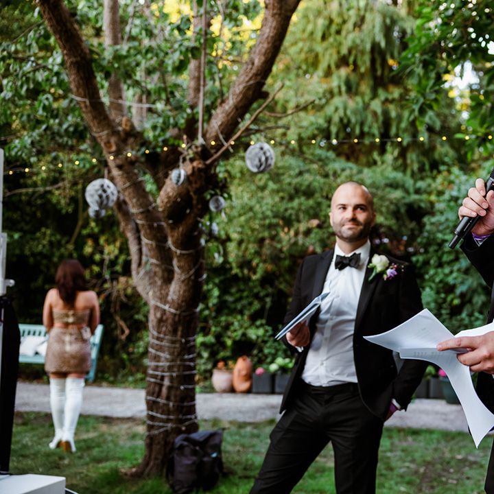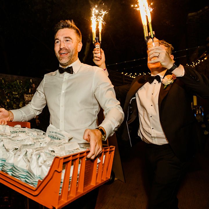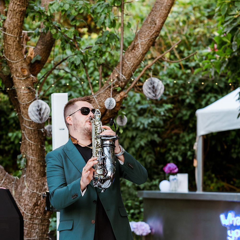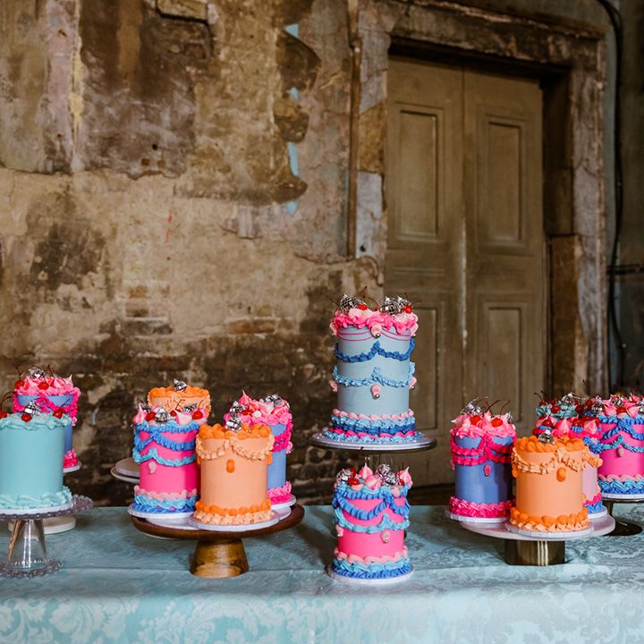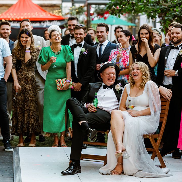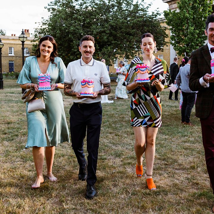 We wanted our guests to have the most fun possible so decided against a sit-down meal, opting for a Paella station instead. The colour scheme was mismatched, with bright pops of colour. An English garden against an urban background.